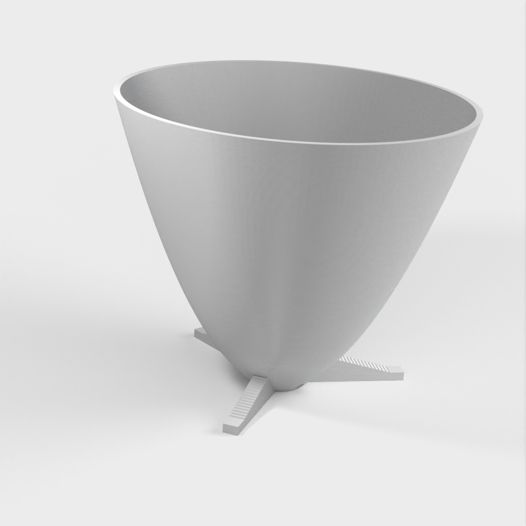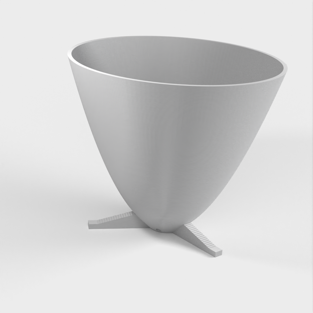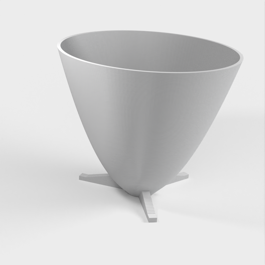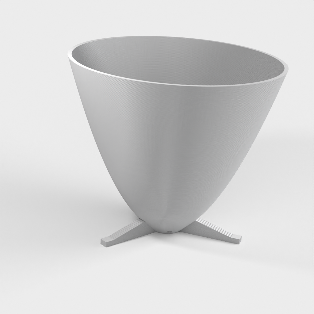 Dette er en parabolsk plantepotte med egne fødder og en uafhængig dræningsplade. Den er designet til at blive printet uden supports. Selvom figuren er printet med PLA, kan du også bruge andre materialer med de korrekte indstillinger. Prusa filament er anbefalet, men min foretrukne filament til disse potter er Mukha de Fillamentum.