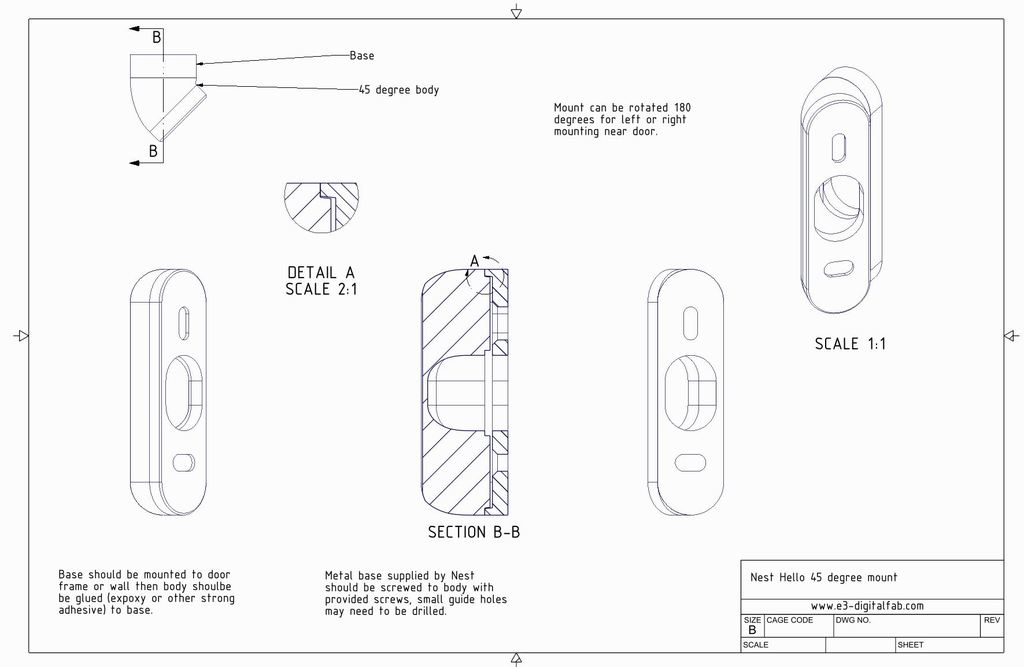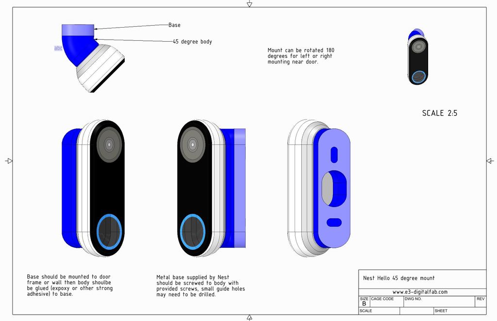 45-degree mounting bracket and 1/4 inch spacer plate for Nest Hello doorbell