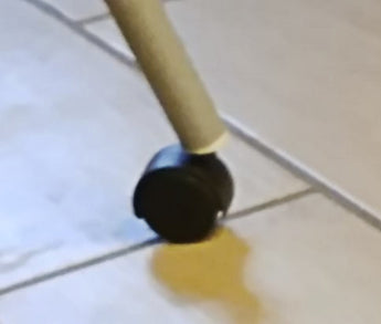 The adapters mount directly onto the chair legs where the original feet are normally located. A small notch on the adapter assists with correct alignment so that all feet are level, ensuring optimal stability. In addition to increased mobility, the adapters may also contribute to a more stable solution, as the chair can now roll sideways instead of tipping over from an accidental push. However, it is important to ensure that the baby is always securely strapped into the high chair and that the product is used responsibly.