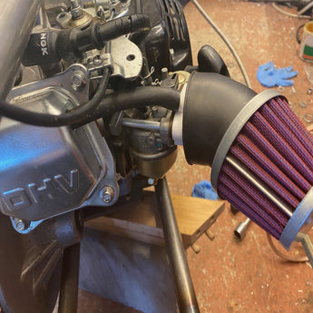 This updated air filter adapter is designed for Honda GX160, GX200, Predator, and similar clone engines, offering a convenient solution for mounting a standard conical or performance air filter. The adapter allows you to remove the original air filter box and is suitable for those looking to optimize engine airflow.