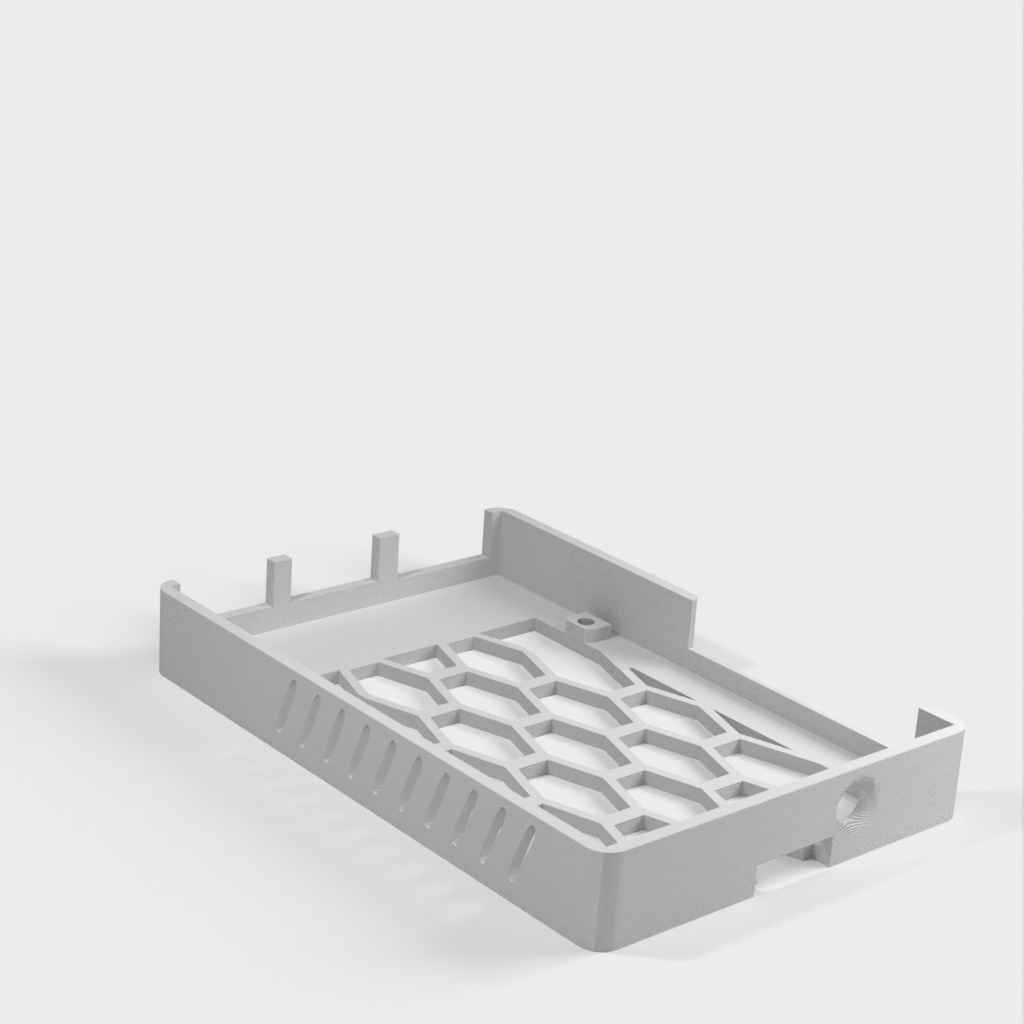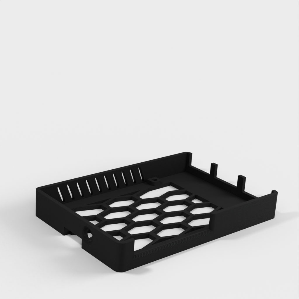 Raspberry Pi 5-etui med lav profil og aktiv køler. Etuiet er designet til at være åben nok til at lede luftstrømmen effektivt, hvilket sikrer optimal funktionsdygtighed af din Raspberry Pi 5. M2.5 20mm skruer eller kortere er påkrævet til samling, og du kan overveje at tilføje gummifødder til bunden for ekstra stabilitet. Et praktisk og stilfuldt tilbehør til enhver Raspberry Pi-entusiast.