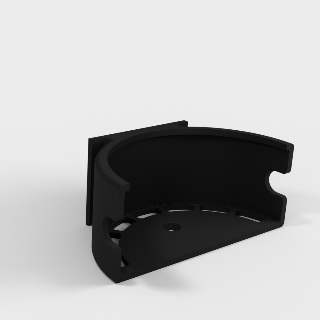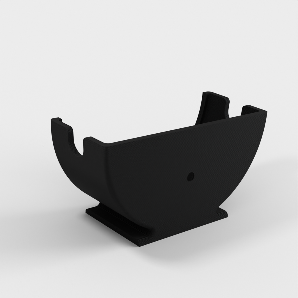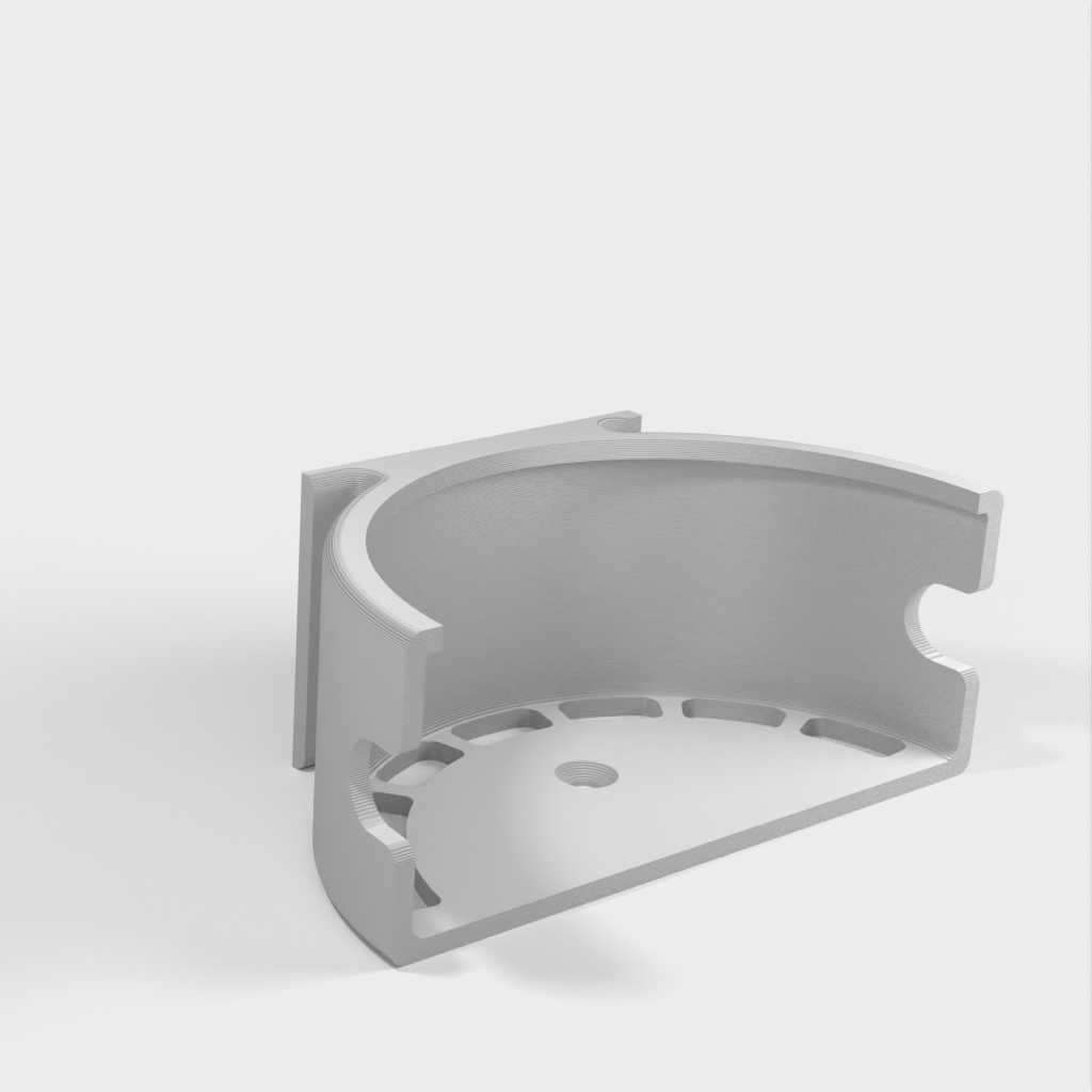 A vertical stand for the Echo Dot (Alexa), designed as an ideal solution for placing your device in the kitchen. It can either be screwed to a wall or stand independently thanks to a small base. This product now contains an updated version that features some ventilation holes to improve volume.