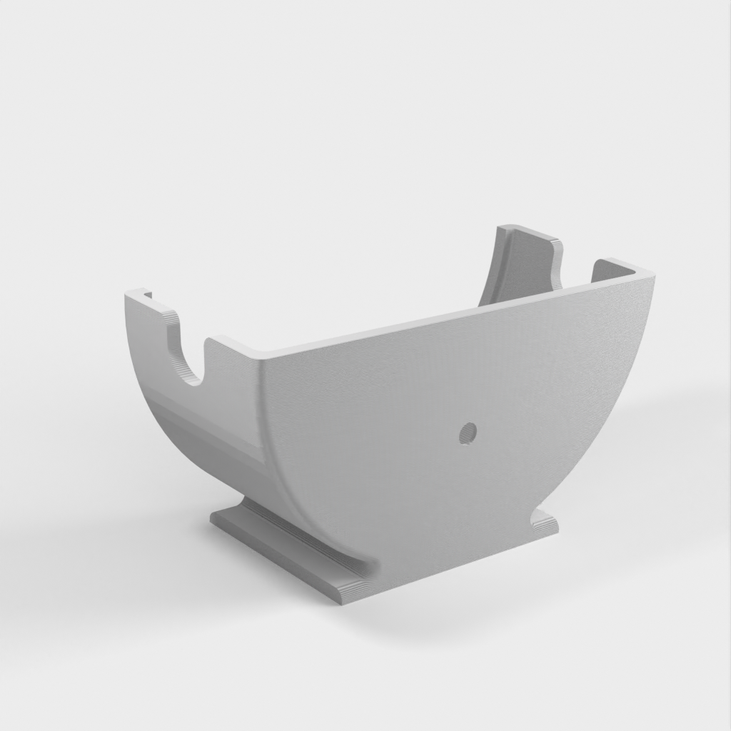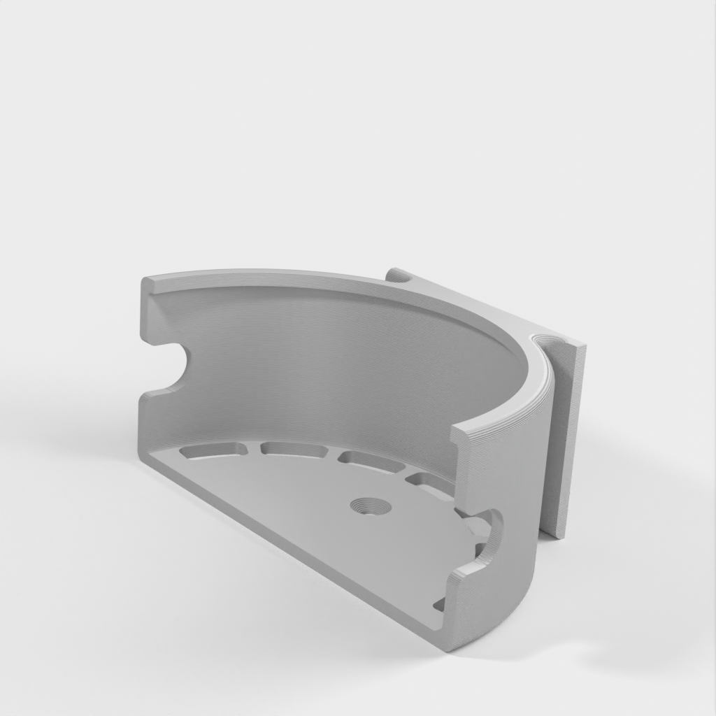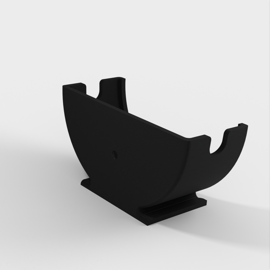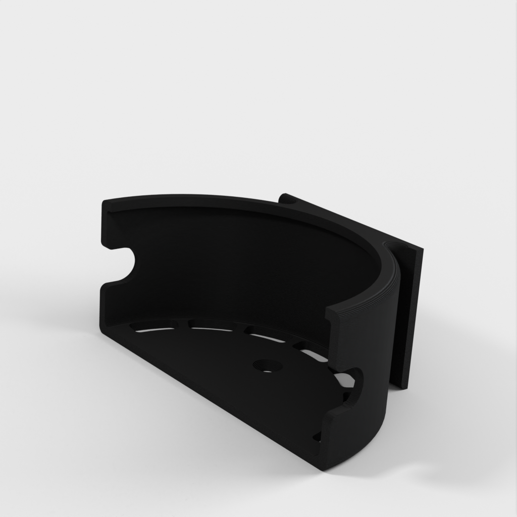 A vertical stand for the Echo Dot (Alexa), designed as an ideal solution for placing your device in the kitchen. It can either be screwed to a wall or stand independently thanks to a small base. This product now contains an updated version that features some ventilation holes to improve volume.
