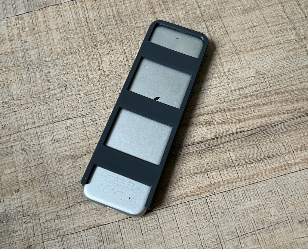 Dette er et etui til Apple TV-fjernbetjening (1. generation Siri-fjernbetjening). Etuiet sikrer, at fjernbetjeningen er beskyttet og let at finde. Hvis du ønsker det, kan du tilpasse etuiets design ved hjælp af det inkluderede Blender-projekt.