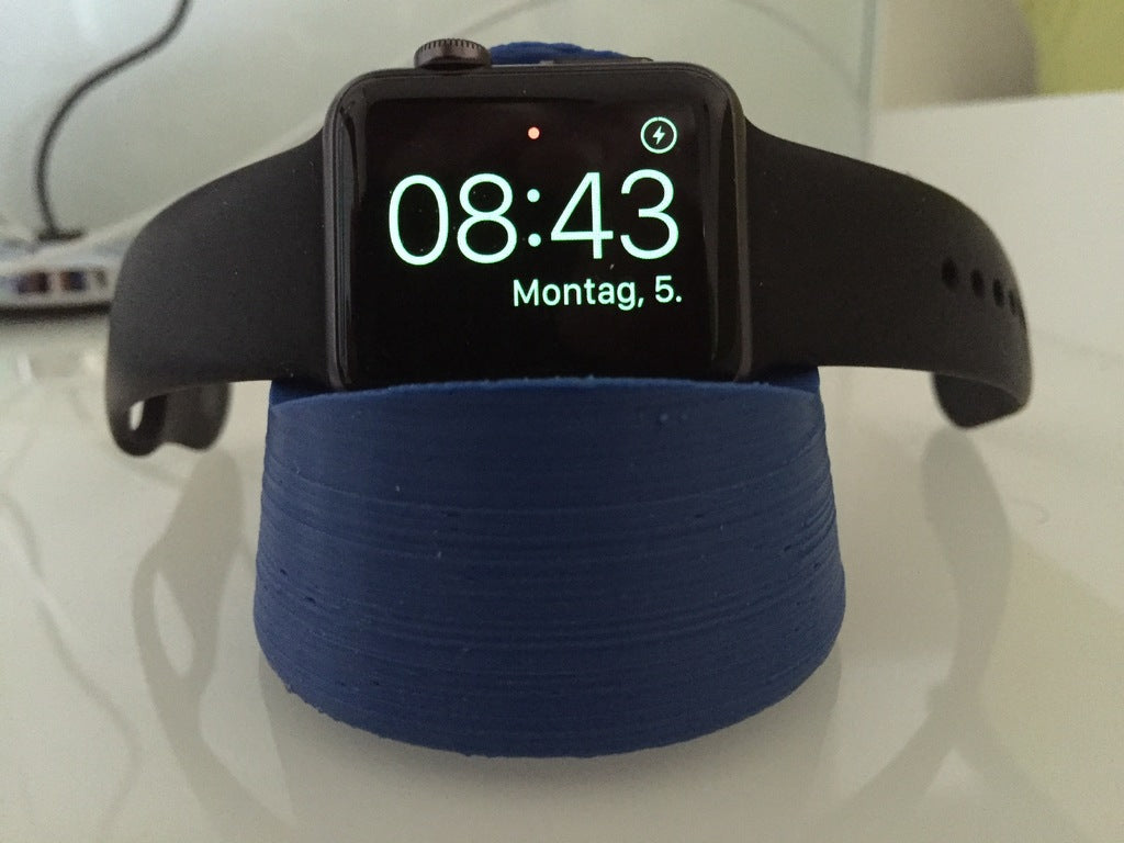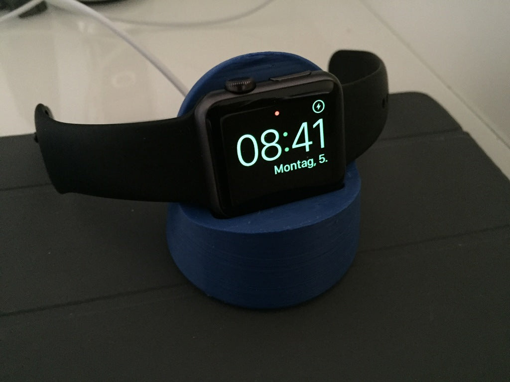 This is a charging dock for an Apple Watch 38mm. The dock is designed so that your watch fits perfectly and charges optimally, while also allowing you to easily remove the charging cable via a discreet slot from the bottom. It is also designed with larger cable channels for increased compatibility.