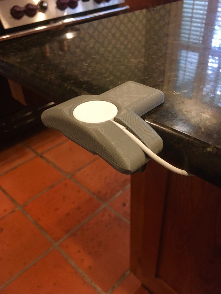 A simple charging dock for Apple Watch that can be clamped onto most desks. Works with all Apple Watches. There is a channel for the cable so it can be routed out the back underneath the watch.