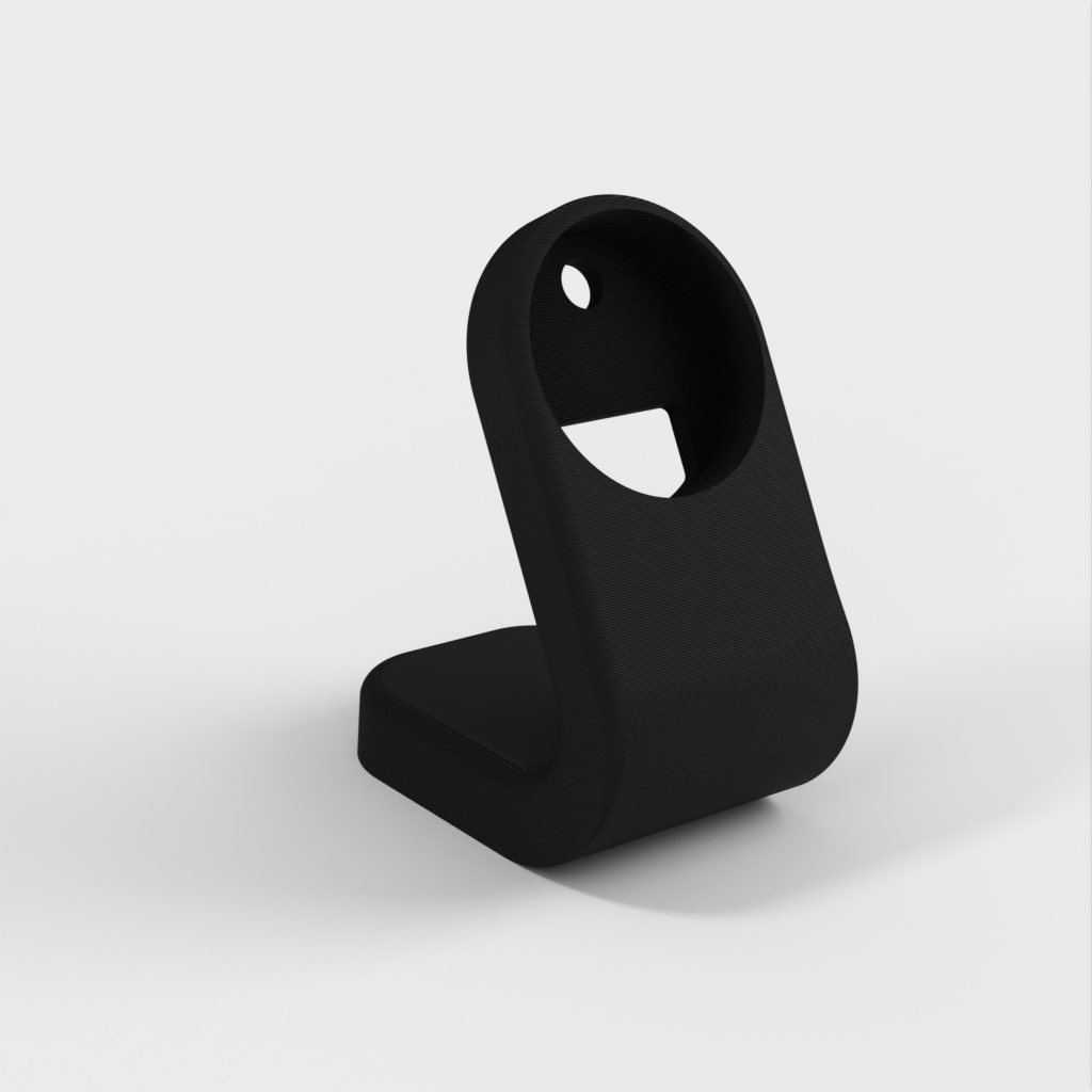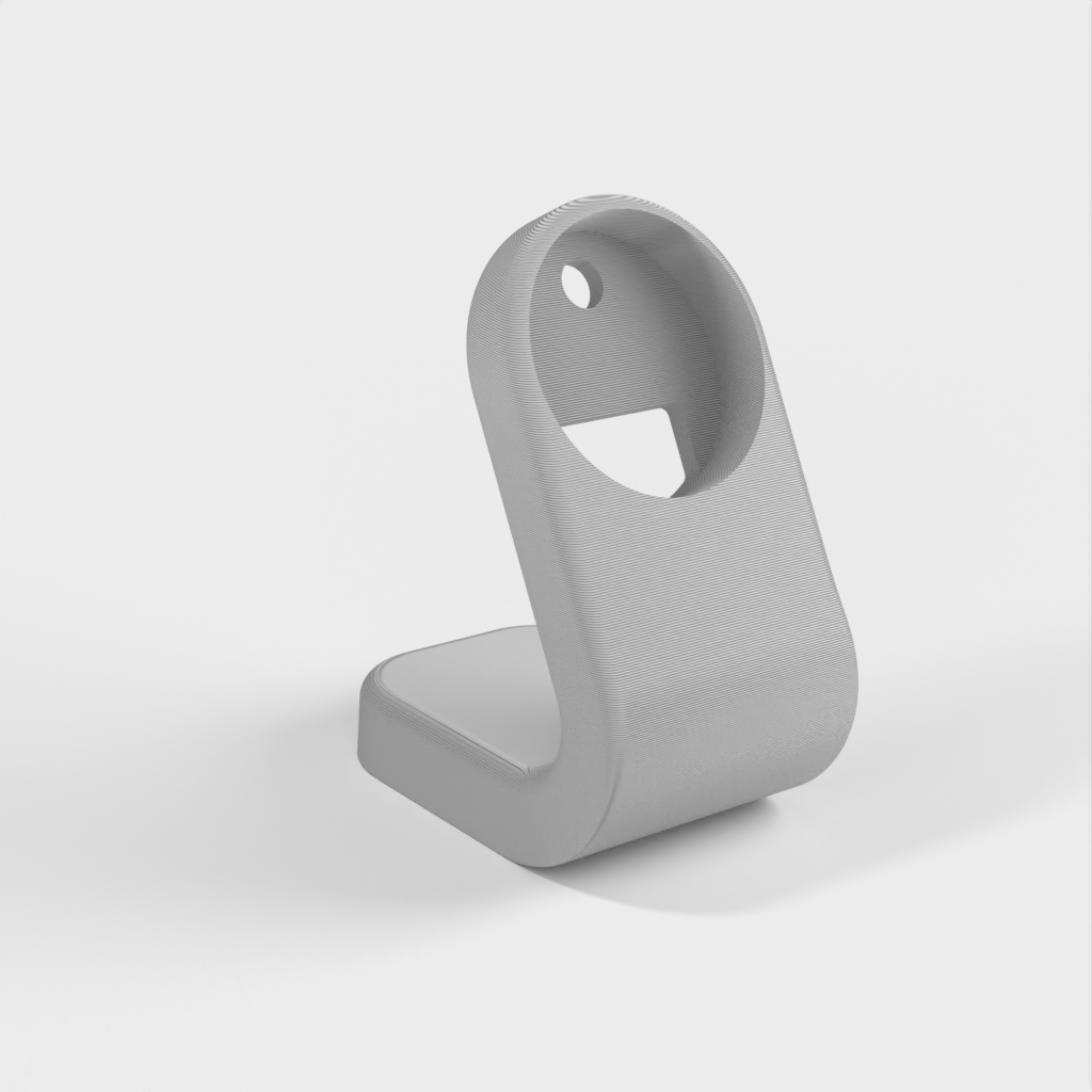 A simple charging dock for Apple Watch that can be attached to the wall with double-sided tape. The dock provides an organized and practical way to charge your Apple Watch while beautifully displaying the watch on the wall.