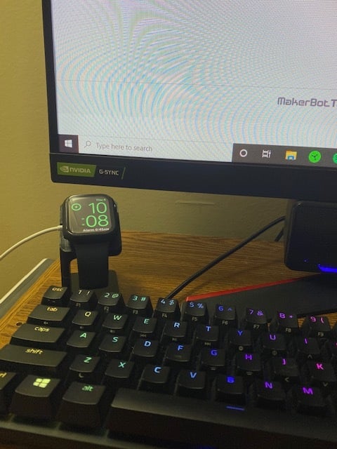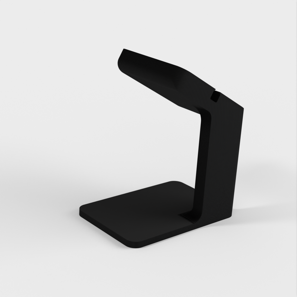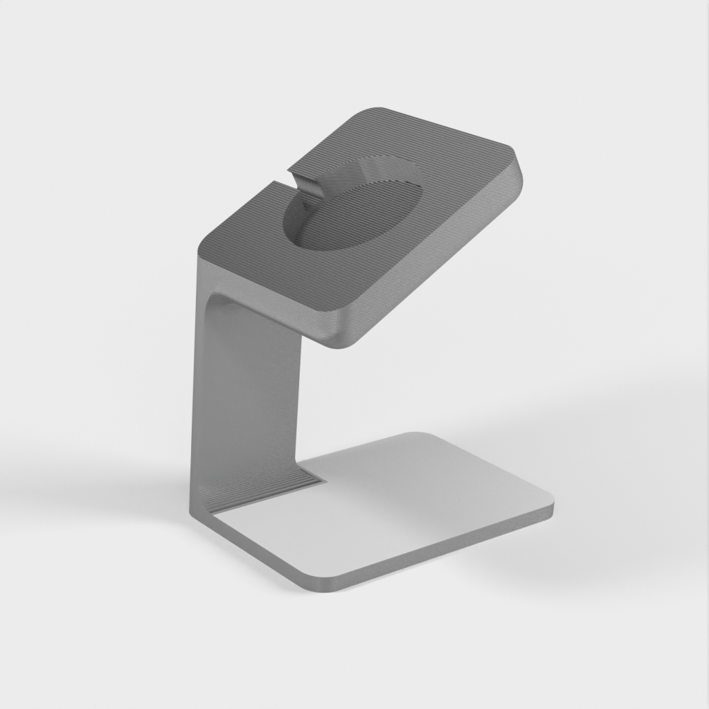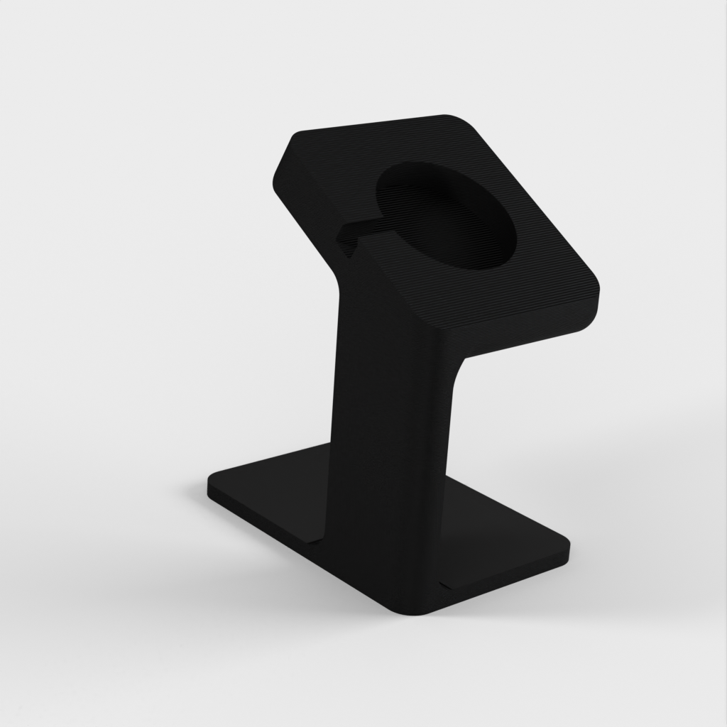 This is a charging station for an Apple Watch SE. It is easy to place and the charger fits securely into the stand, but not so tight that it will break if removed.
