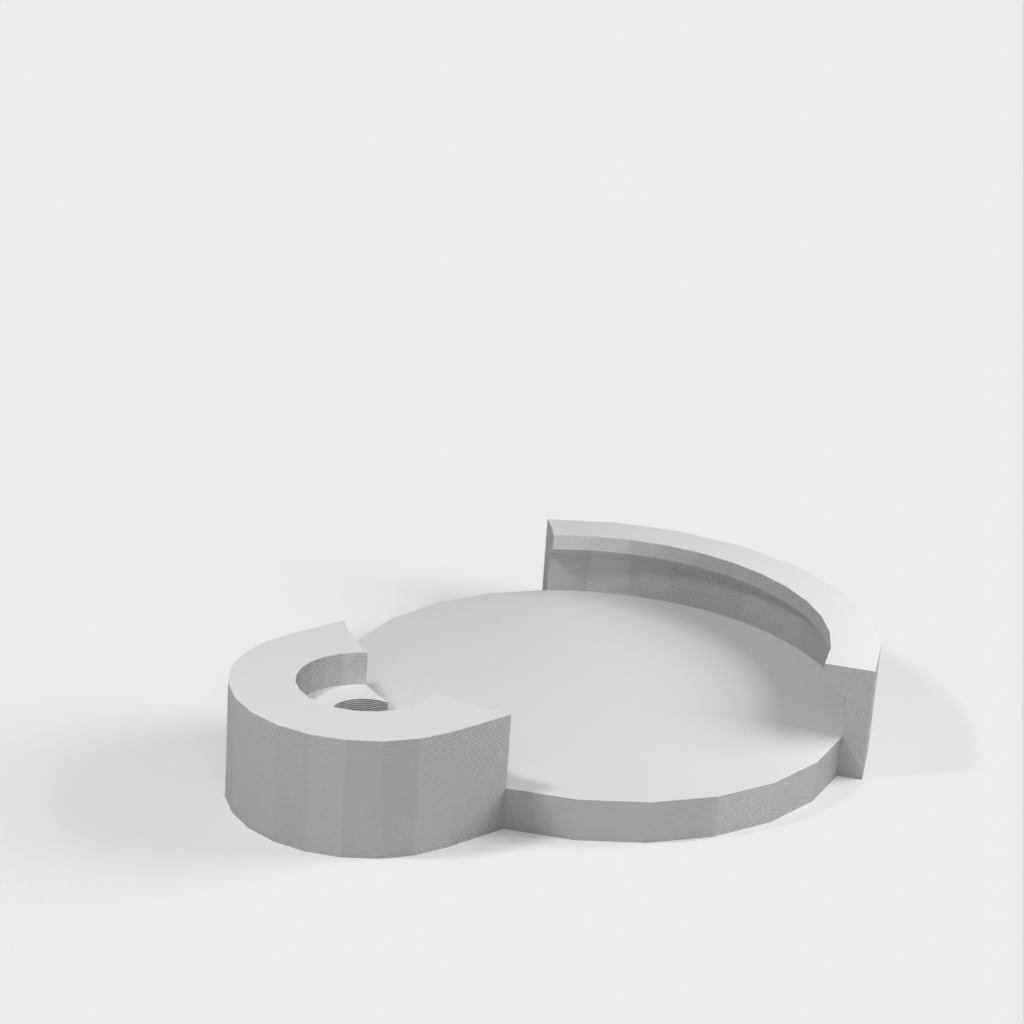 For at samle det, skal du kroge den nederste kant af Aqara monteringsbeslaget ind i underlæben af 3D-udskriften, dreje det fladt ind i 3D-udskriften. Det bør passe fast uden meget spillerum men uden overdreven kraft. Derefter indsætter du skruen, så skruehovedet næppe fanger læben af Aqara monteringsbeslaget. Som du strammer skruen, skulle den trække sig tilbage.