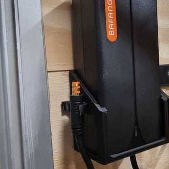 This practical wall mount is specially designed to organize and store your Bafang or Amslod e-bike charger. The charger is held securely and stably on the wall, which effectively reduces clutter and frees up valuable floor or table space in your garage or home.