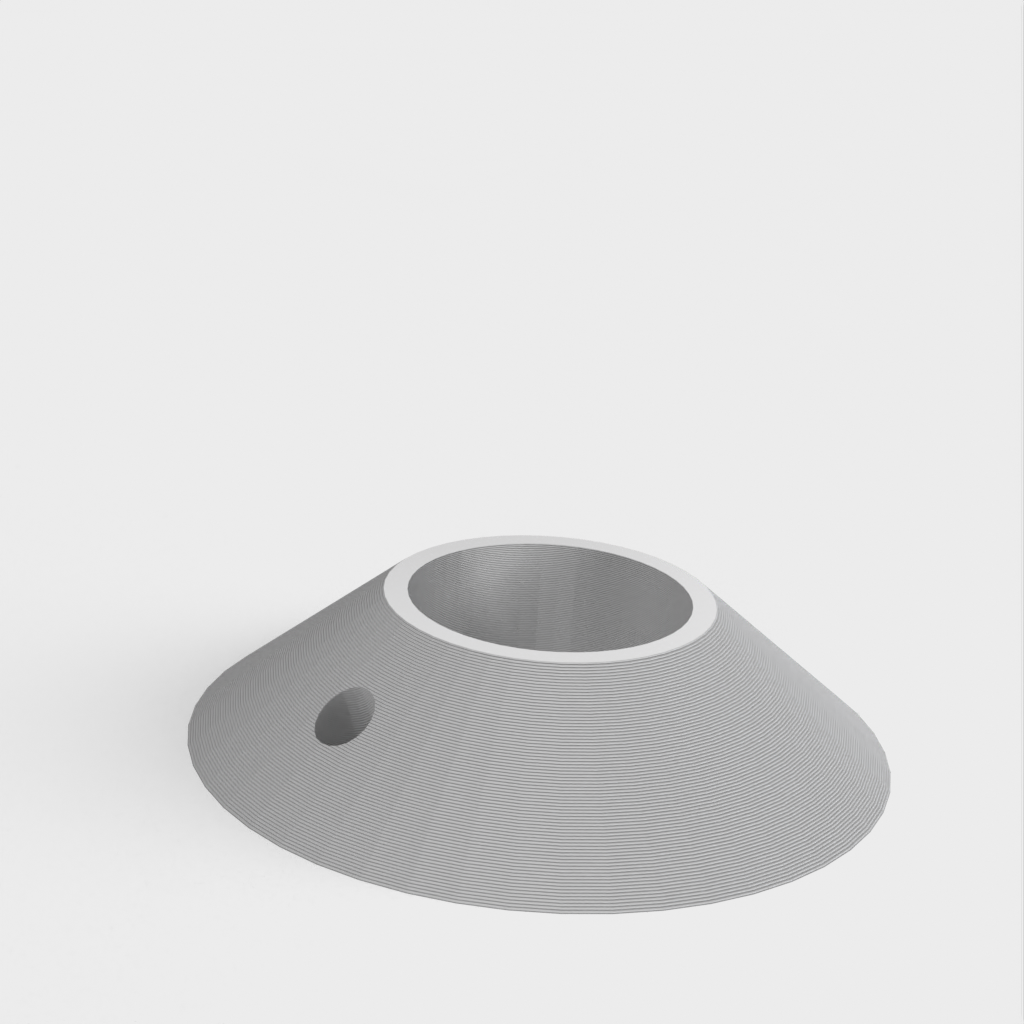 Det ydre måler 45mm, indvendig kant 21mm, indvendigt hul 18mm. Rosetten kan tilpasses til forskellige størrelser ved at følge Tinkercad linket: https://www.tinkercad.com/things/2lv649g1PzM