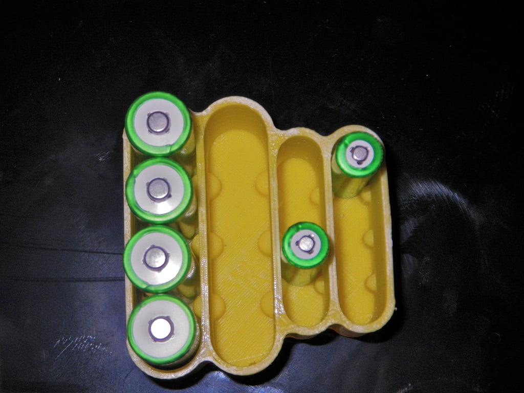 Keep your batteries in place with this battery holder. It can hold up to 8 AA batteries and 8 AAA batteries. And version 2 of this battery holder has small holes in the base plate; otherwise, it is identical to the original version.