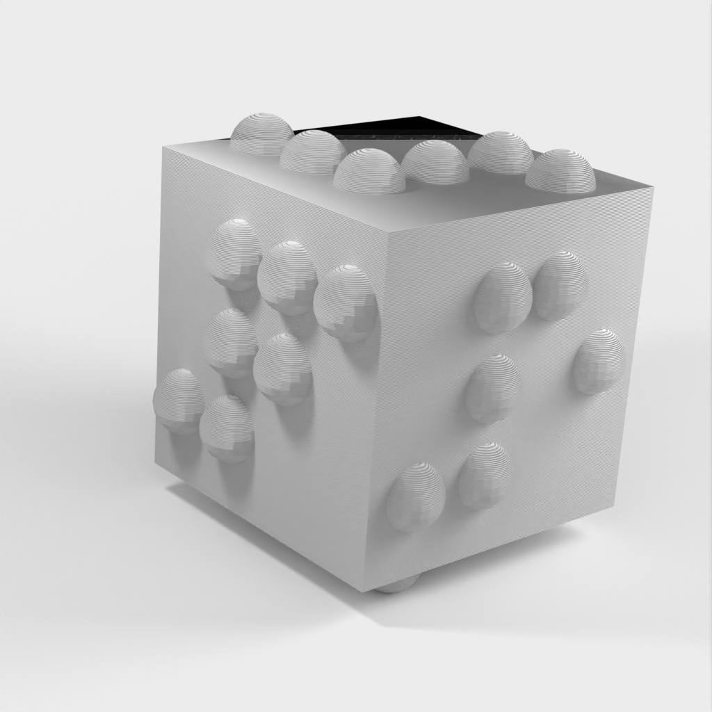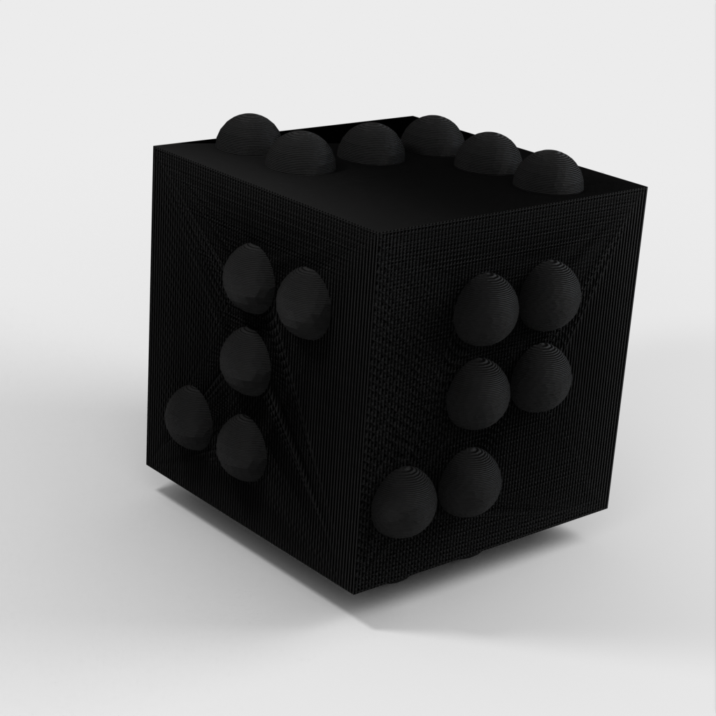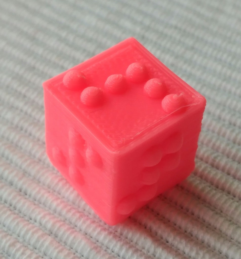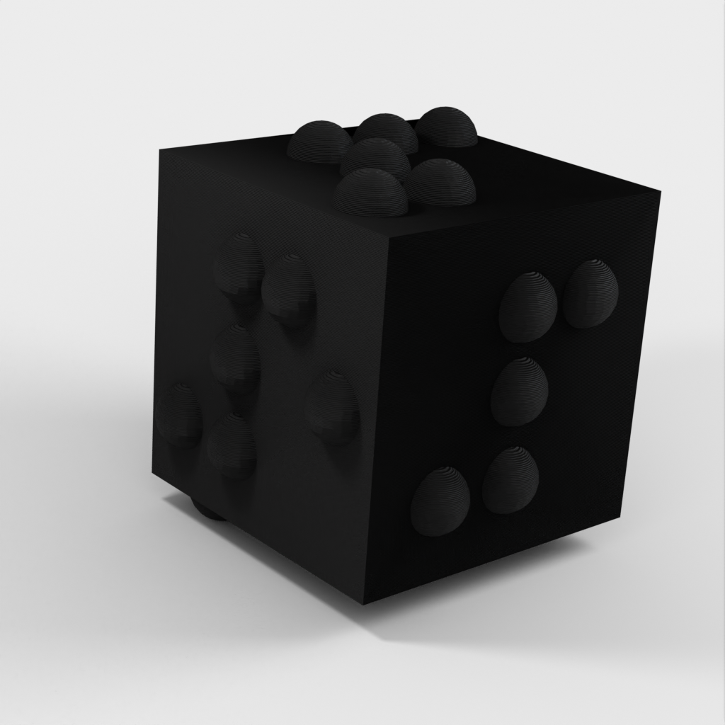 Dice designed to be played by people with visual impairments. This can be used to allow blind people to play dice games by touching the top to know what number they have rolled.