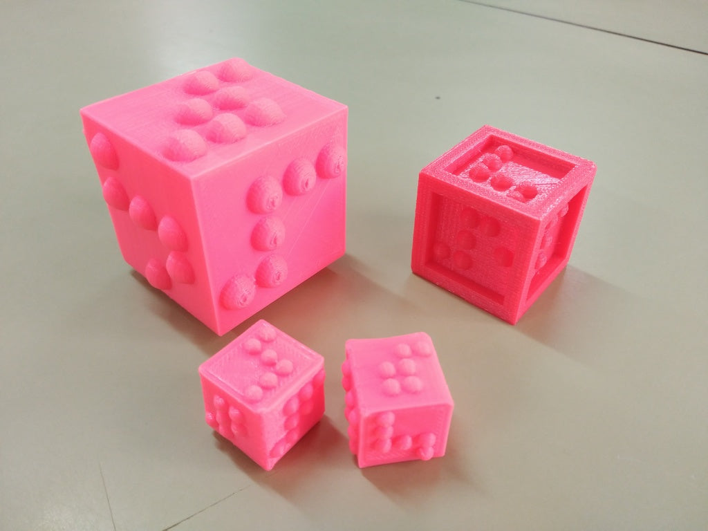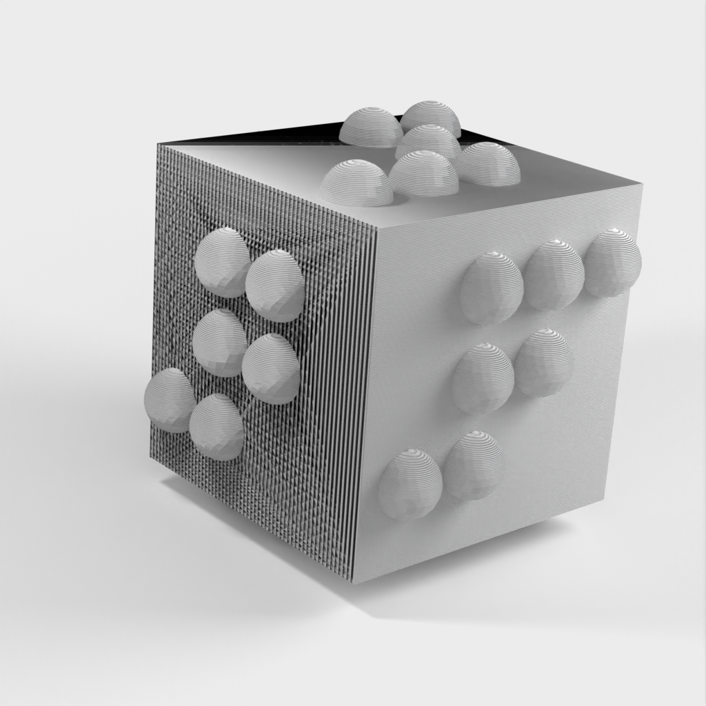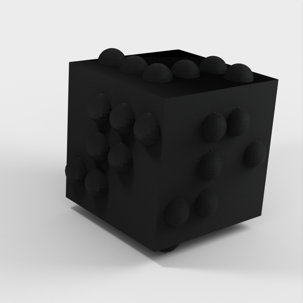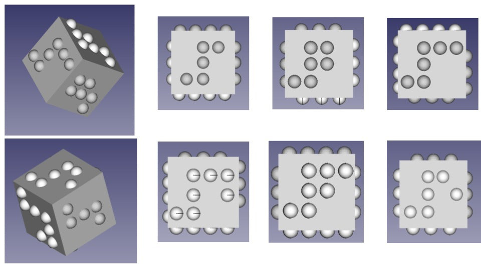 Dice designed to be played by people with visual impairments. This can be used to allow blind people to play dice games by touching the top to know what number they have rolled.