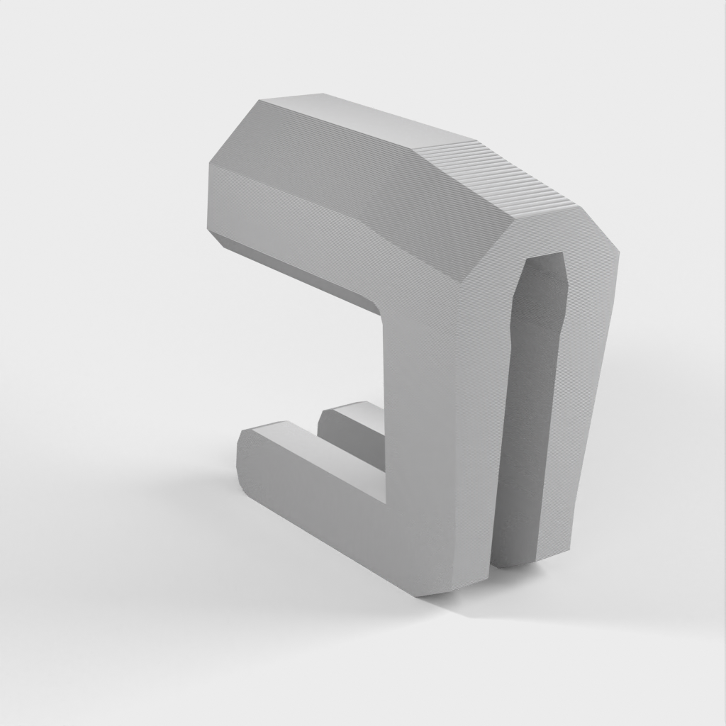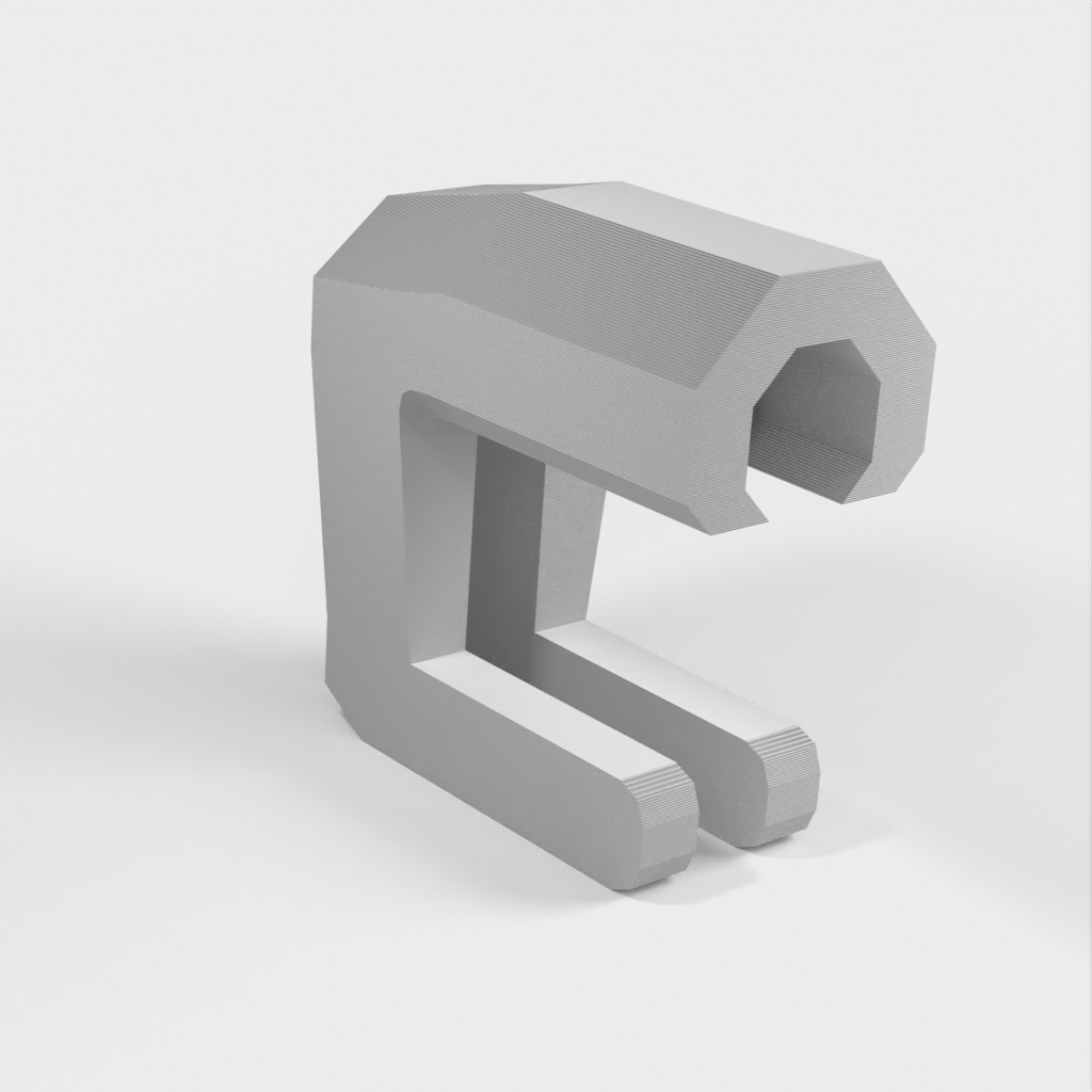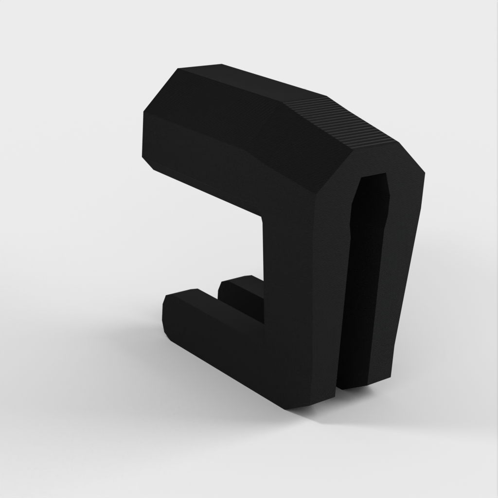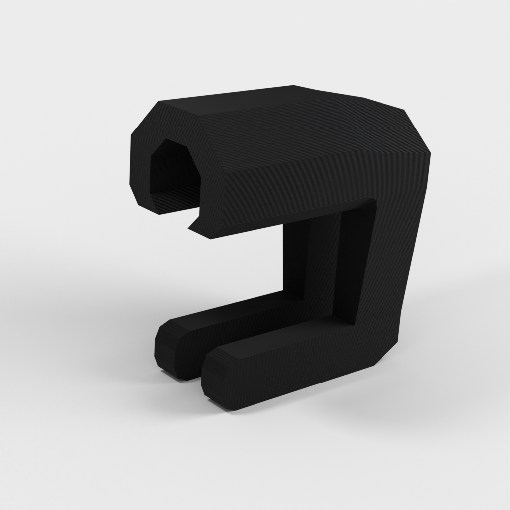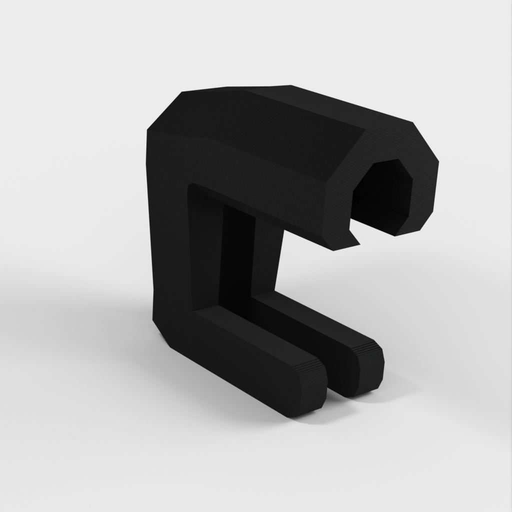 A simple cable holder, designed to fit the IKEA BEKANT desk. This holder helps manage the cables from your headset, mouse, and keyboard, keeping them secure and organized. Perfect for any home or office environment where cables can become messy or fall to the floor. This product is intended for desks with a thickness of 1.6cm.