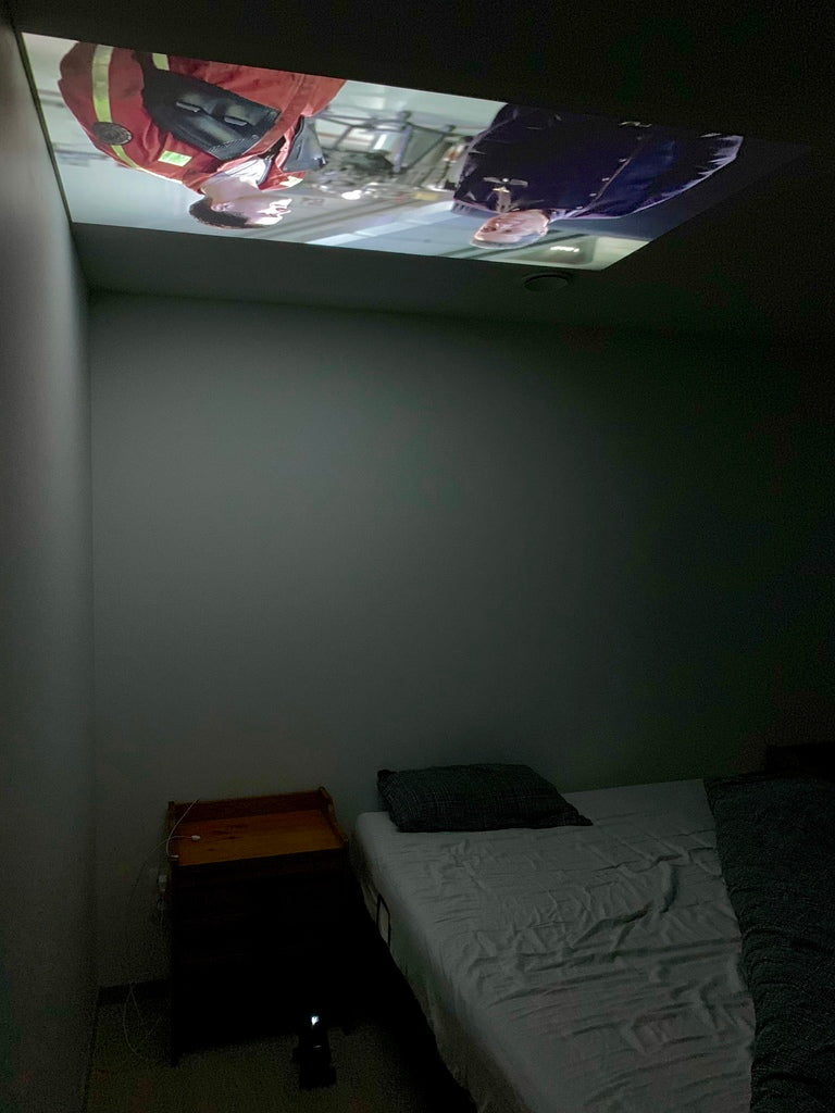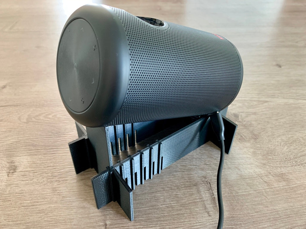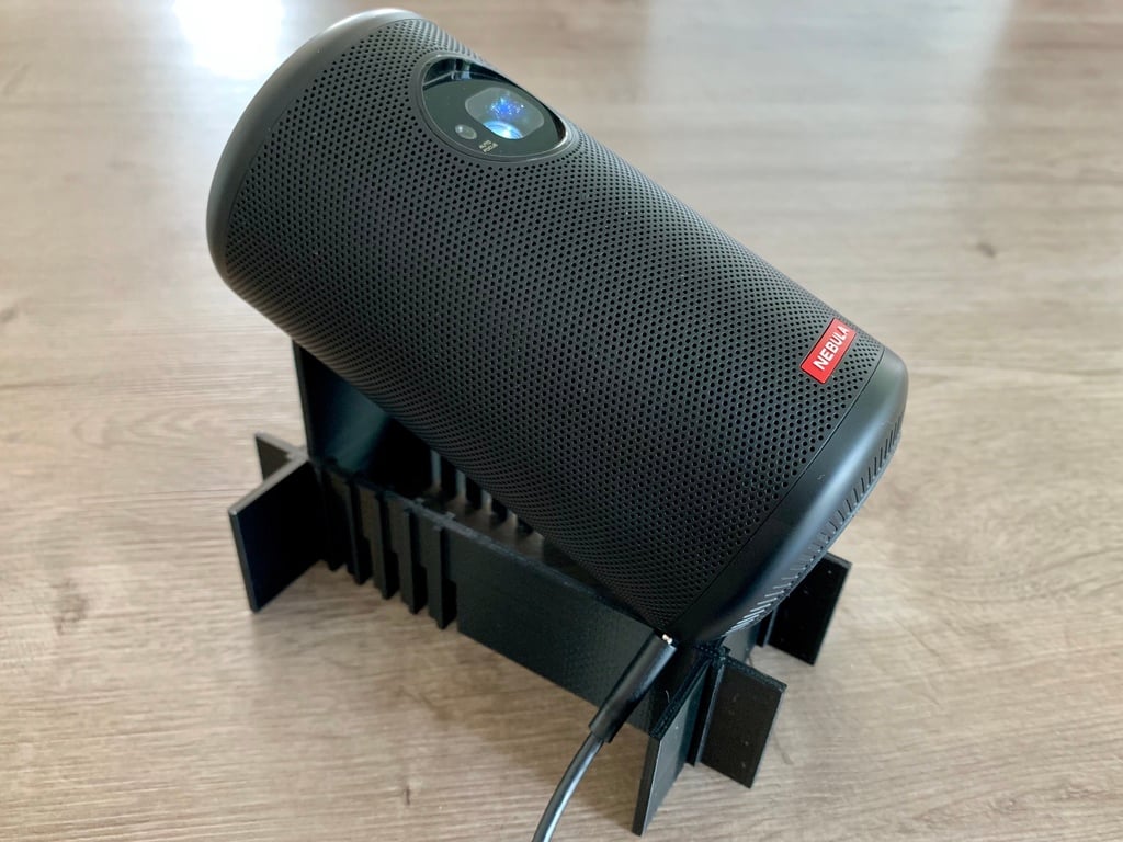 This is a ceiling projection stand for the Nebula Capsule 2 projector. The stand is very stable and quick and easy to use. It works on the floor, bedside table, bed, bookcase, etc., and it has adjustable angles. It can work with a small USB dongle and a USB-C power cable connected. It can be packed flat and fits in the case for the Nebula Capsule 2, and it is easy to print without supports.
