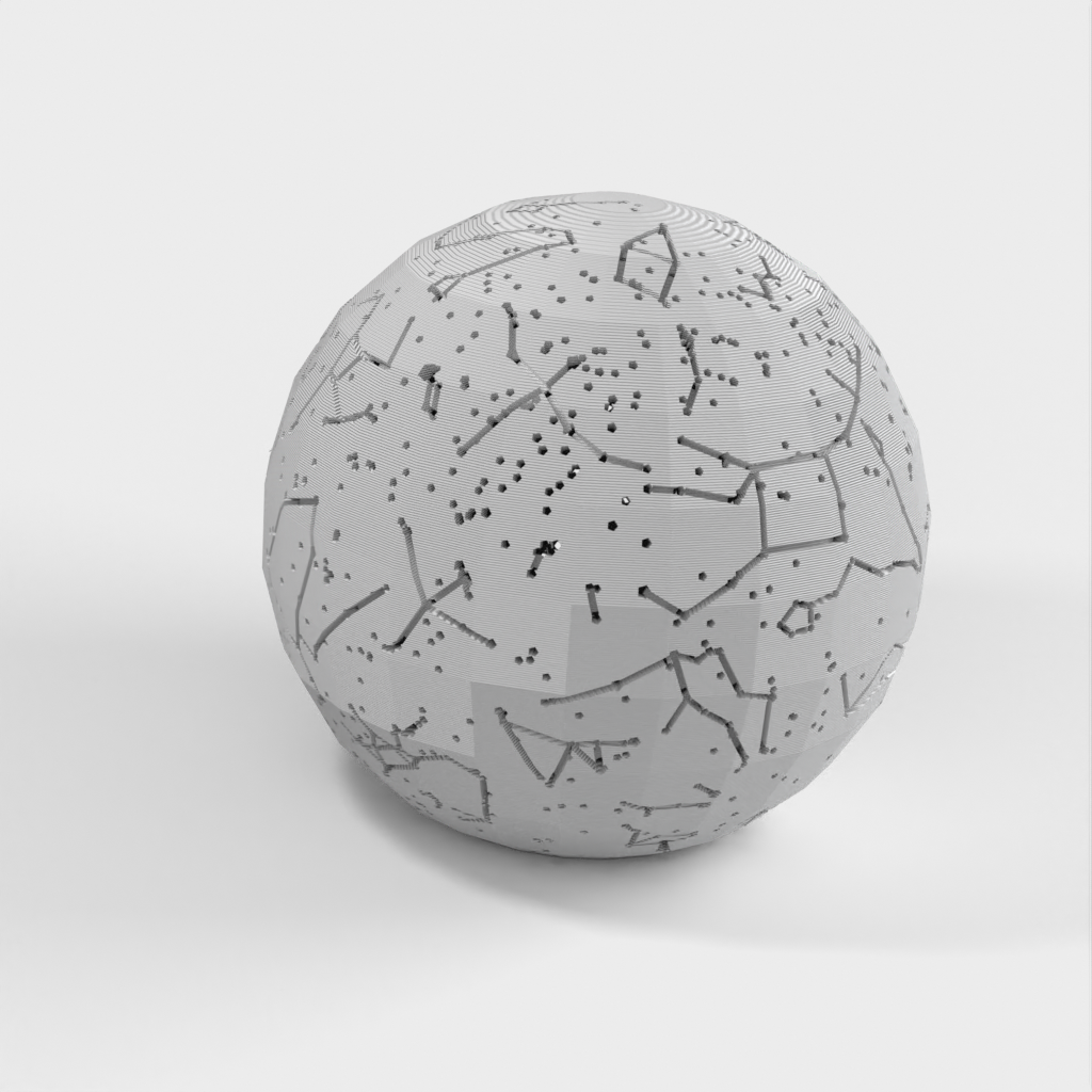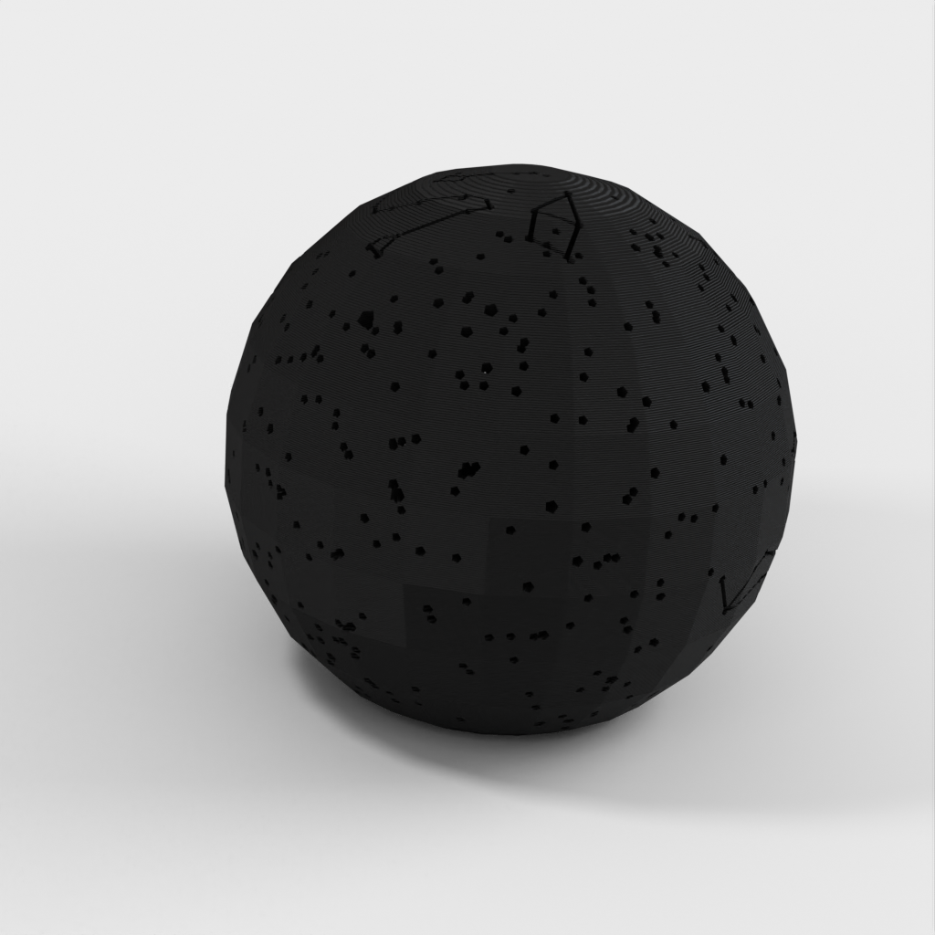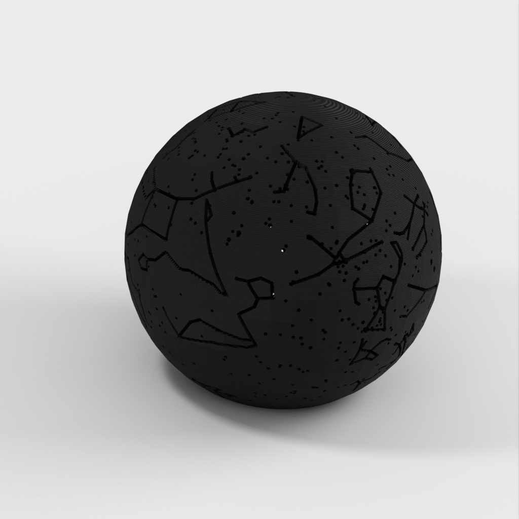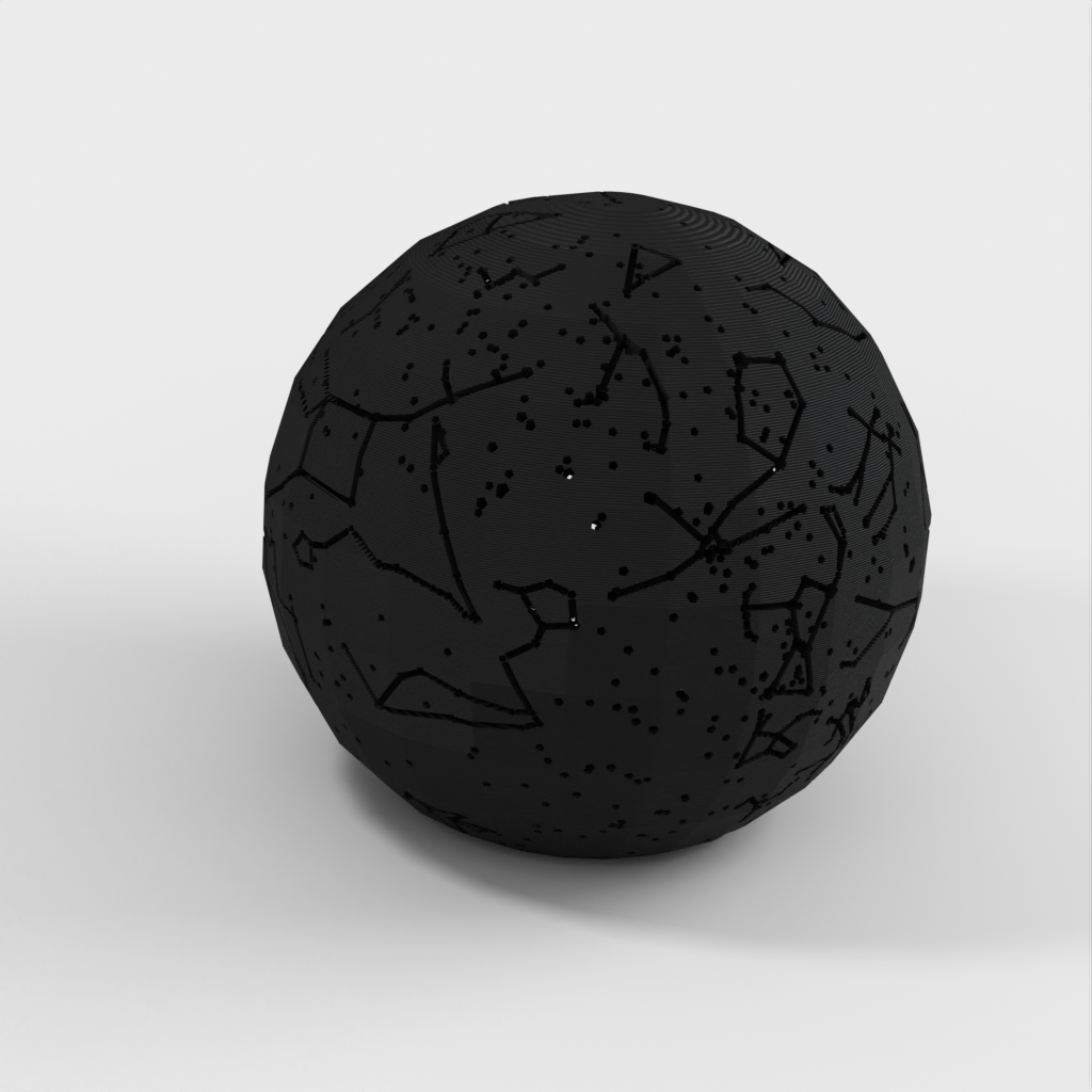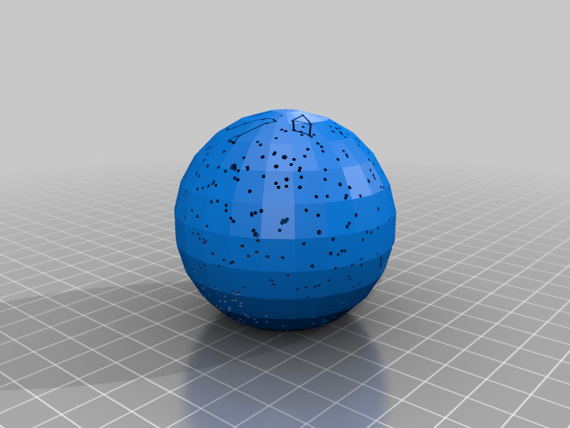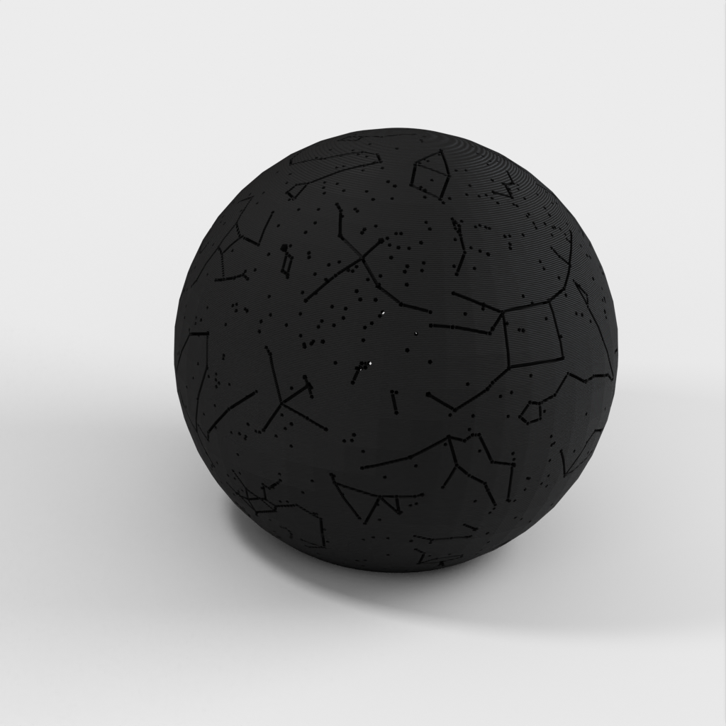 This product is an extension of the Celestial Sphere models and can generate STL files for a celestial sphere. Using Openscad, you can change many parameters and produce a 3D model of the celestial sphere, which can include more than 1700 of the brightest stars and up to 50 constellations. The model also involves plans for an equatorial type mount, complete with provisions for LED lighting inside the sphere.