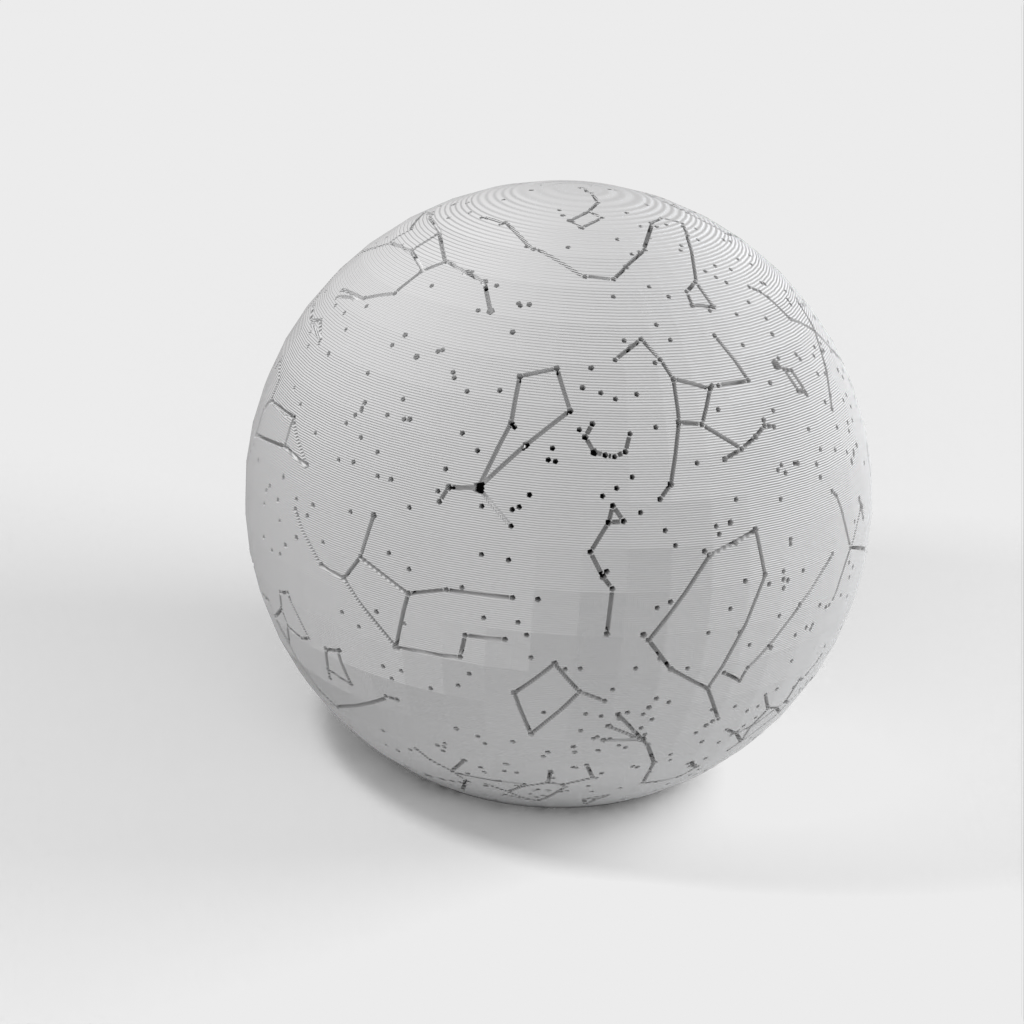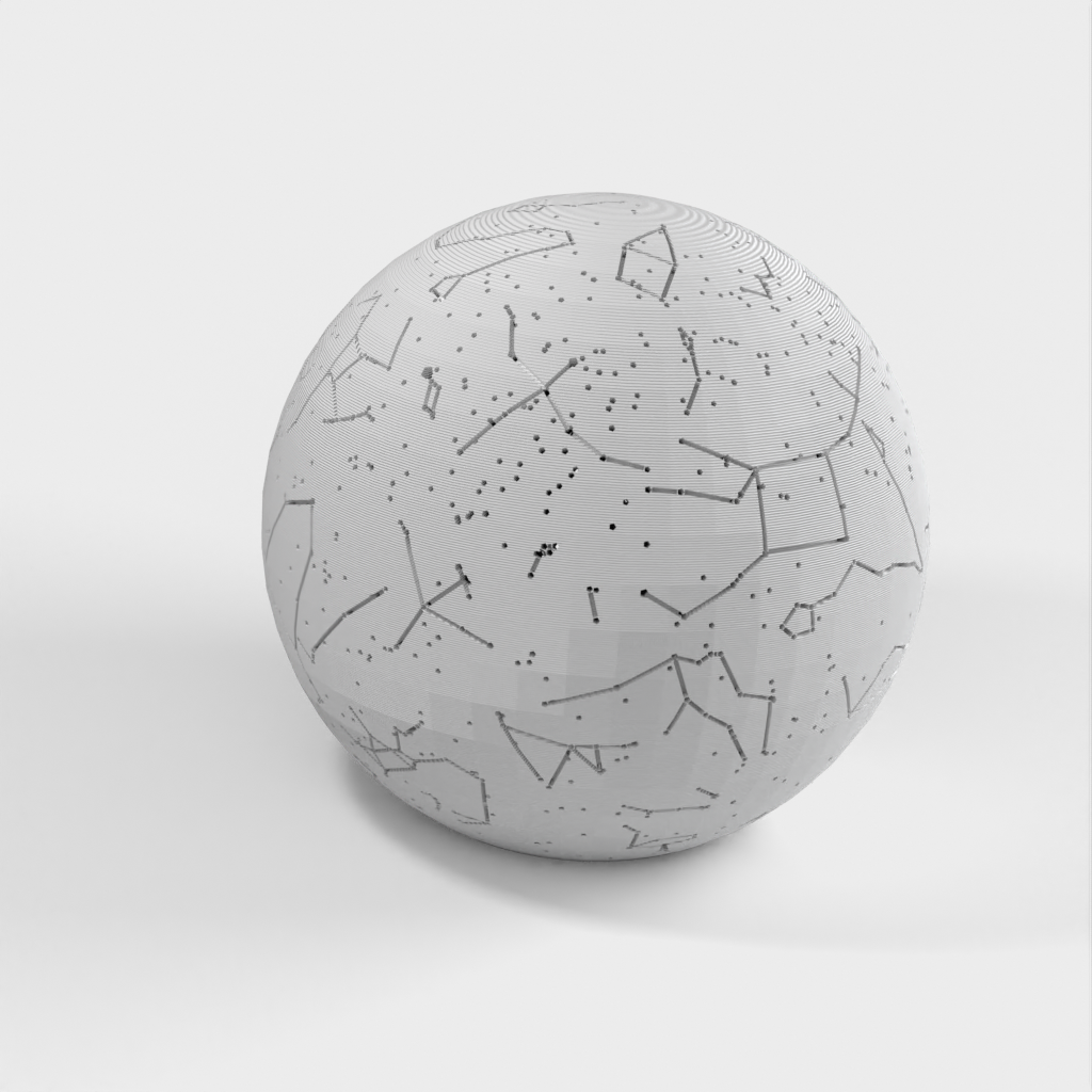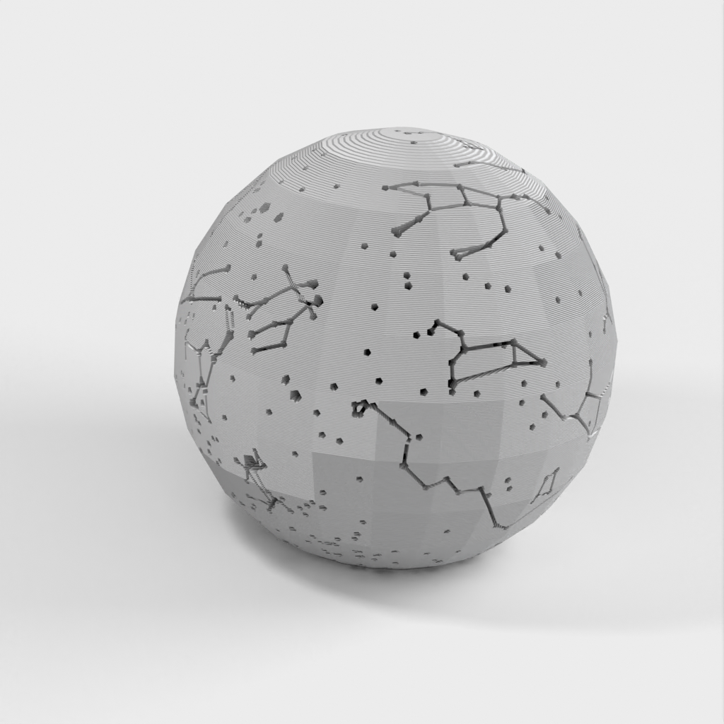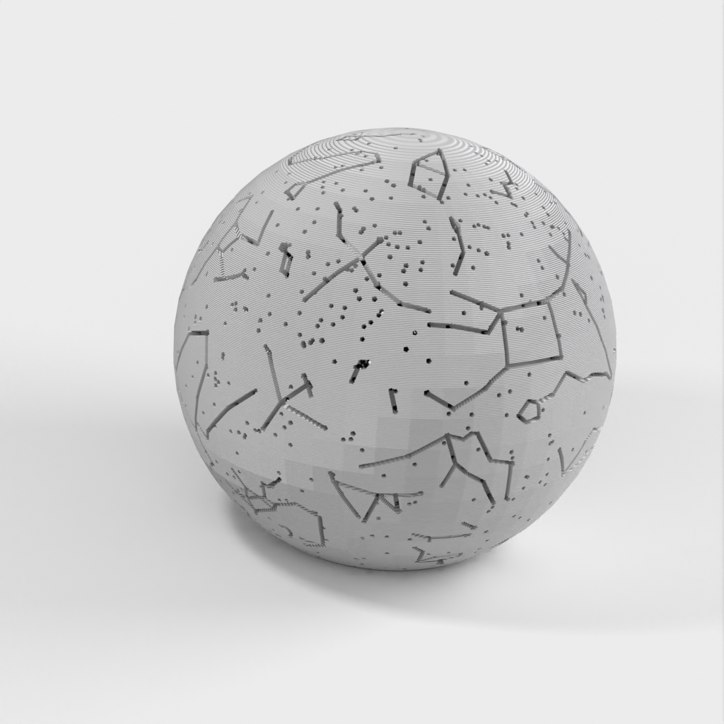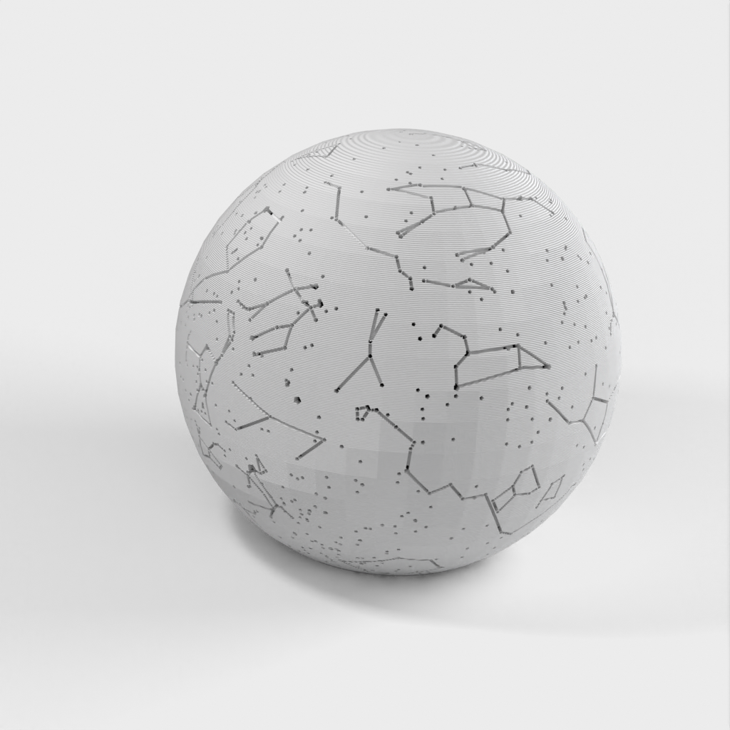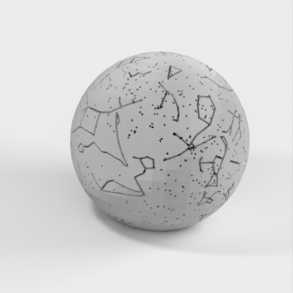 This product is an extension of the Celestial Sphere models and can generate STL files for a celestial sphere. Using Openscad, you can change many parameters and produce a 3D model of the celestial sphere, which can include more than 1700 of the brightest stars and up to 50 constellations. The model also involves plans for an equatorial type mount, complete with provisions for LED lighting inside the sphere.