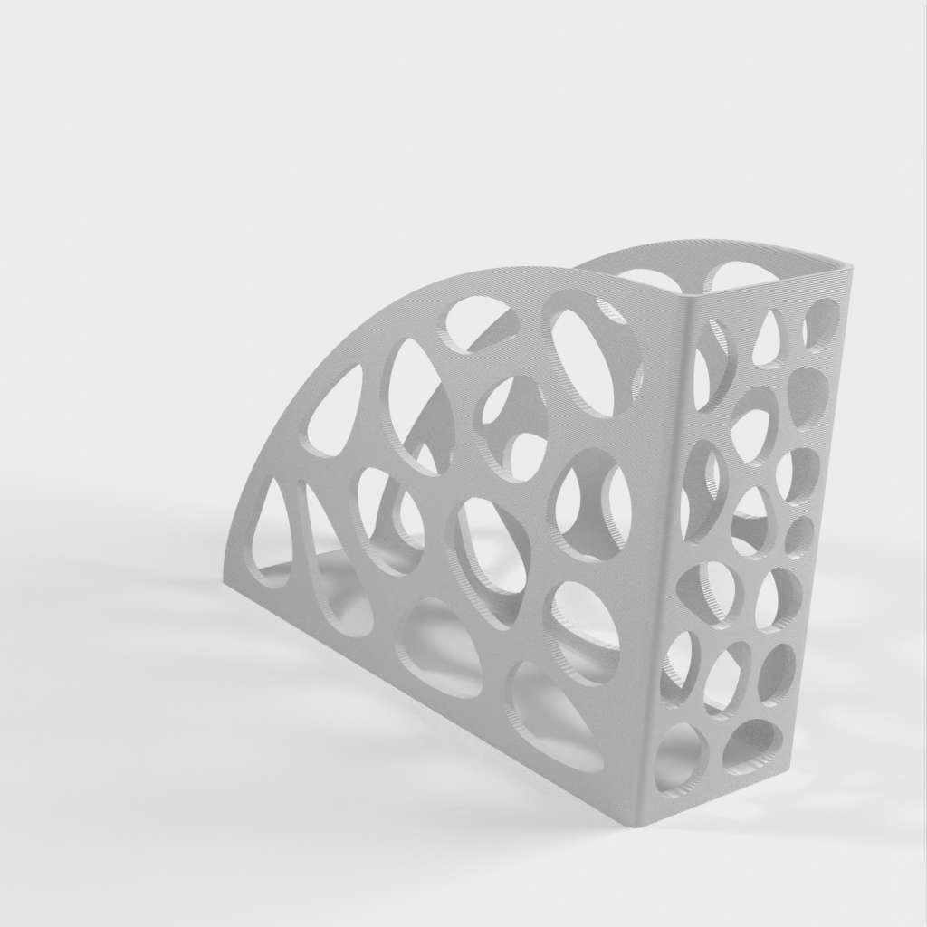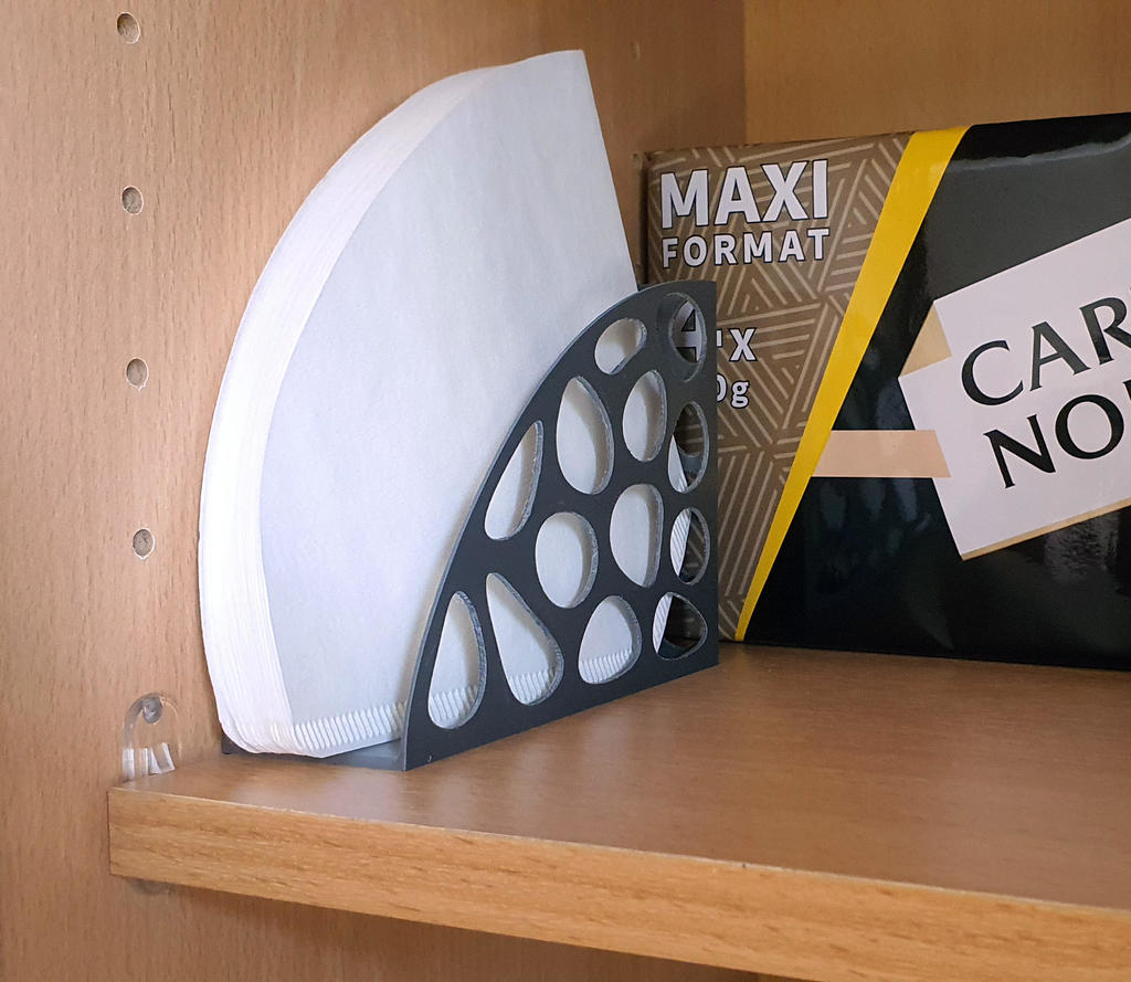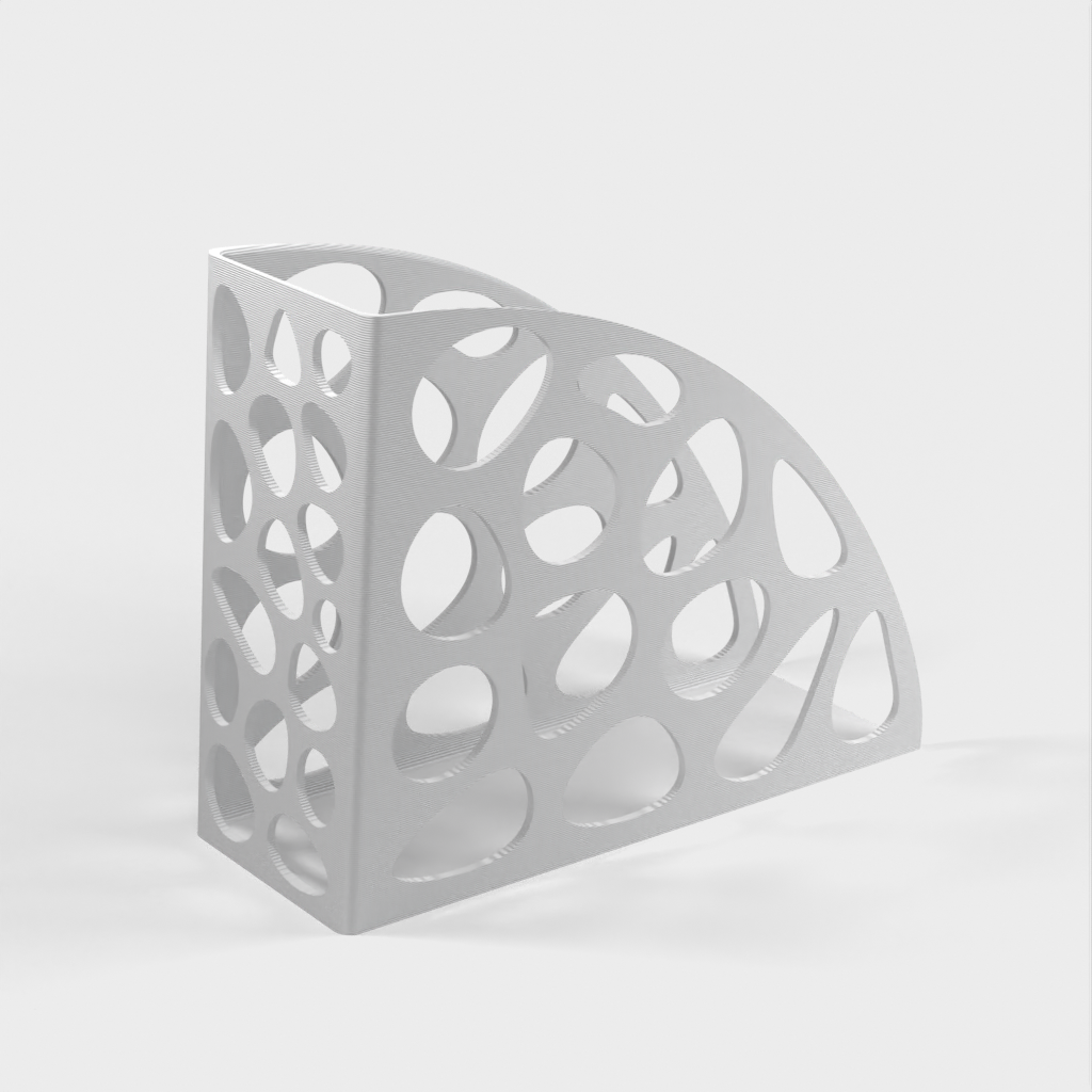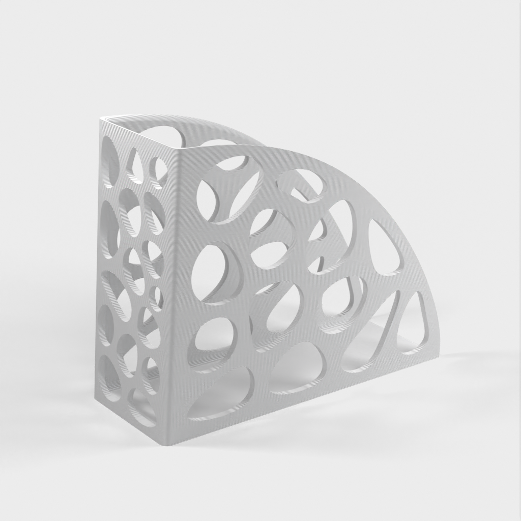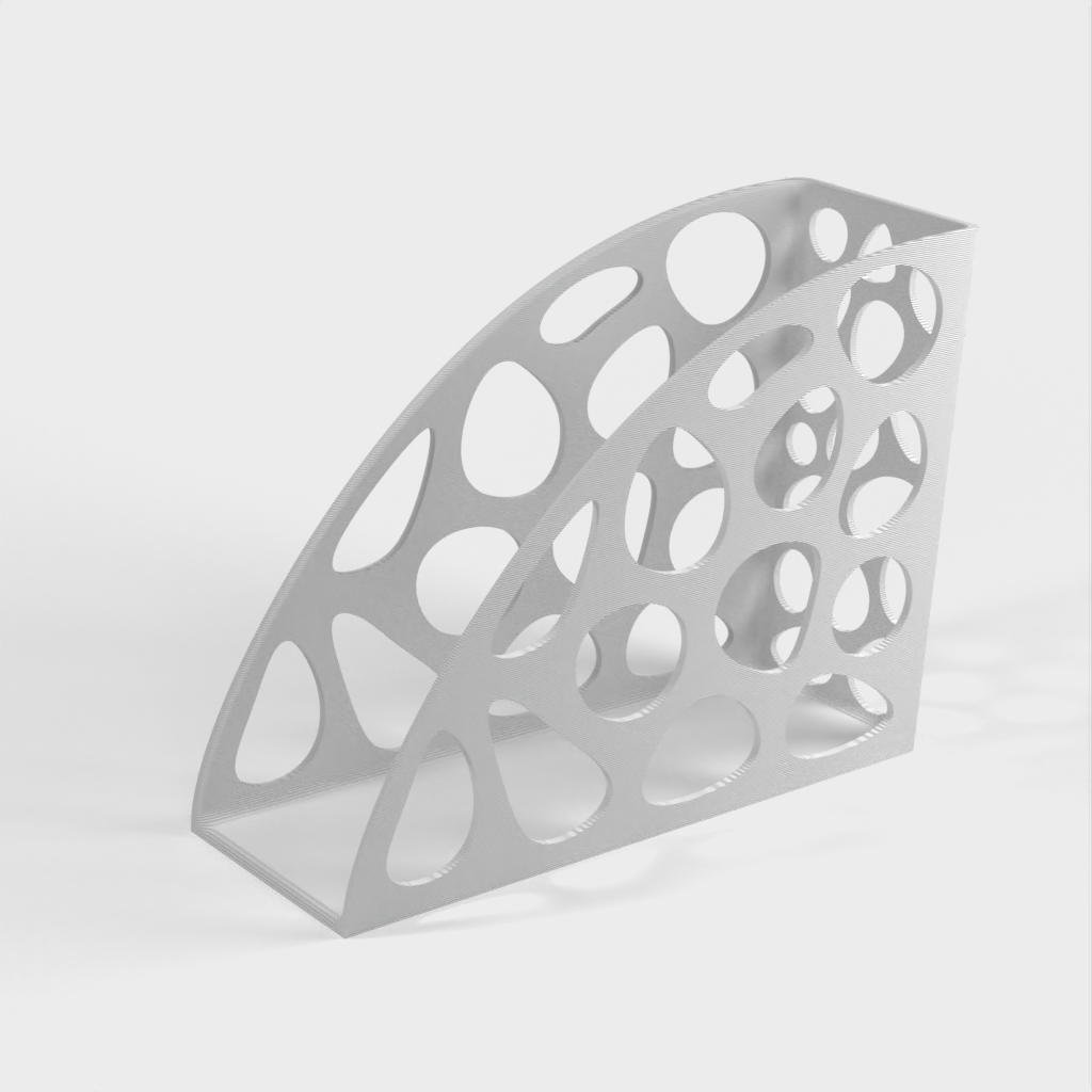 This is a simple coffee filter holder made with Voronoi diagram. Its design makes it easy to hold and organize your coffee filters in your kitchen. The product is robust yet light, making it easy to move around as needed.