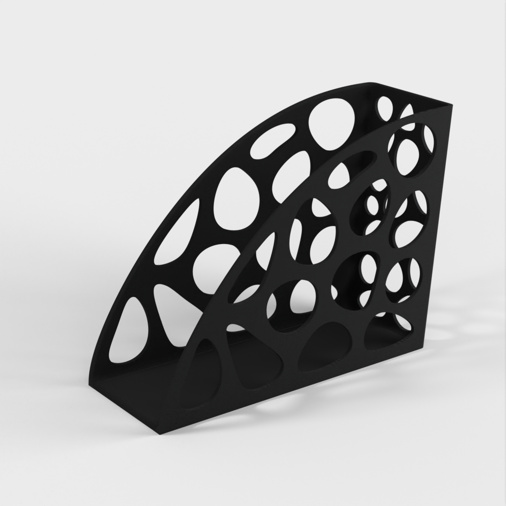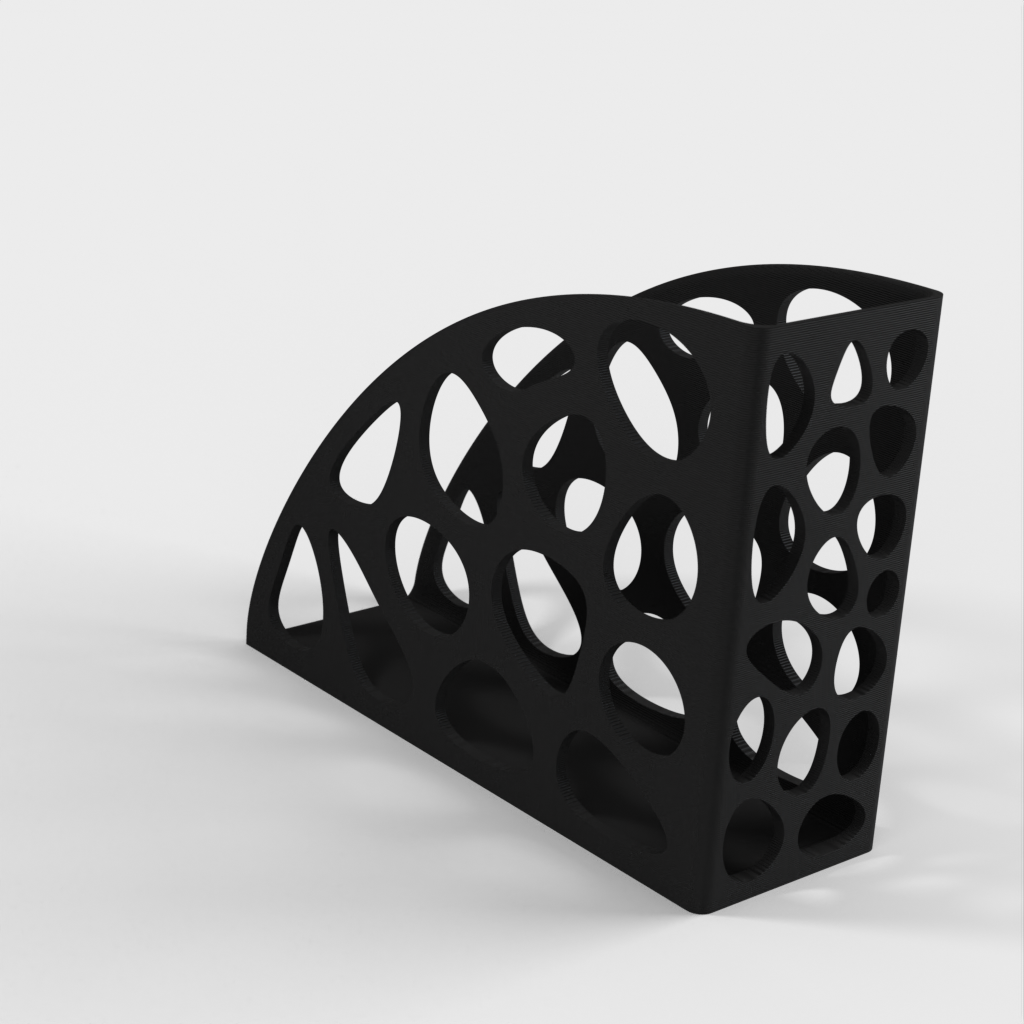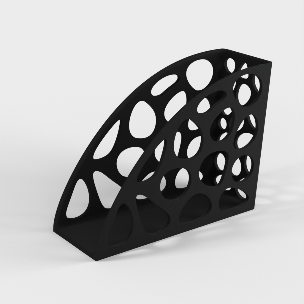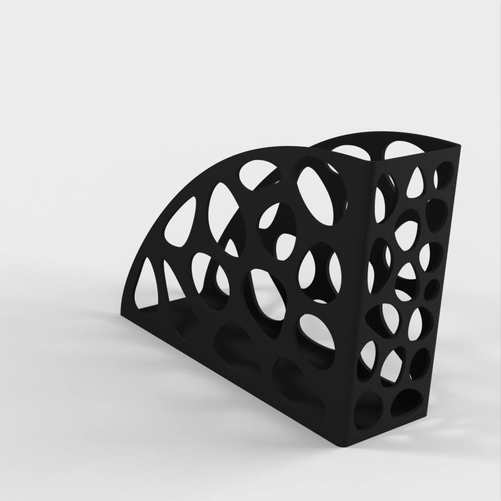 This is a simple coffee filter holder made with Voronoi diagram. Its design makes it easy to hold and organize your coffee filters in your kitchen. The product is robust yet light, making it easy to move around as needed.