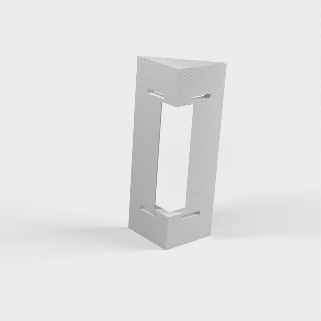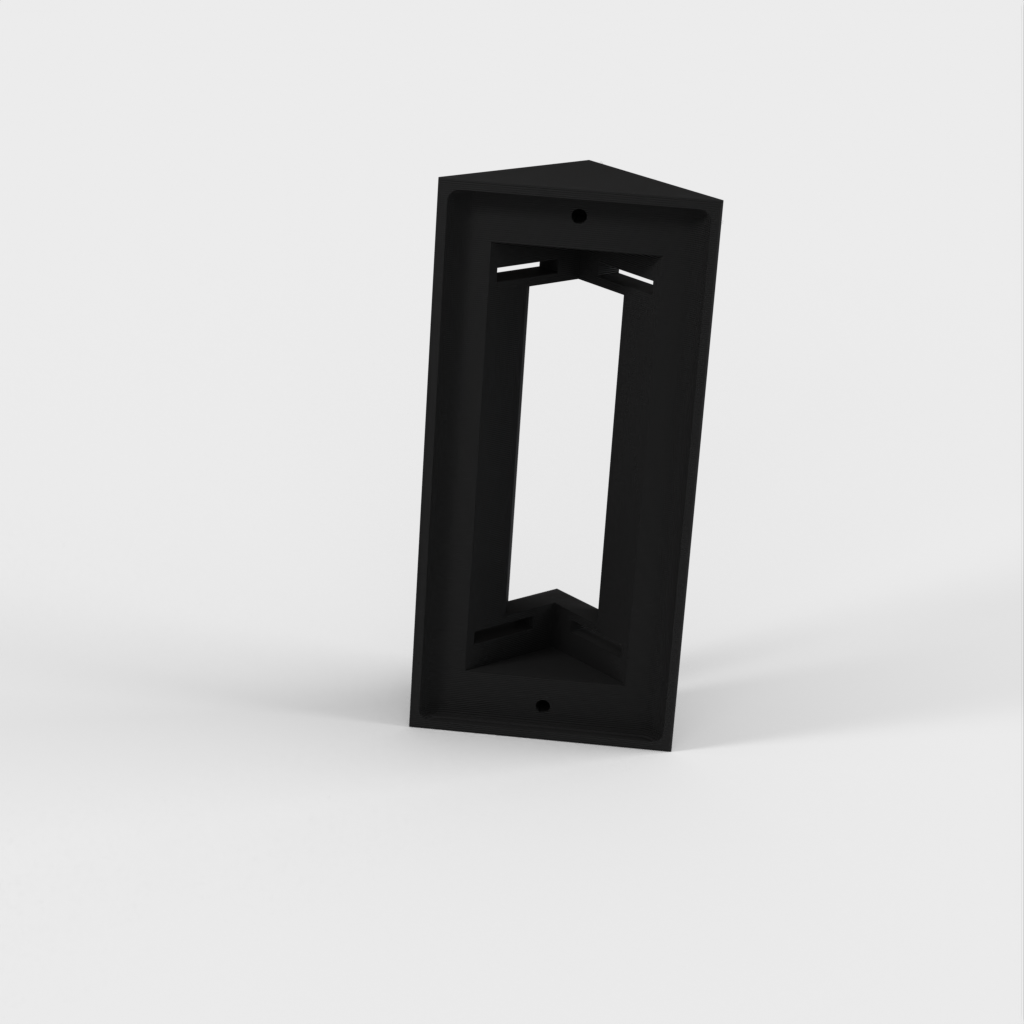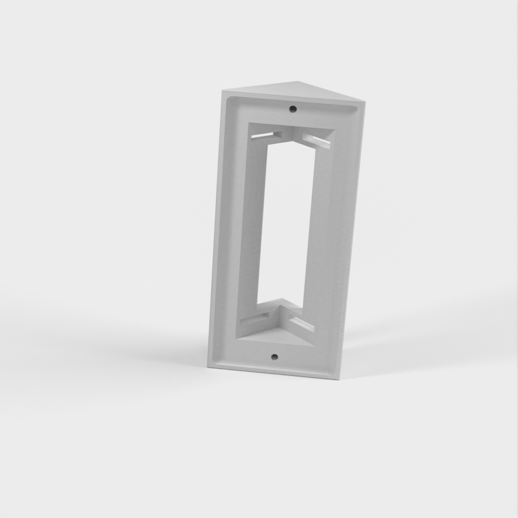 This is a bracket for the Ring Video Doorbell Wired 2021 release. The bracket allows the doorbell to be mounted in a corner. The bracket also has a cutout so that the doorbell can sit flush against the bracket instead of leaving a small gap around the edges. This design has a distance of 68mm between the bracket's mounting holes, meaning your mounting screws in your brick/house must be 68mm apart.