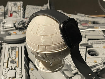 Give your Apple Watch an epic home base with this unique Death Star stand. This charger stand is designed to securely hold your watch while it charges, while adding a distinct Star Wars theme to your space.