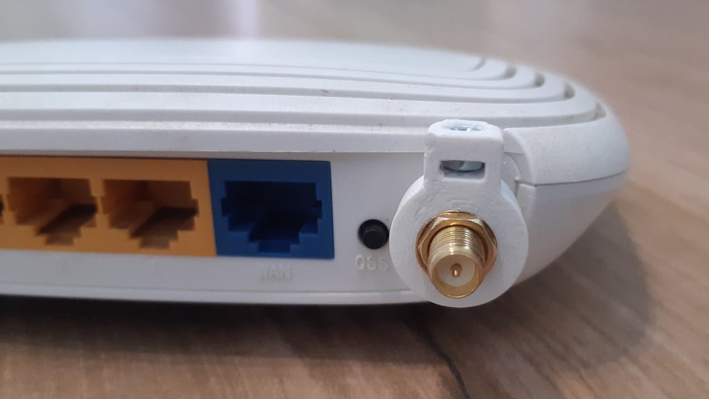 This is a holder for RP-SMA connectors for TP-Link routers (TL-WR841N, TL-WR740N). The holder is used to convert a router with a fixed antenna to a detachable antenna. It is designed to use an M2.5 countersunk head bolt to screw the holder in place.