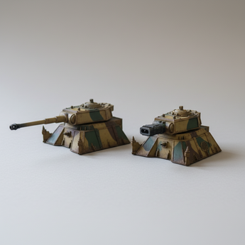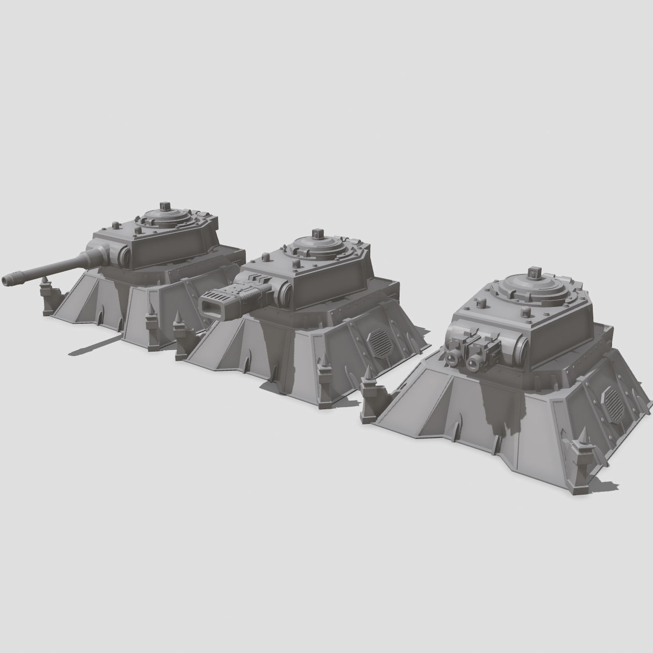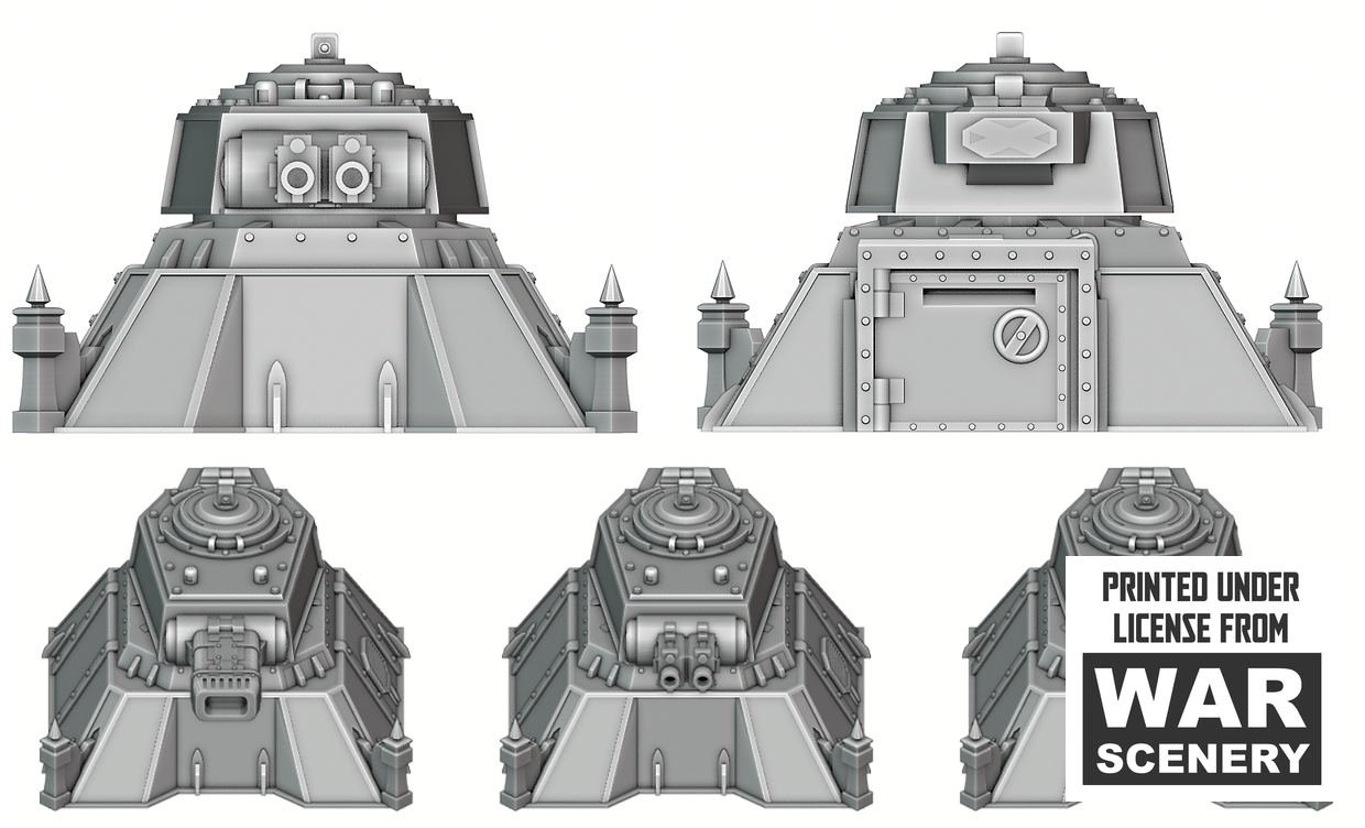 This terrain set offers strategic fortifications and ruins for your tabletop battles. Ideal for Warhammer 40k, these detailed gun emplacements allow Imperial, Chaos, and Xenos forces to establish vital cover positions, enriching intense grimdark scenarios on the battlefield.