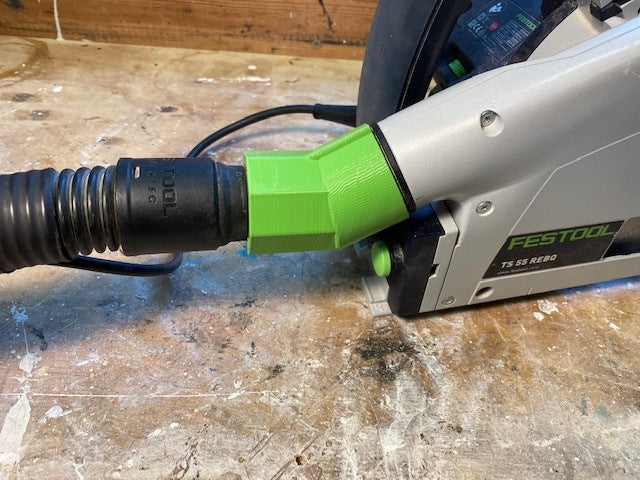This is a saw dust extraction adapter for the Festool TS55. This adapter is robustly constructed and designed to prevent drooping, making it more efficient and easier to use your tool. Any suggestions for improvement are welcome.