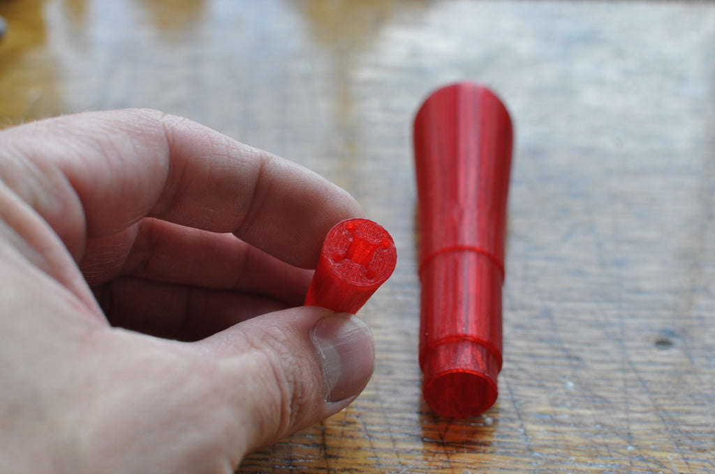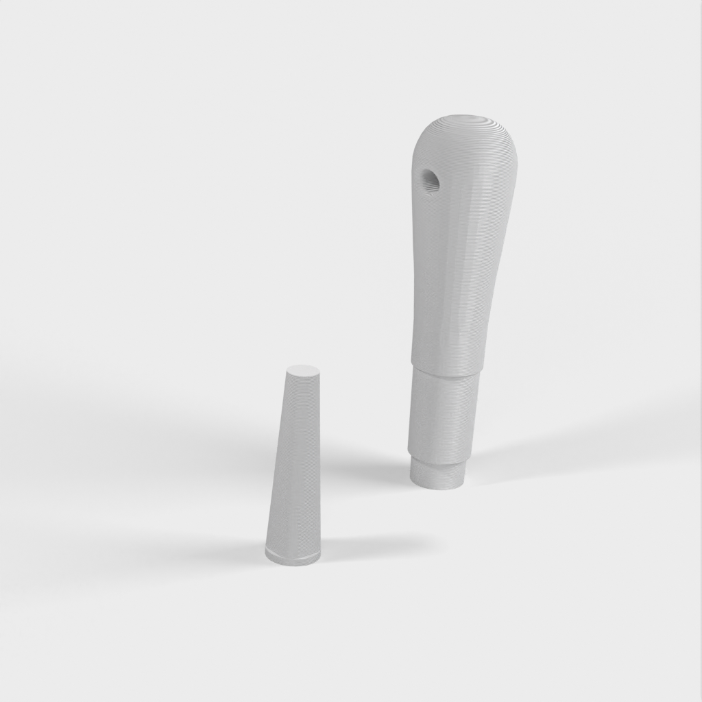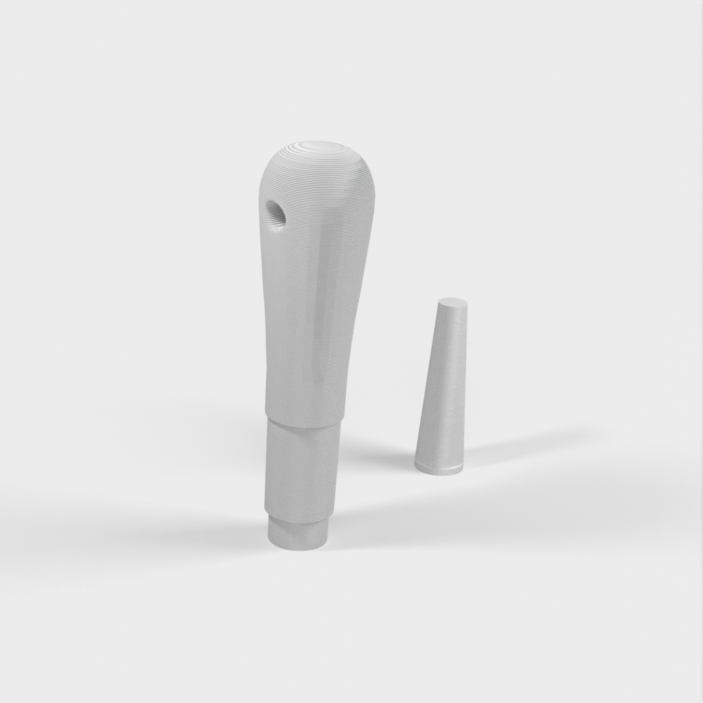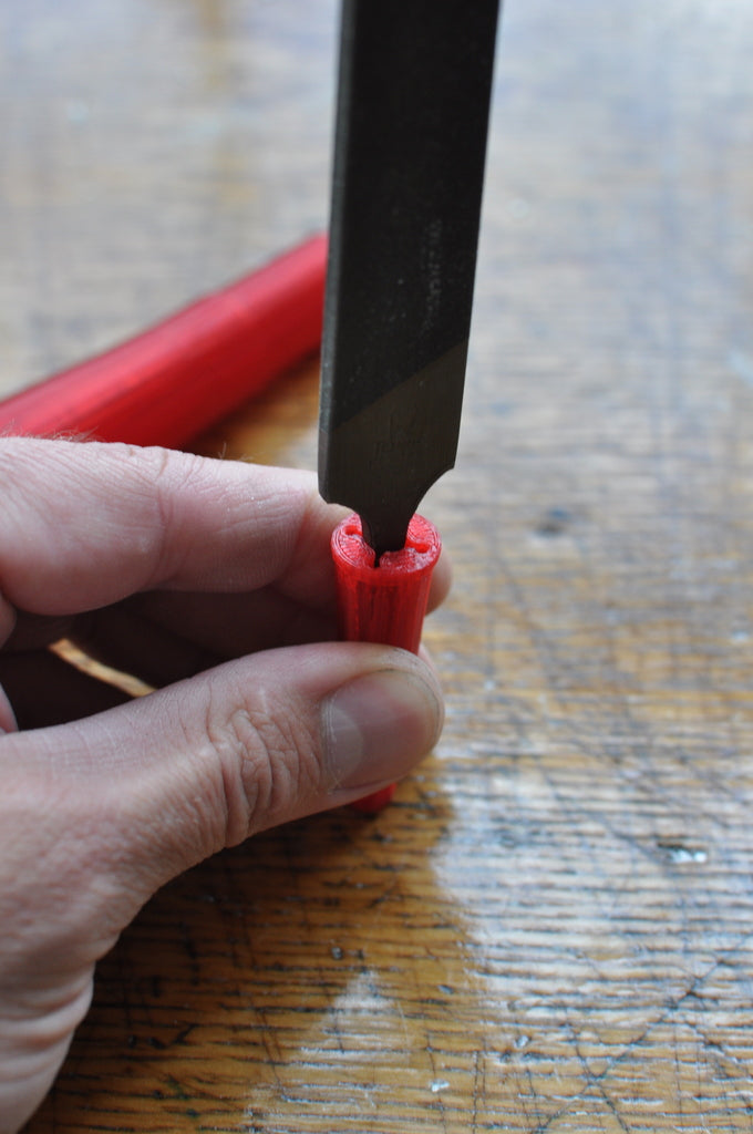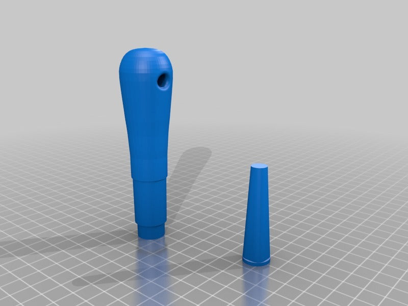 This is a file handle for metal files. Over time I have acquired many files and it is now time to organize them so they all have handles and can be hung on a tool board. The handle uses a tapered insert that can be attached to the file, and then the handle can be put over the insert and the file. I have added a hole to the current design and scaled the handle to have a full range of handle sizes for different file sizes. The set will be added here soon.