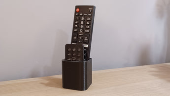 Denne fjernbetjeningsholder er designet til at give en praktisk opbevaringsløsning for dine fjernbetjeninger, specifikt til LG Smart TV og en soundbar. Ved at holde dine fjernbetjeninger samlet på ét sted kan du bidrage til et mere organiseret og ryddeligt område ved dit underholdningssystem. Holderen sikrer, at dine mest brugte fjernbetjeninger er lettilgængelige, når du har brug for dem, hvilket kan minimere søgetiden og forbedre din brugsoplevelse.