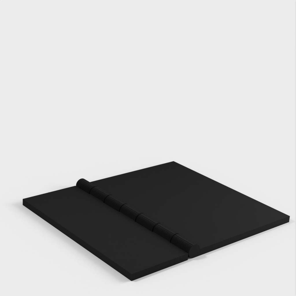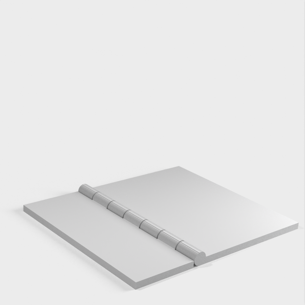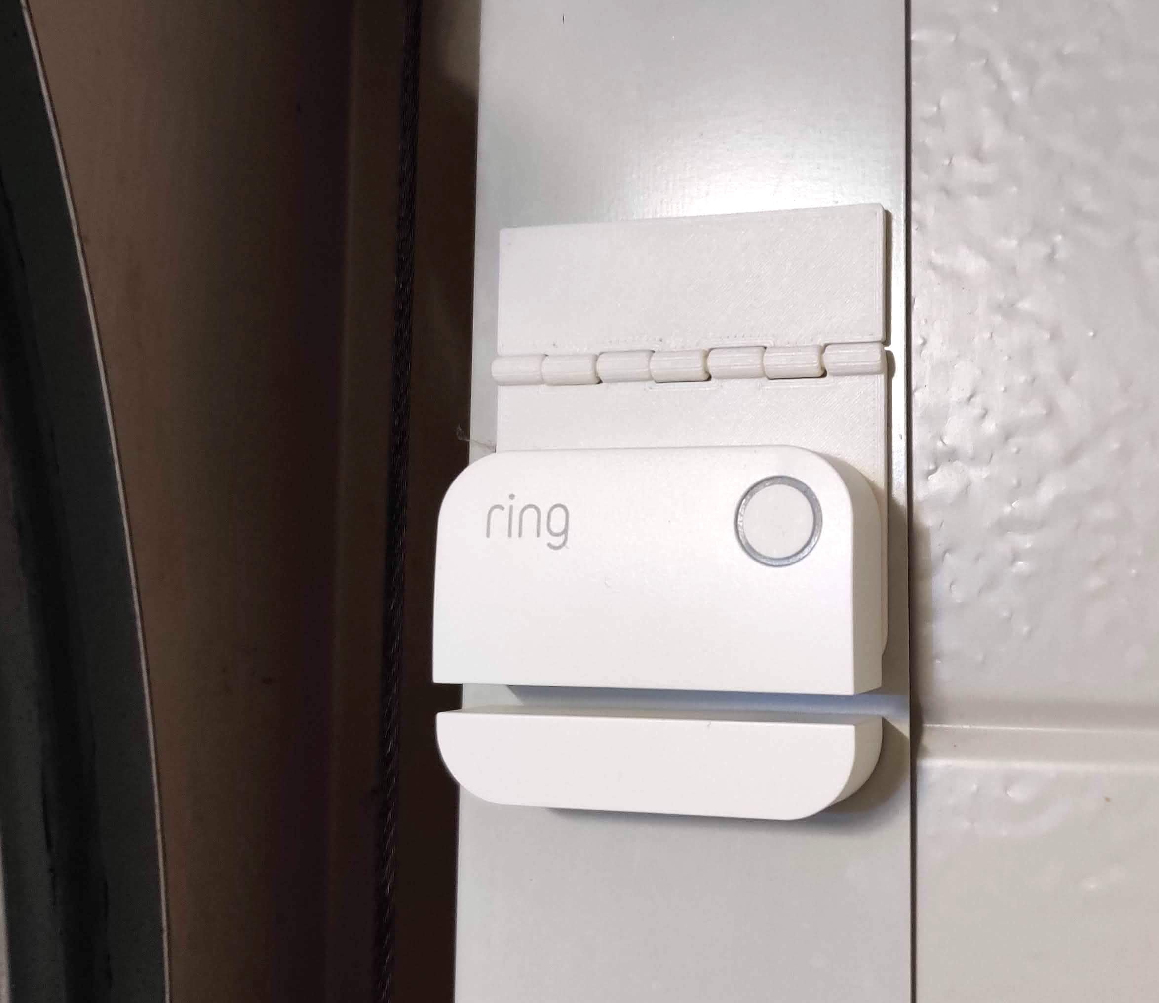 The garage door adapter for the 2nd gen Ring Alarm Contact Sensor is an easy and quick solution for securing your garage door. Mount the Ring contact sensor (the larger part) with the supplied self-adhesive tape to the longer flip of the hinge, right on the edge. Use a piece of double-sided tape or similar material for the shorter hinge flip on the back, to attach it to the garage door. The contact sensor's magnet goes just below it (attach it with the included self-adhesive directly to the garage door), leaving about 2-3mm between them as there is a slight magnetic attraction. This design is based on the Parametric Hinge scad. The parameters are fine-tuned to fit the Ring Alarm Contact Sensor and a necessary swing, and one of the flaps was cut down to make it smaller.