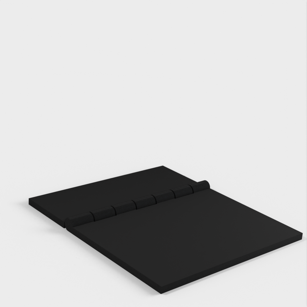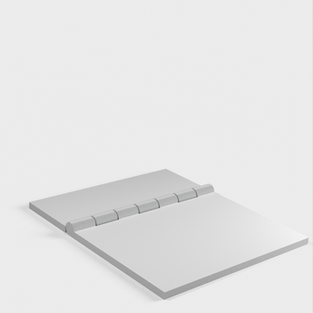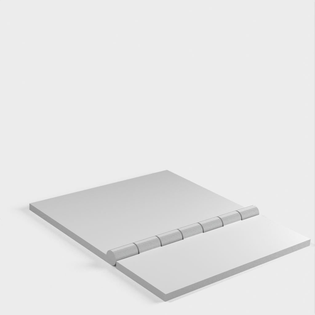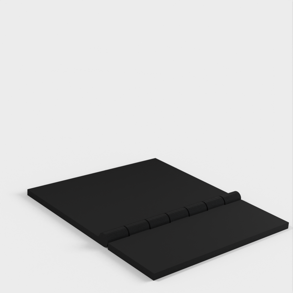 The garage door adapter for the 2nd gen Ring Alarm Contact Sensor is an easy and quick solution for securing your garage door. Mount the Ring contact sensor (the larger part) with the supplied self-adhesive tape to the longer flip of the hinge, right on the edge. Use a piece of double-sided tape or similar material for the shorter hinge flip on the back, to attach it to the garage door. The contact sensor's magnet goes just below it (attach it with the included self-adhesive directly to the garage door), leaving about 2-3mm between them as there is a slight magnetic attraction. This design is based on the Parametric Hinge scad. The parameters are fine-tuned to fit the Ring Alarm Contact Sensor and a necessary swing, and one of the flaps was cut down to make it smaller.