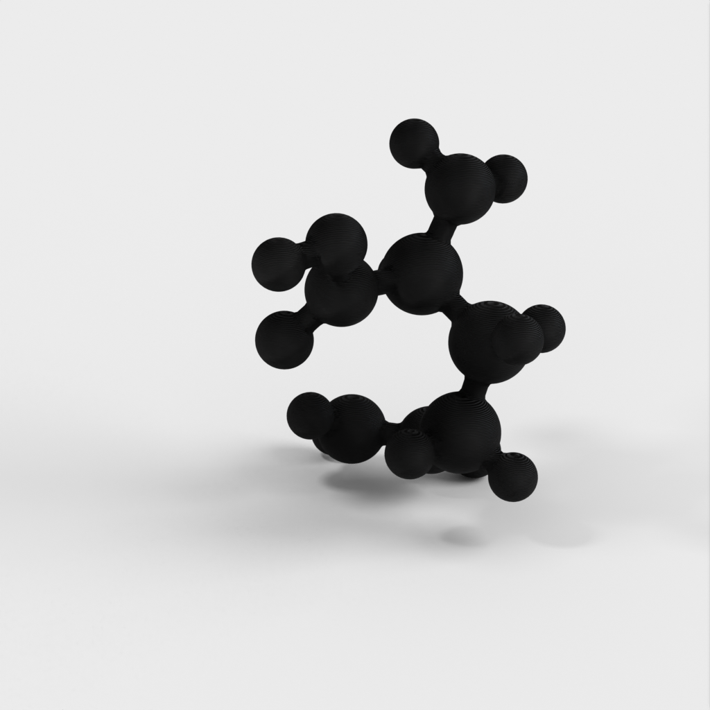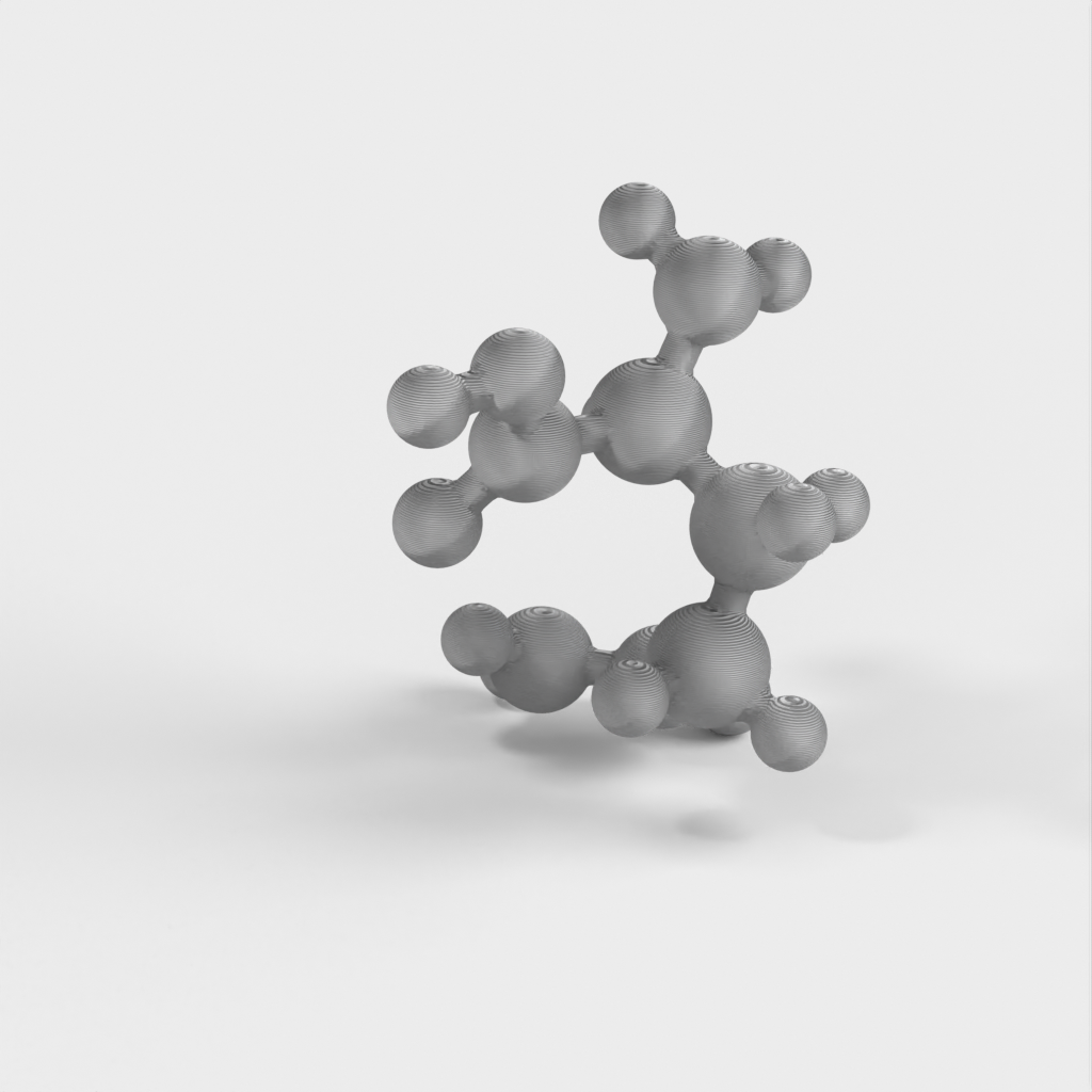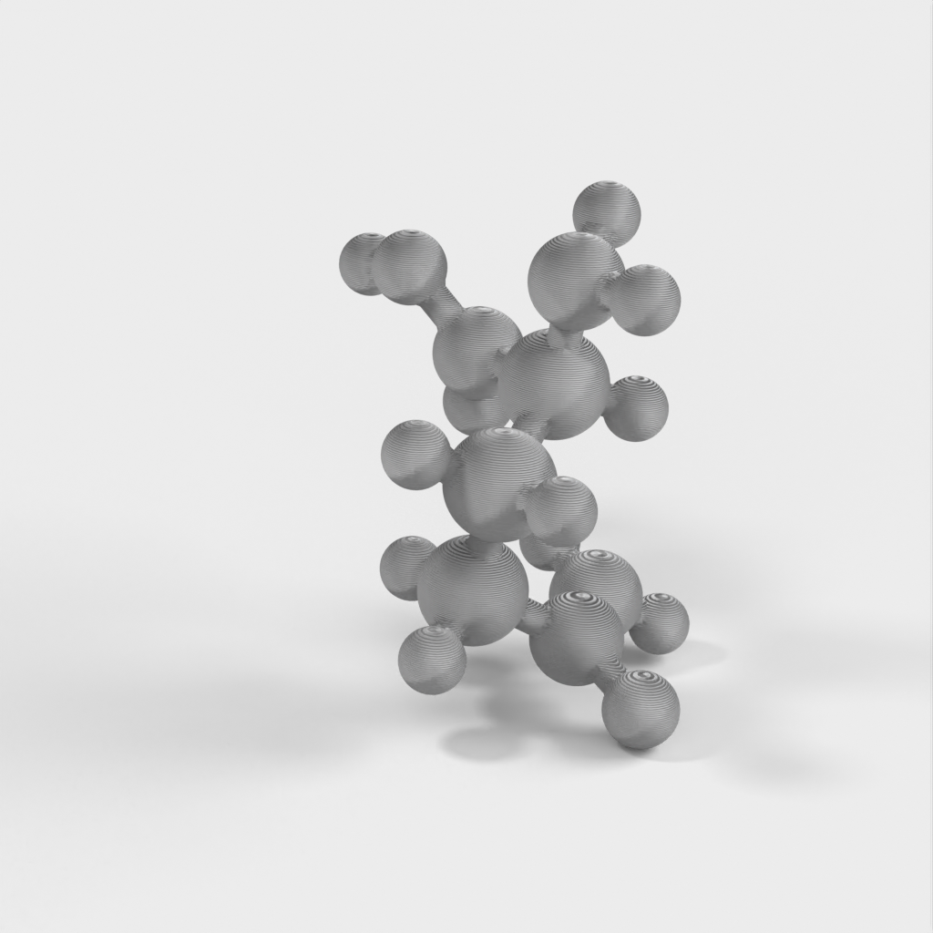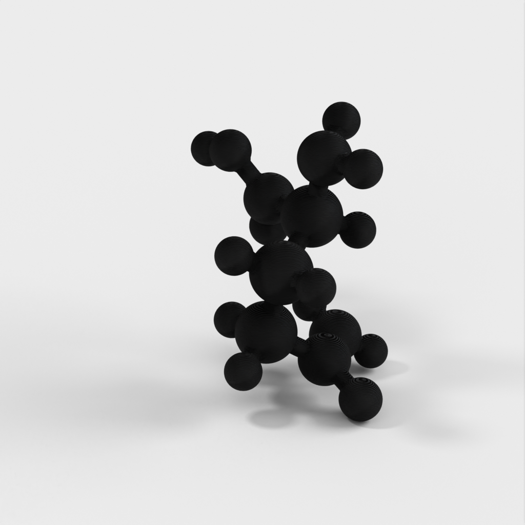 A molecular model of Glutamine at an atomic scale. The model is waterproof, manifold, and 3D-friendly STL. Glutamine is part of many proteins and can be compared to Glucose and carbohydrates to illustrate why different types of food are needed to get all the elements the body requires. This model is particularly useful for teaching chemistry.