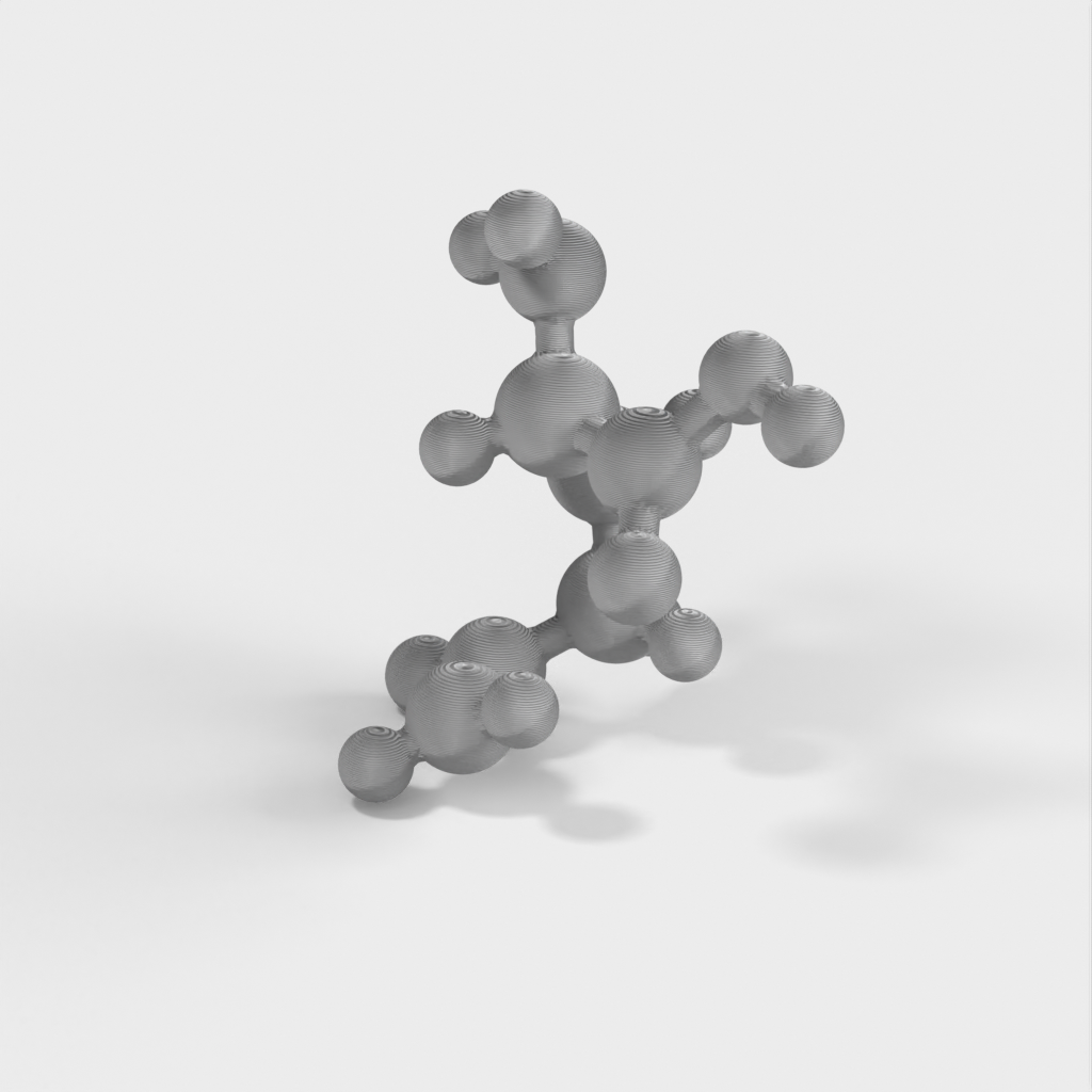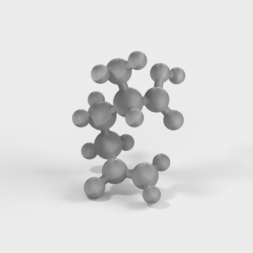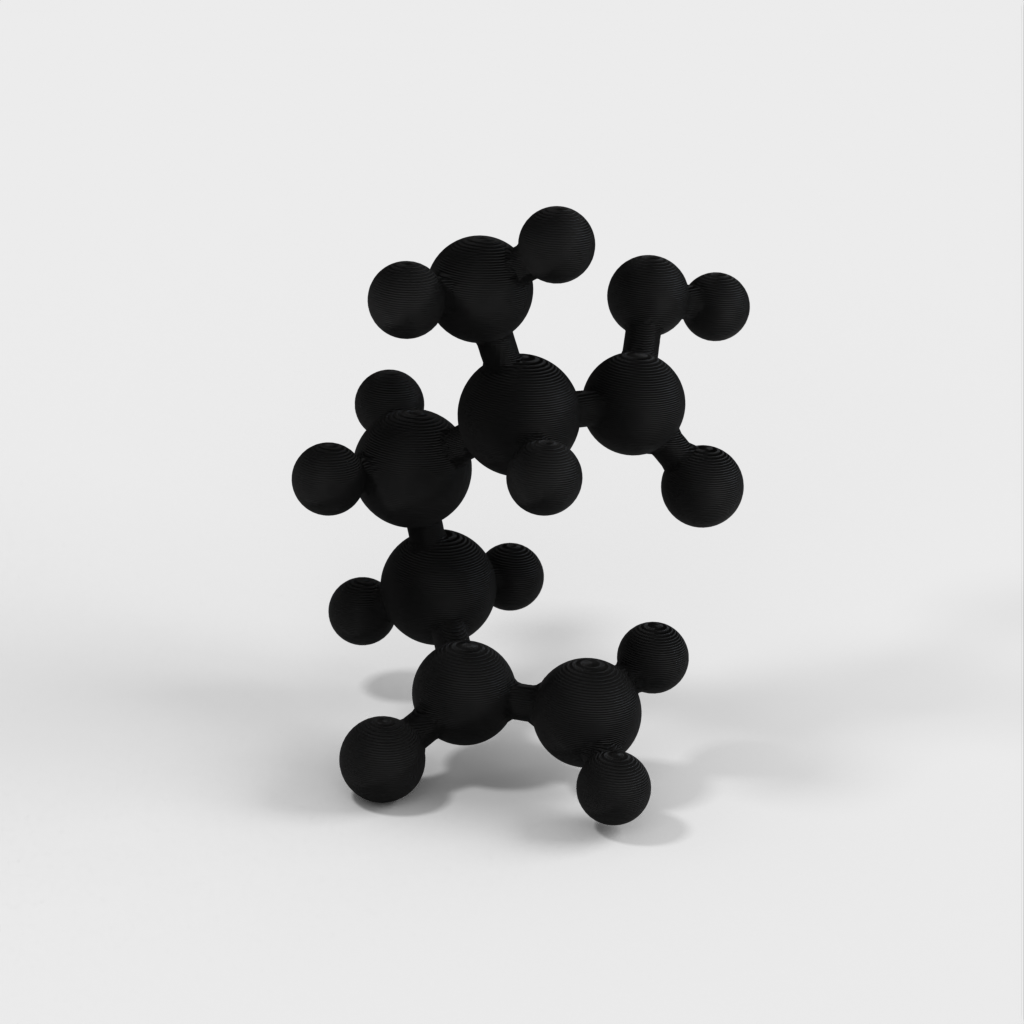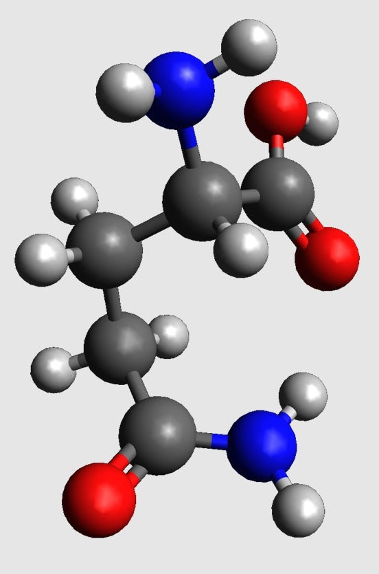 A molecular model of Glutamine at an atomic scale. The model is waterproof, manifold, and 3D-friendly STL. Glutamine is part of many proteins and can be compared to Glucose and carbohydrates to illustrate why different types of food are needed to get all the elements the body requires. This model is particularly useful for teaching chemistry.