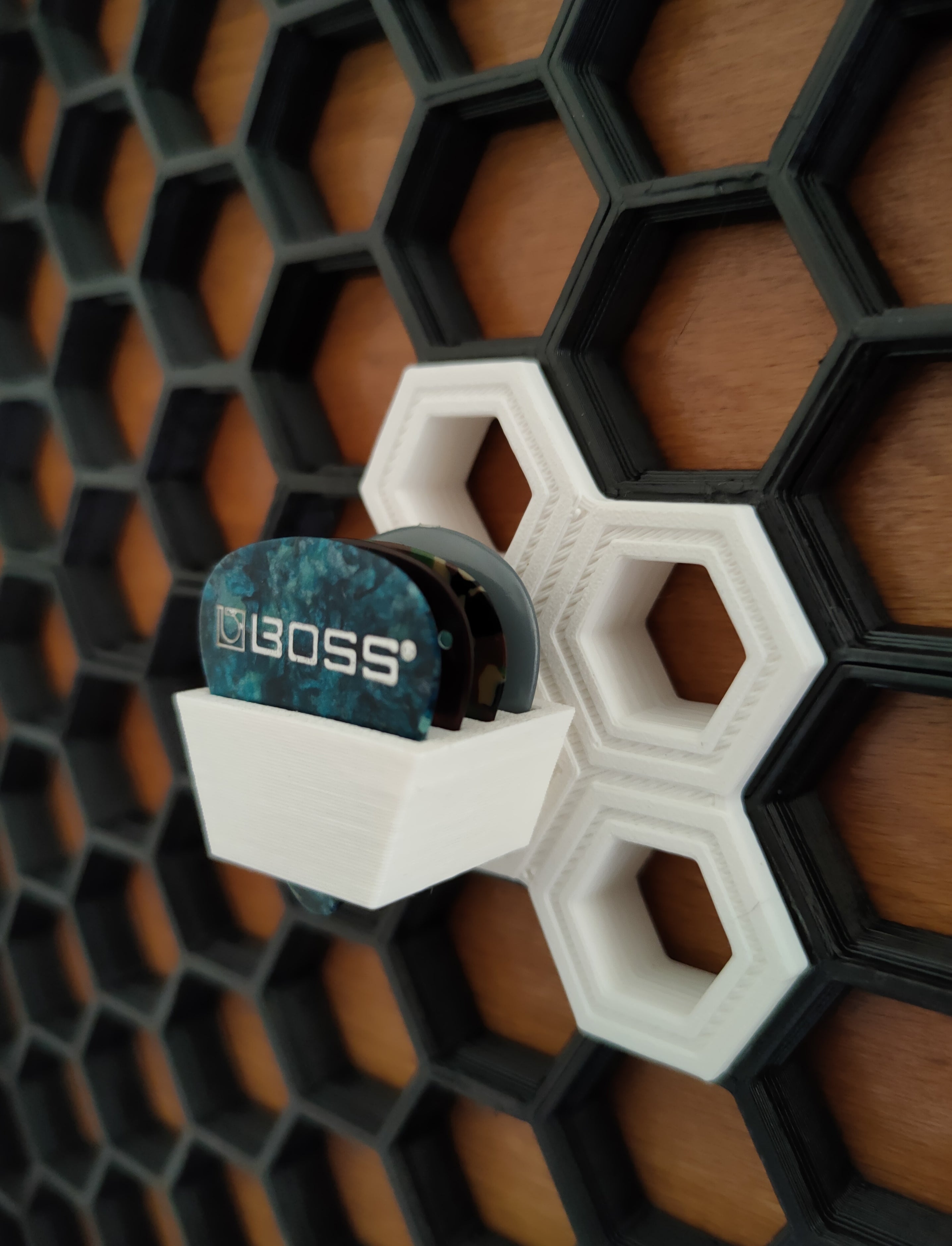 Er du træt af at lede efter dine guitarplektre, hver gang du skal spille? Denne smarte guitarplekterholder er den perfekte løsning til at holde dine plektre organiseret og let tilgængelige på din Honeycomb Storage Wall. Den er designet til at integreres problemfrit med dit eksisterende Honeycomb-vægsystem, hvilket sikrer en ryddelig og funktionel opbevaring af dit tilbehør.
