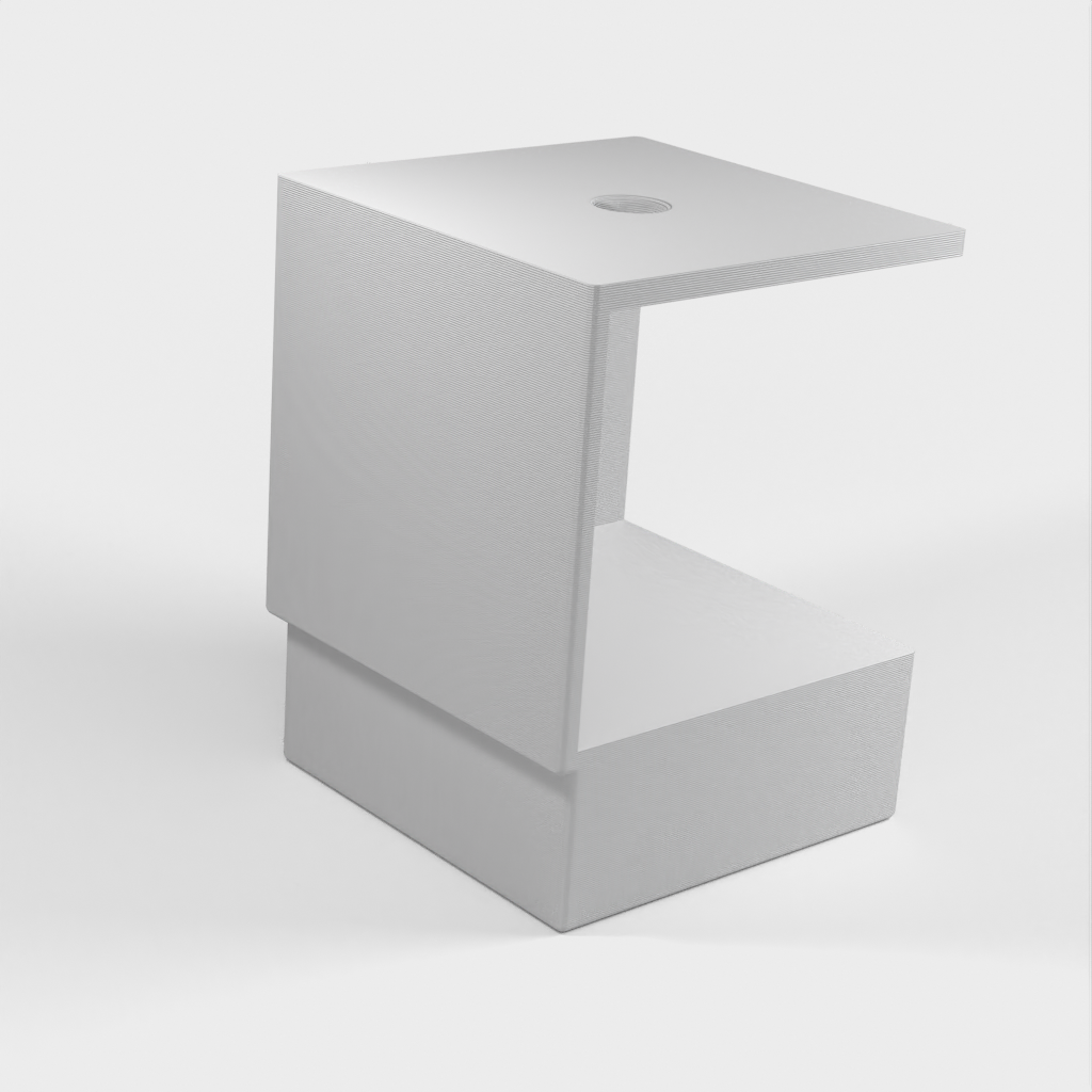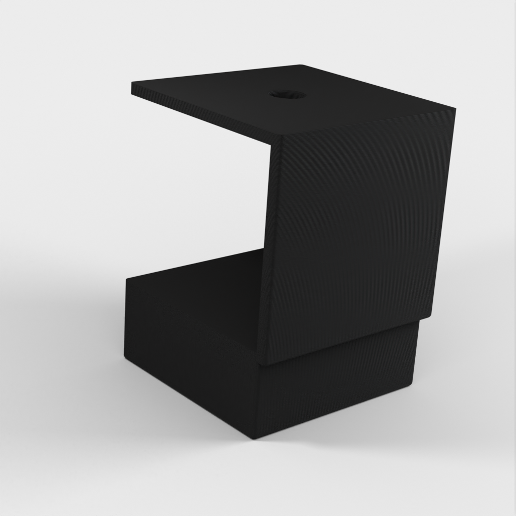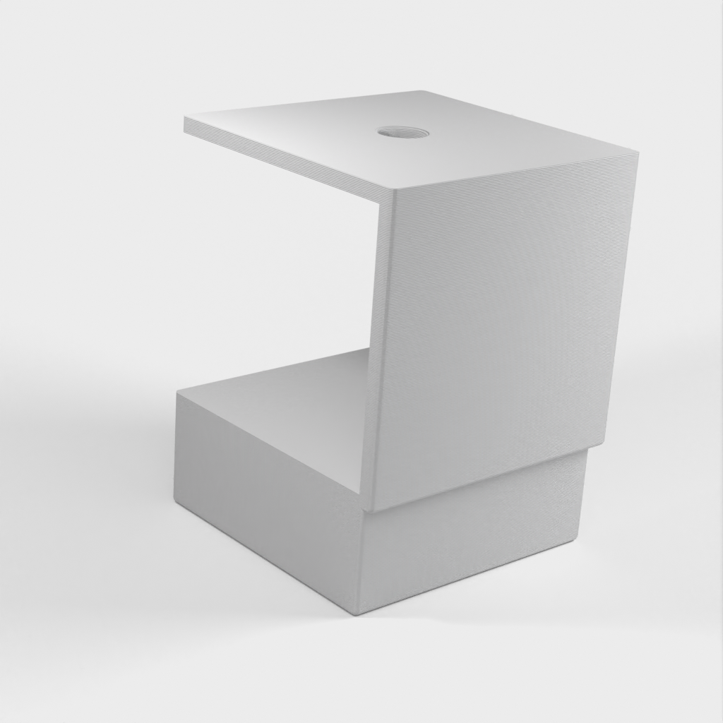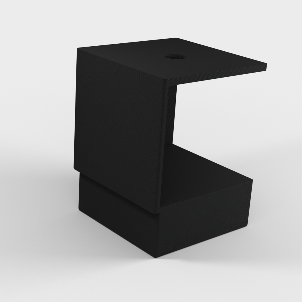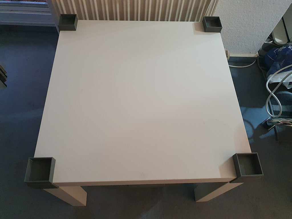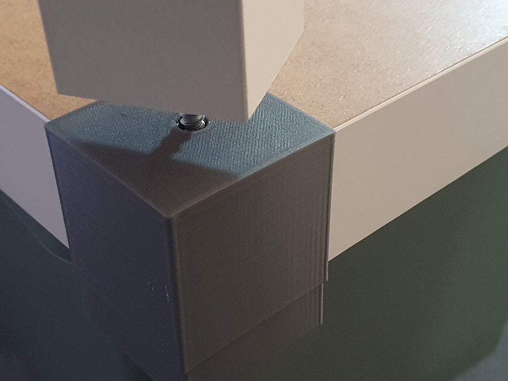Leg support for IKEA LACK table. This holder fits precisely onto the edge of the LACK table and is screwed to the tabletop with table legs. This is an ideal solution for raising your IKEA LACK table and making it more suitable for working with 3D printers or other purposes. The holder should fit all LACK tables from IKEA, allowing you to build a shelf or stand for your printer or anything else from any table in the LACK series.