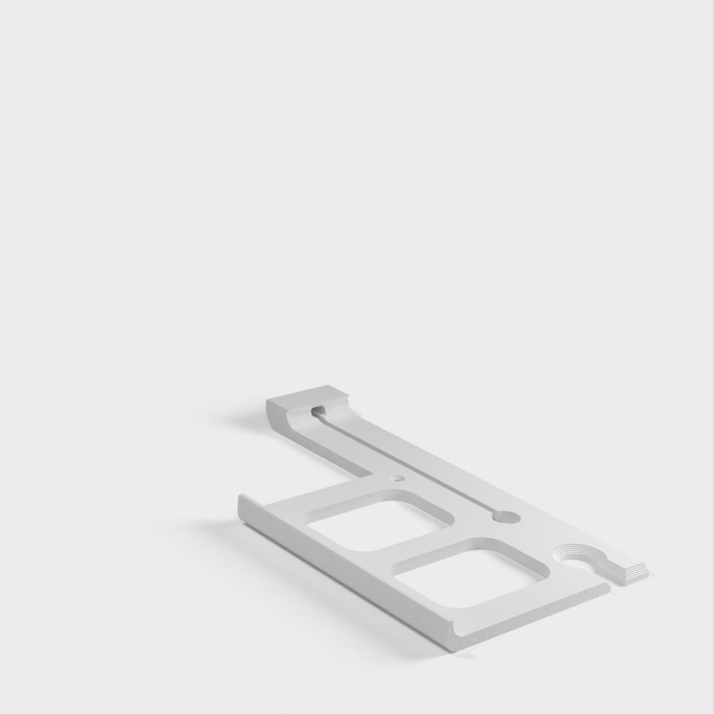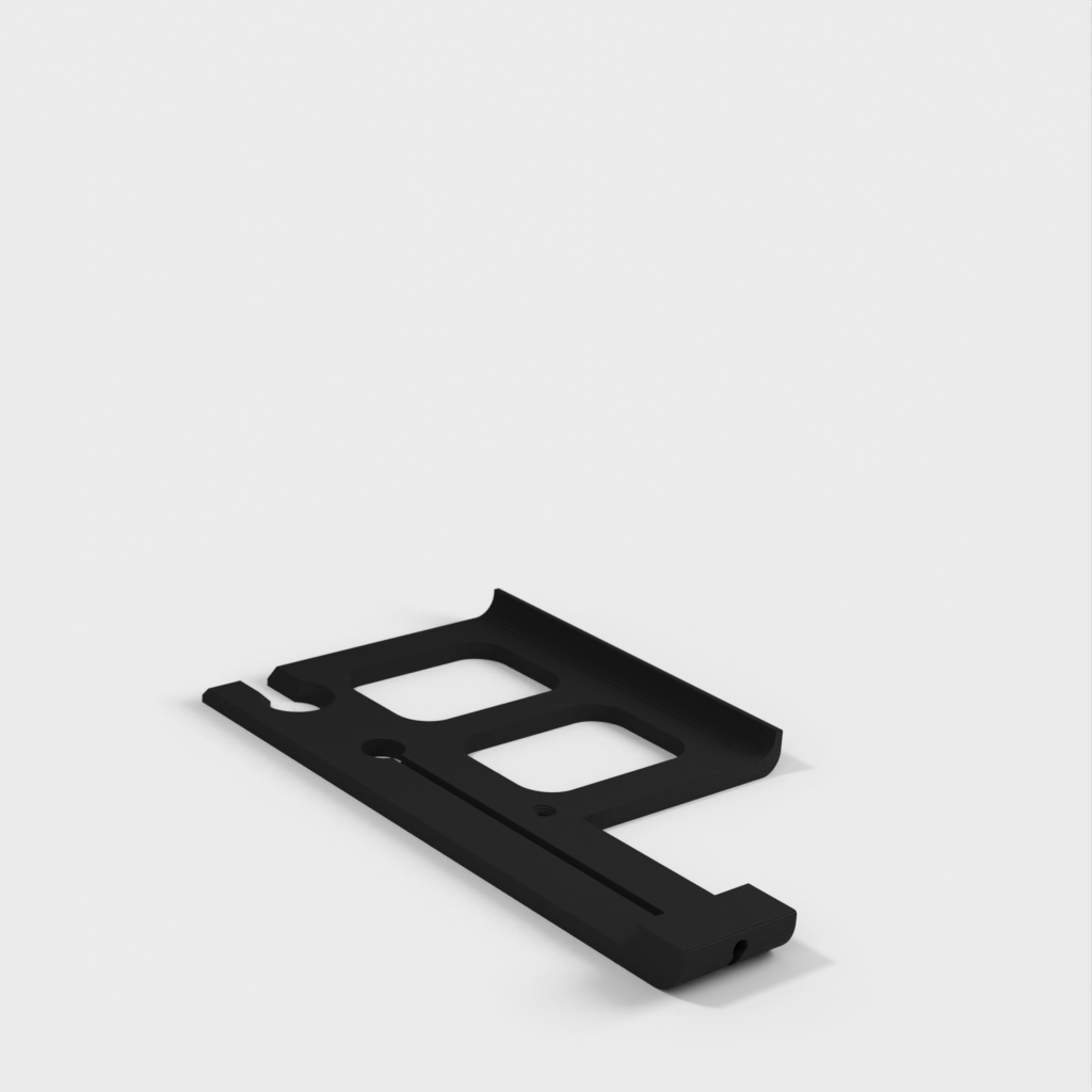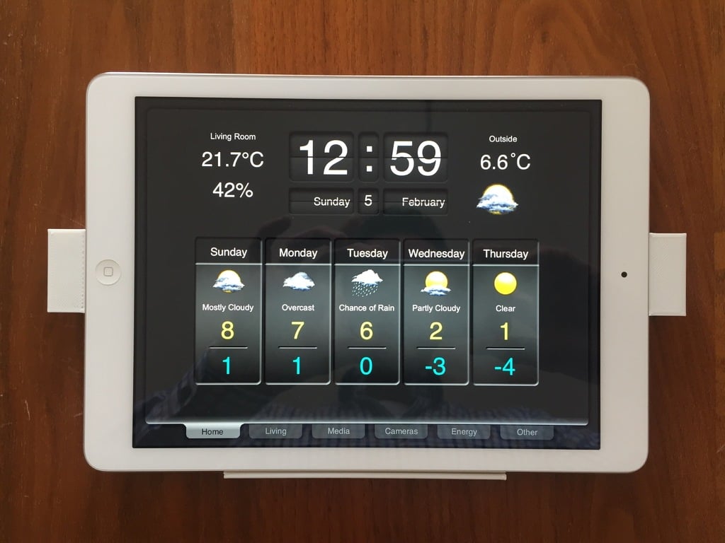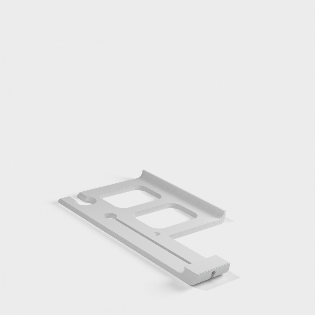 This wall mount for the iPad Air is designed for ease of use. The iPad can be easily removed and reinserted by pressing the handle on the right side. Make sure it clicks securely into the lock when inserted into the wall mount. There is also space for a lightning connector on the left side so the iPad can be charged while mounted.