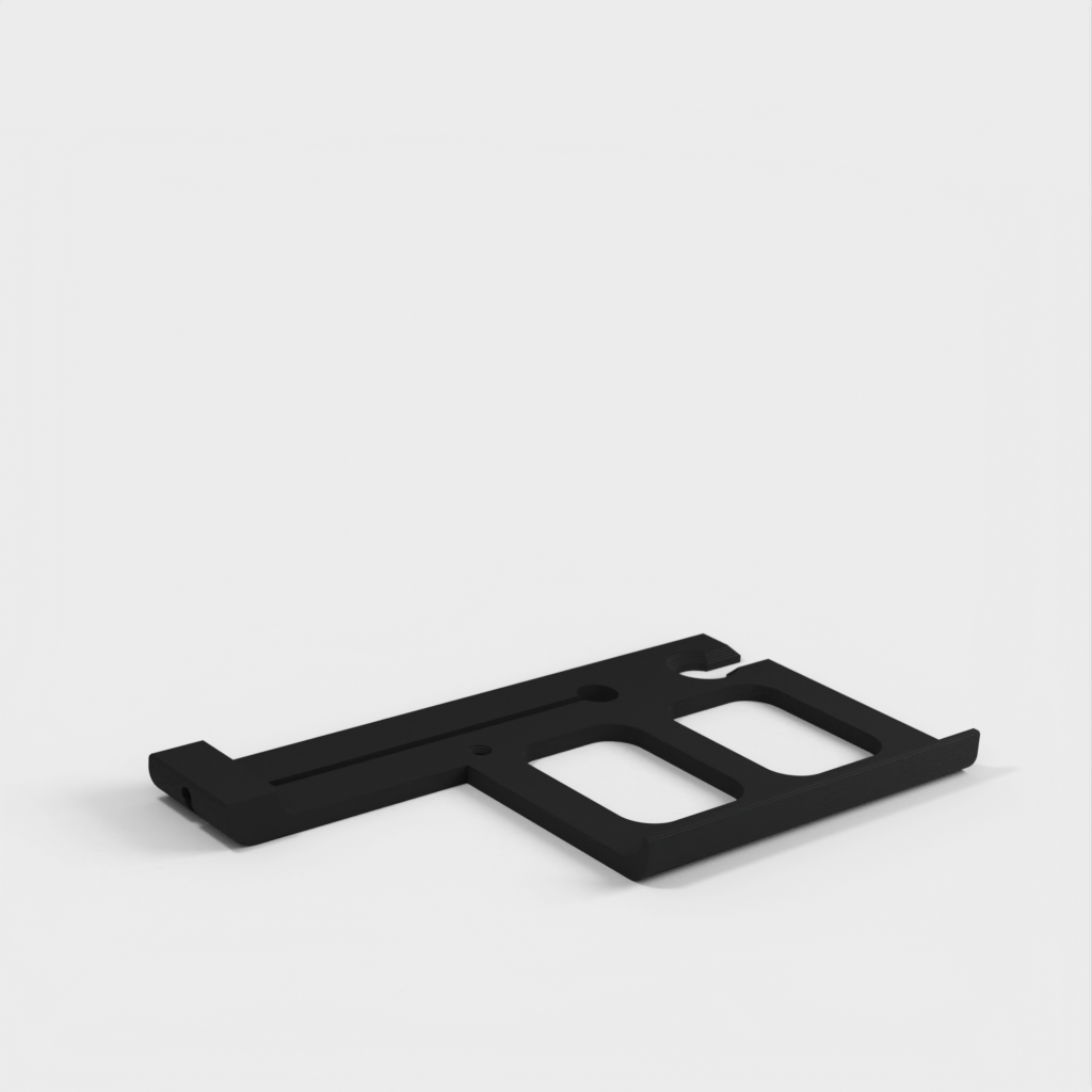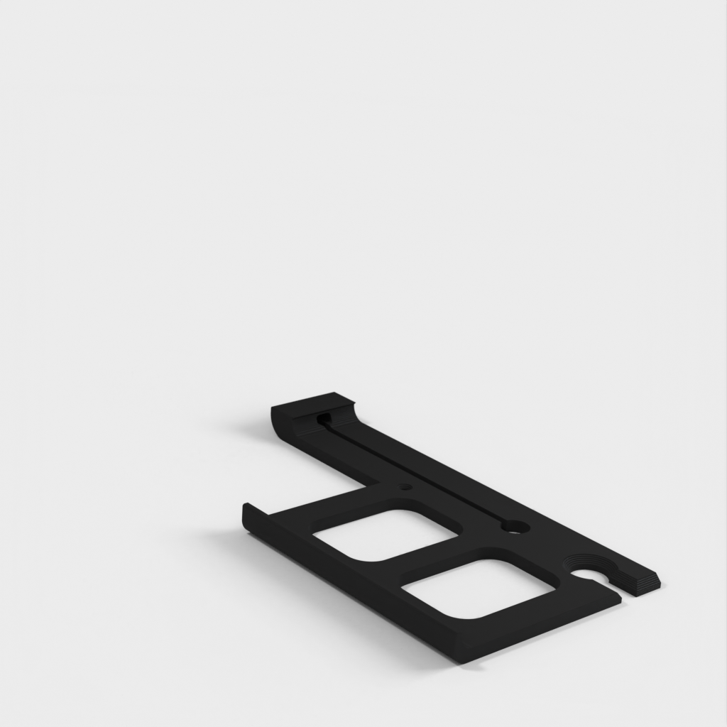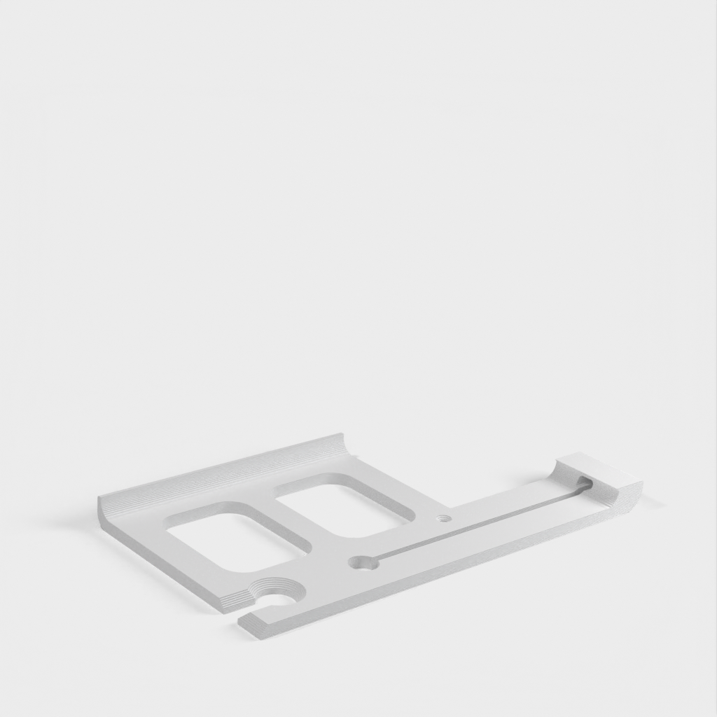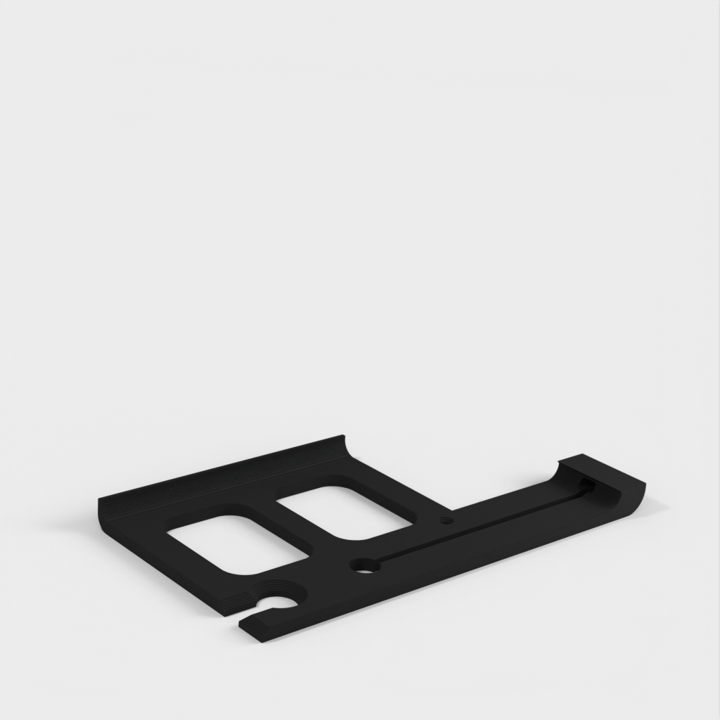 This wall mount for the iPad Air is designed for ease of use. The iPad can be easily removed and reinserted by pressing the handle on the right side. Make sure it clicks securely into the lock when inserted into the wall mount. There is also space for a lightning connector on the left side so the iPad can be charged while mounted.