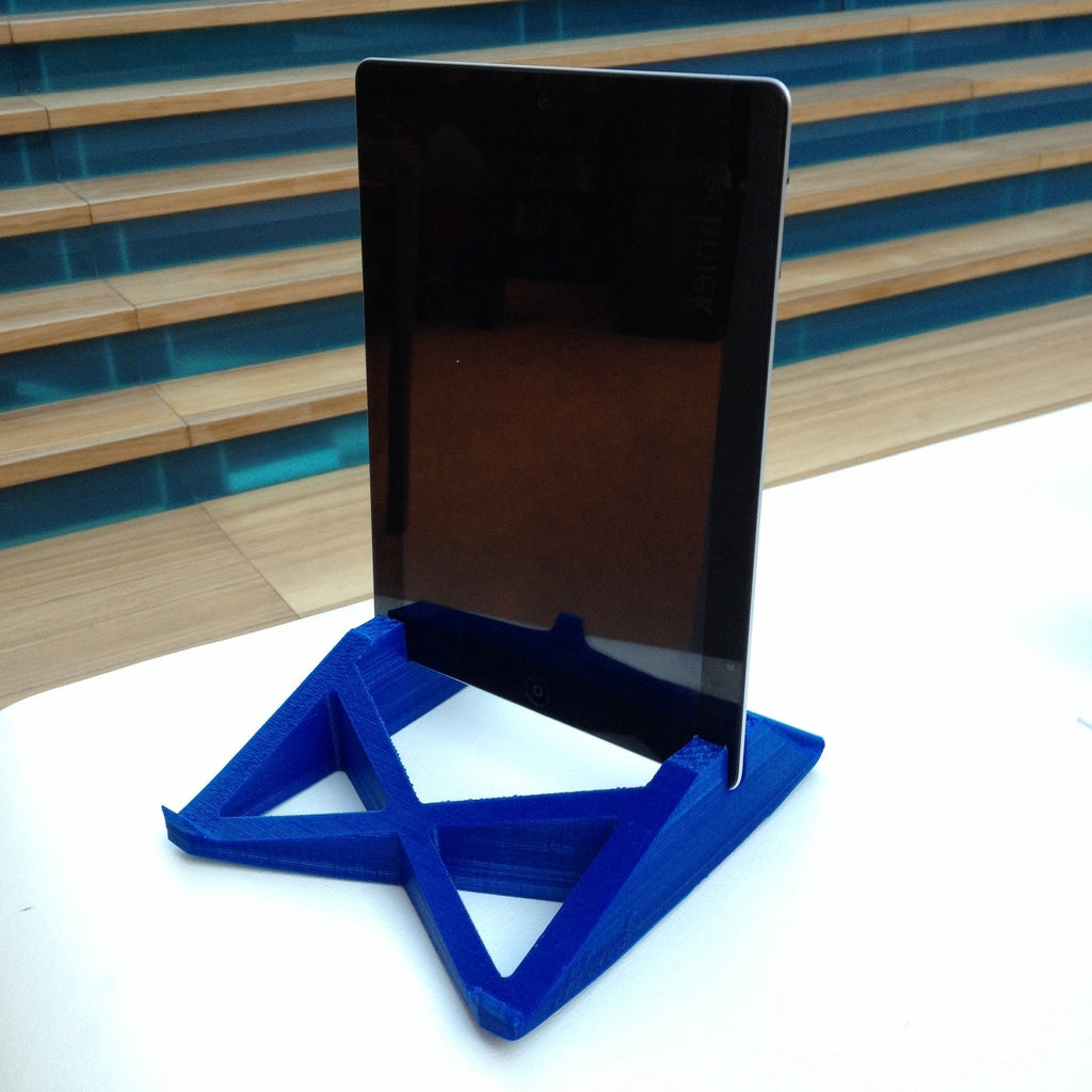 This iPad stand provides a stable and convenient way to position your Apple iPad. It is designed to hold the device at an optimal viewing angle, making it ideal for a range of activities such as reading, watching videos, making video calls, or simply browsing the web. The stand helps create a more organized and functional workspace or entertainment area at home or in the office.