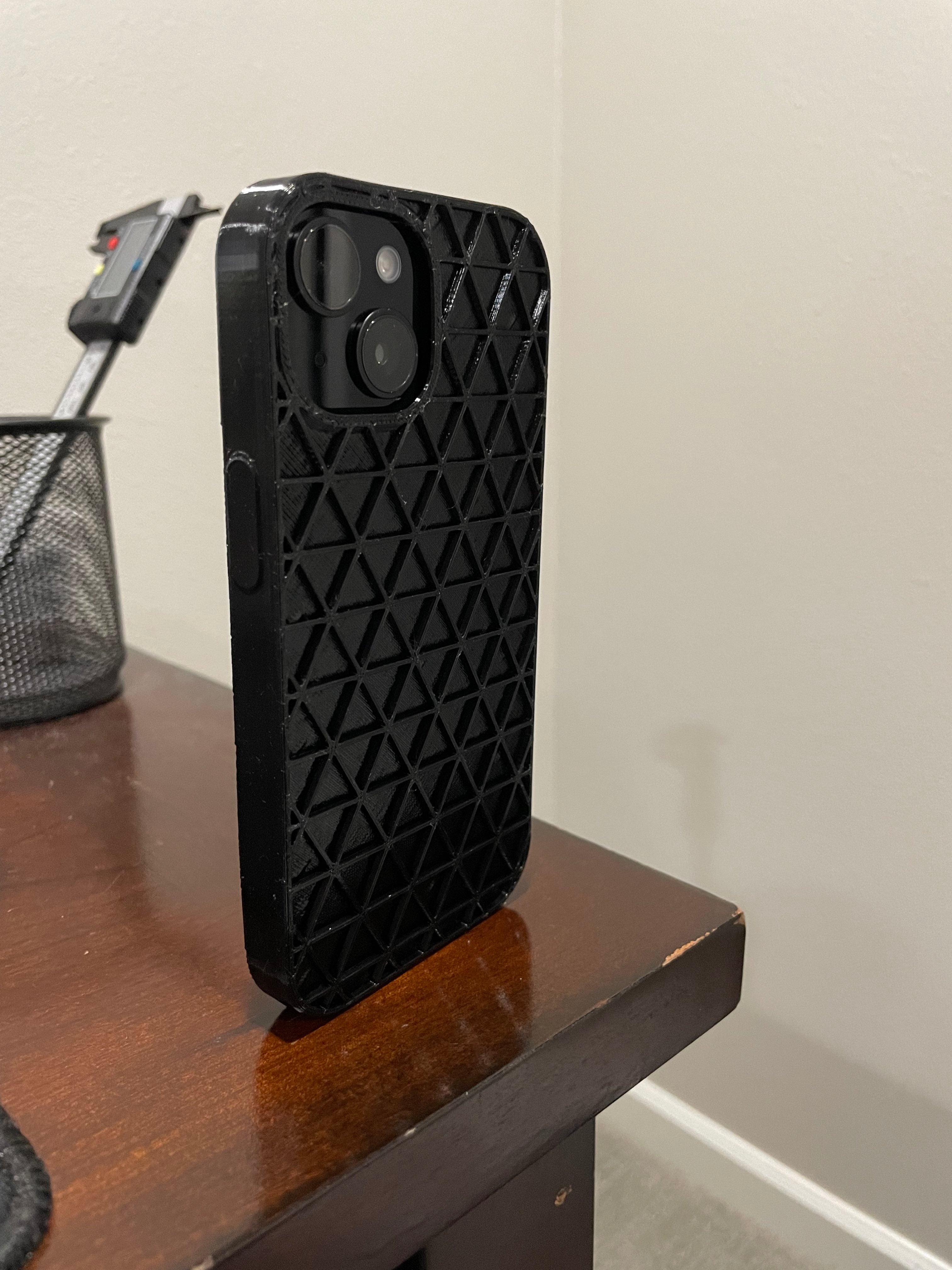 Give your iPhone 15 optimal protection and functionality with this stylish case, designed for everyday use. The case features a unique triangular pattern on the back that not only adds a modern aesthetic touch but also enhances grip, keeping your phone secure in your hand.