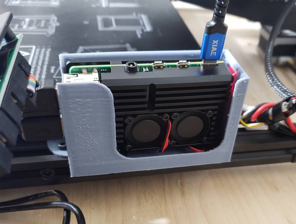 Lomme til Raspberry Pi 4 med køleplade til printermontering