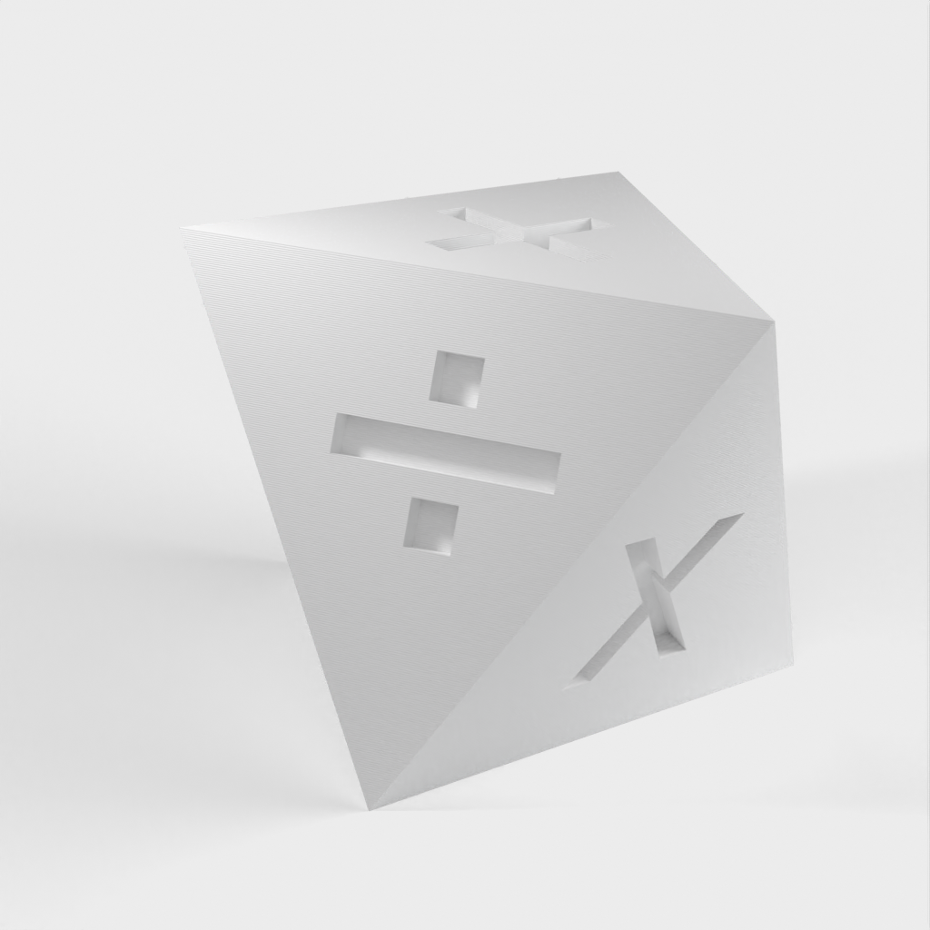 A set of math dice that make mathematical learning fun and interactive. Includes a number die (1-0) and a symbol die (+ - x ÷). Suitable for various age groups and abilities, as you can create mathematical equations as simple or complicated as you wish.
