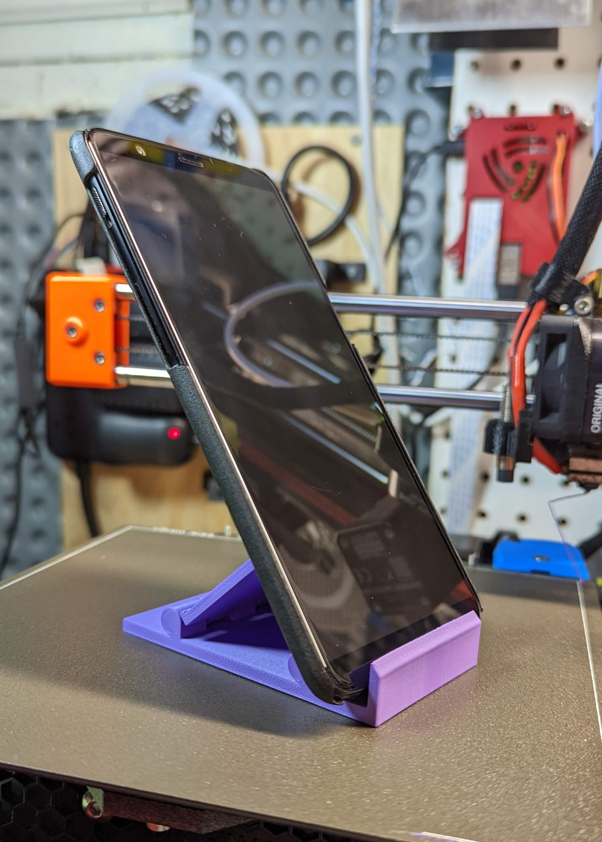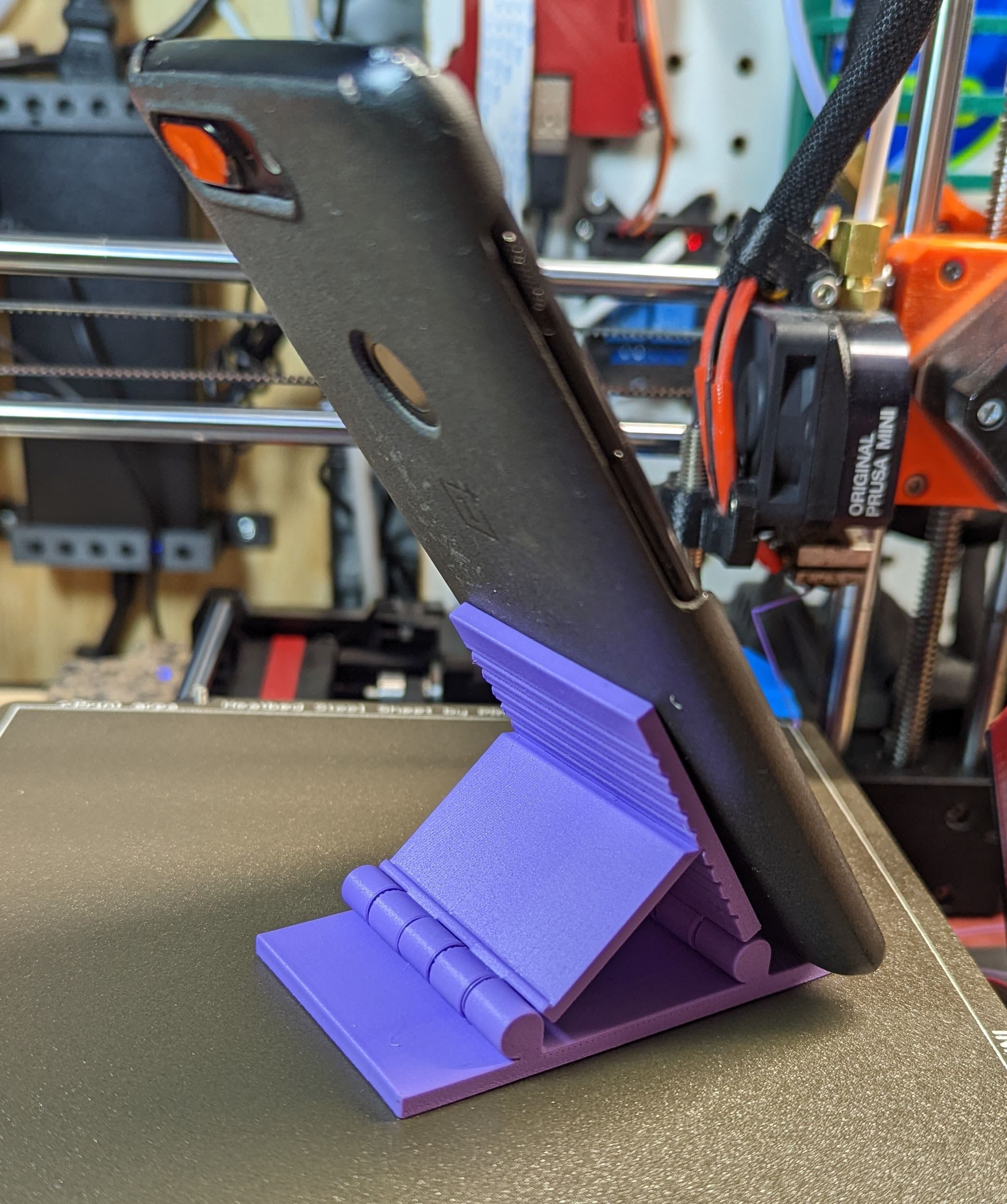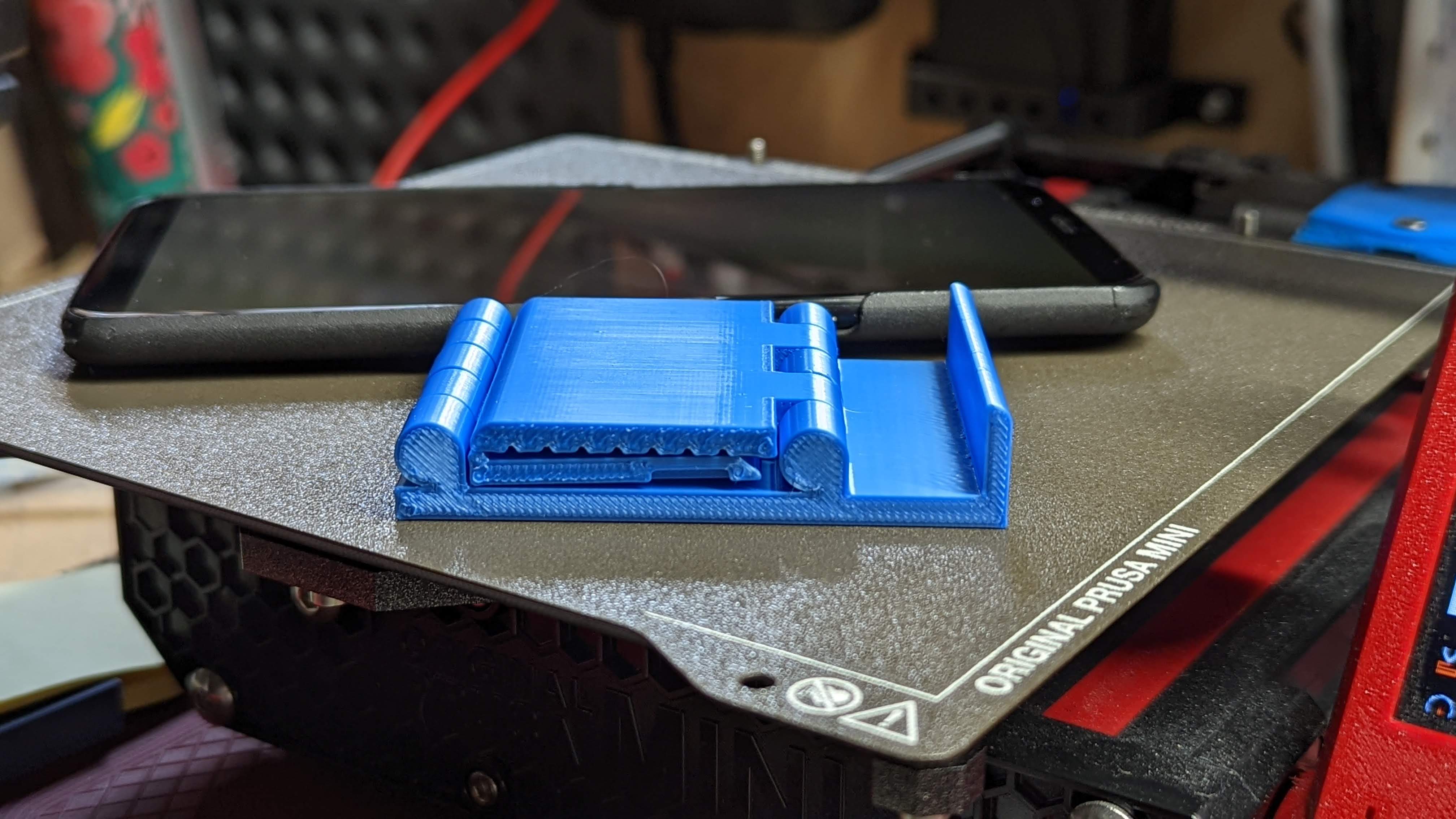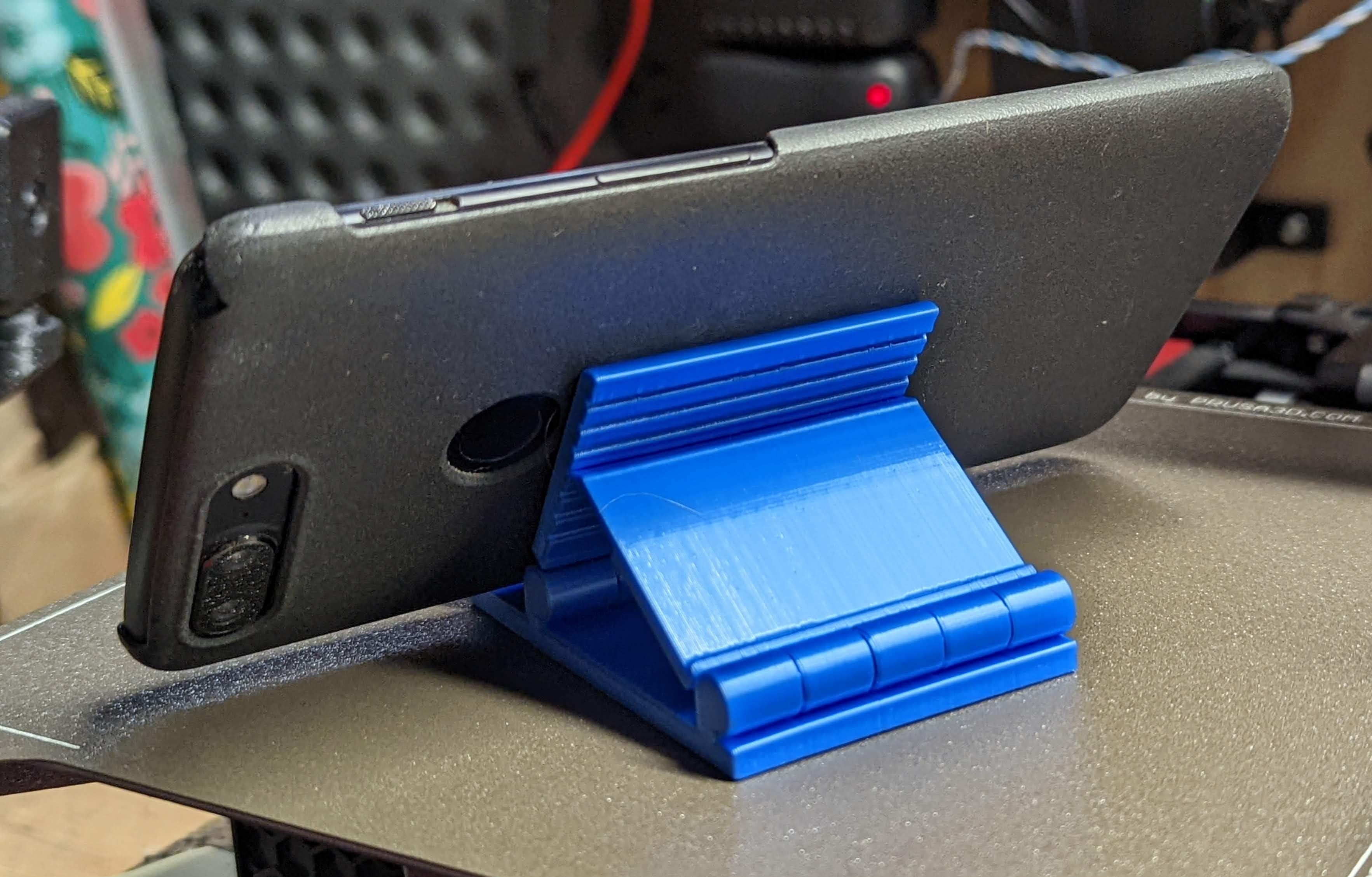 The Minimalist Ultra-Portable Folding Phone Holder is a small, foldable phone stand that easily slides into your laptop bag or any pocket. It folds flat and holds most mobile phones at a suitable angle. Both 50mm and 80mm sizes are available. The 50mm is ultra-portable and holds any phone upright when needed, while the 80mm fits the width of most mobile phones if preferred. It can hold a phone vertically and will not tip over from screen touches, although it is best positioned horizontally for USB port access.
