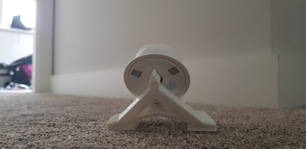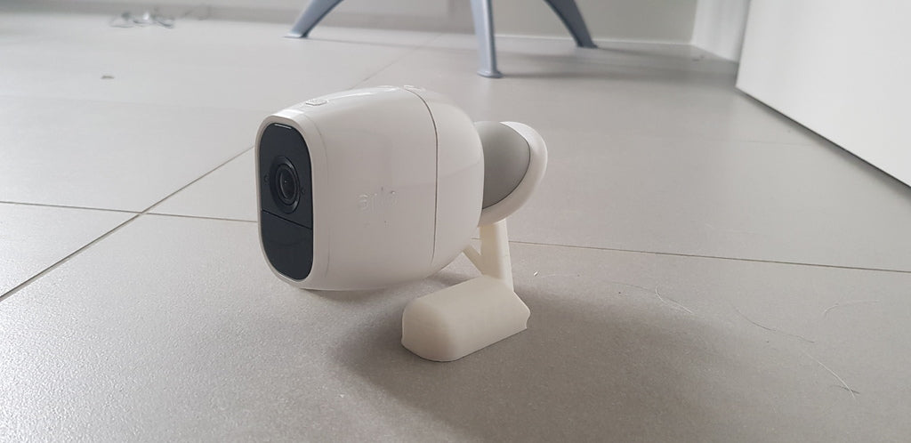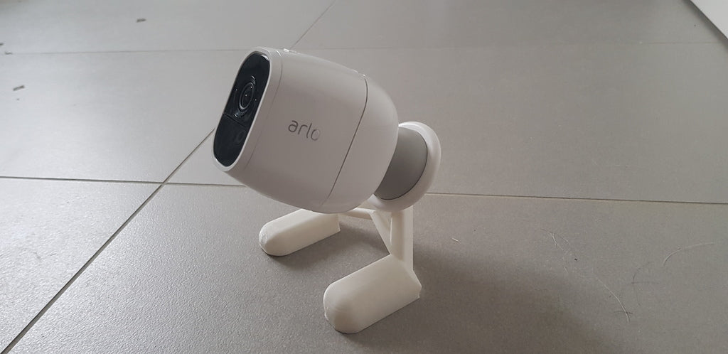 This small Arlo Pro stand with two legs gives your Arlo camera a friendly robot look. The design allows you to mount the included magnet on the print and freely stand your Arlo indoors anywhere without the need for drilling.