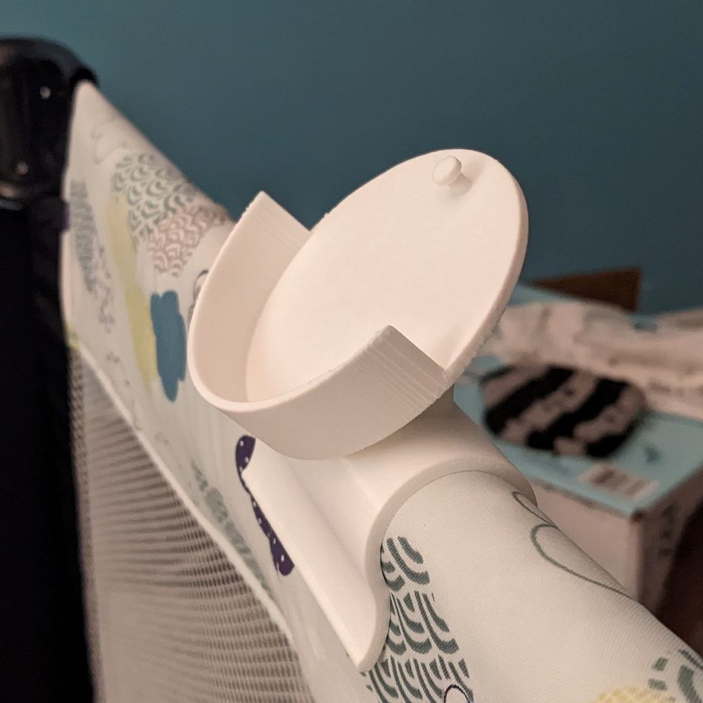 - Sikker montering af babyalarm på Pack-n-Play og tremmesenge.