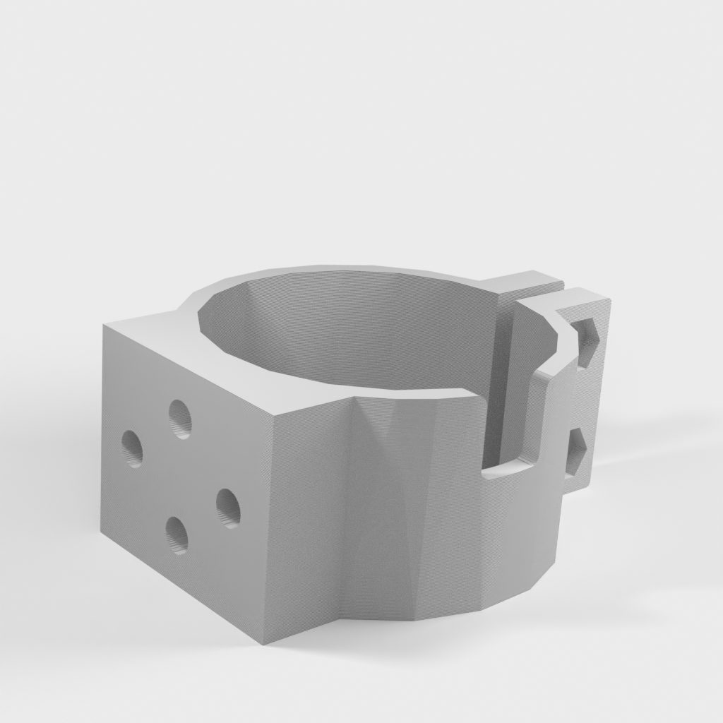 This mounting bracket has been developed to integrate a modified RULE bilge pump into an underwater ROV system. As an important piece of equipment in a maritime context, it simplifies the attachment of the bilge pump's motor and offers a more stable solution than alternative methods such as zip ties or hose clamps. The bracket's countersunk inner holes ensure a precise and secure fit for the pump, commonly used as boat accessories. With the option to mount the bracket both vertically and horizontally on the ROV frame, flexibility in design and setup is achieved. The mounting hardware is designed for M5 nuts and pan head bolts, making installation straightforward and efficient for your underwater robot.