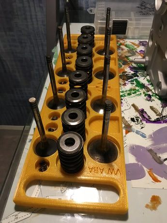This practical organizer tray is designed to keep your Volkswagen ABA valves and springs organized and in order. It is an indispensable tool when working on cylinder heads, as it helps keep track of all components. By ensuring that each part has its place, the tray contributes to a more efficient workflow and minimizes the risk of losing small, important parts. An ideal solution for mechanics and DIY enthusiasts who want to maintain order during engine work.