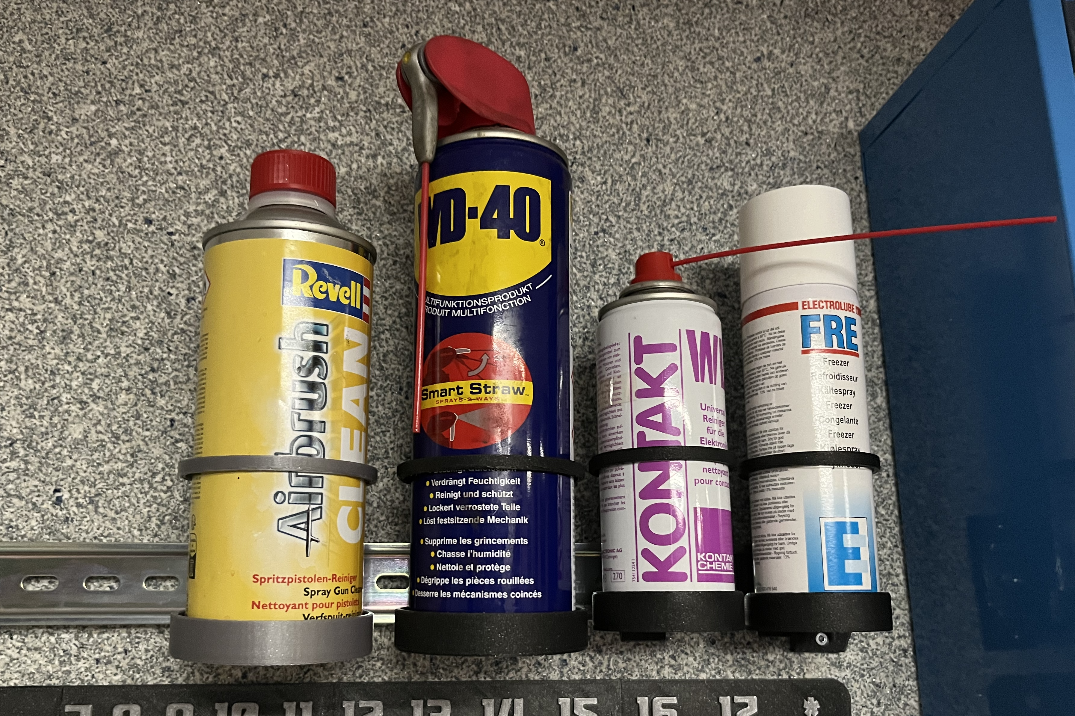 This parametric DIN rail tin holder is a flexible and practical solution for organizing various items on a DIN rail. The design allows for easy adjustment of both diameter and height, so it can accommodate a wide spectrum of containers, ranging from small components to larger tins.