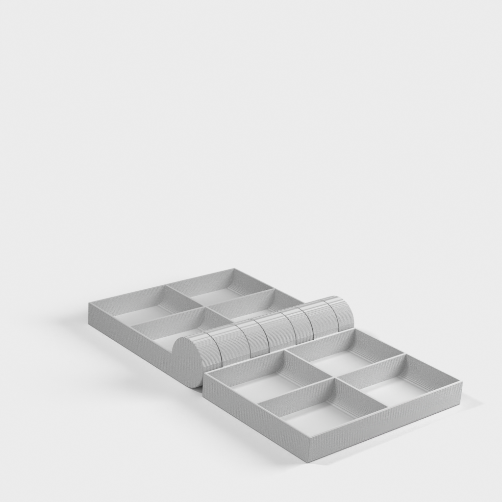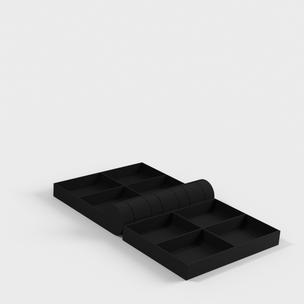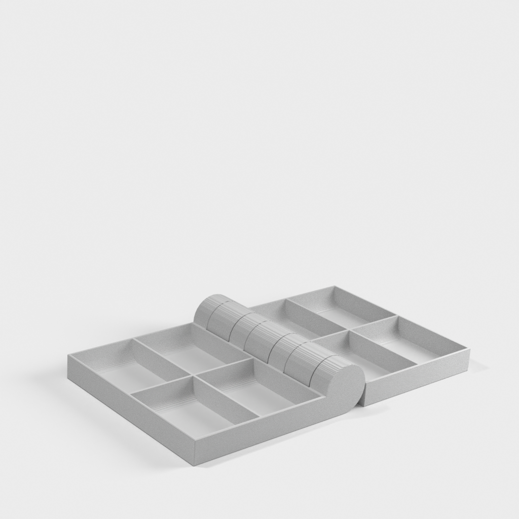 The parts tray is equipped with a magnetic feature that helps secure metallic components, reducing the risk of them rolling away or getting lost. Its foldable design is ideal for those with limited space, as it can be easily packed away when not in use. Furthermore, the parametric design allows for extensive customization of the tray's dimensions and compartments, enabling it to be tailored to specific needs for various projects.